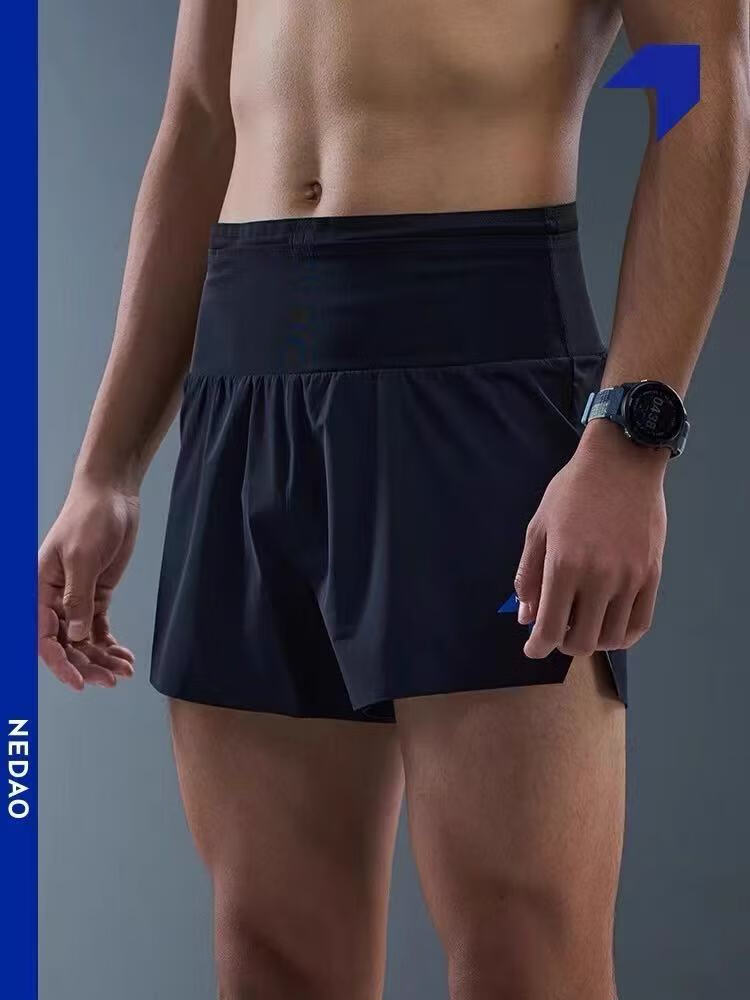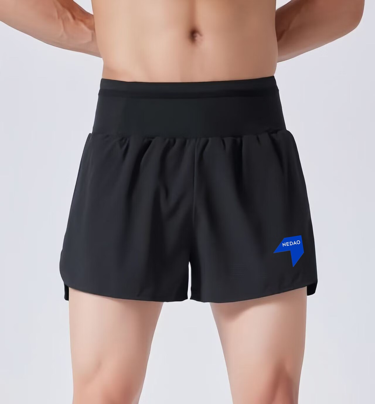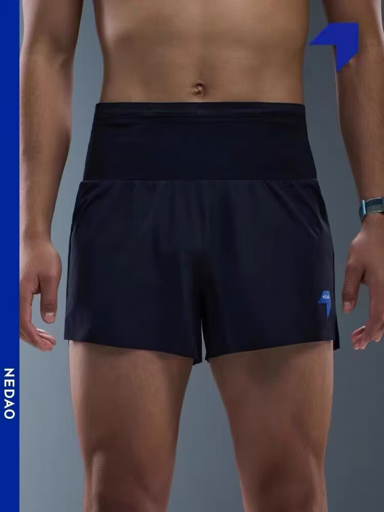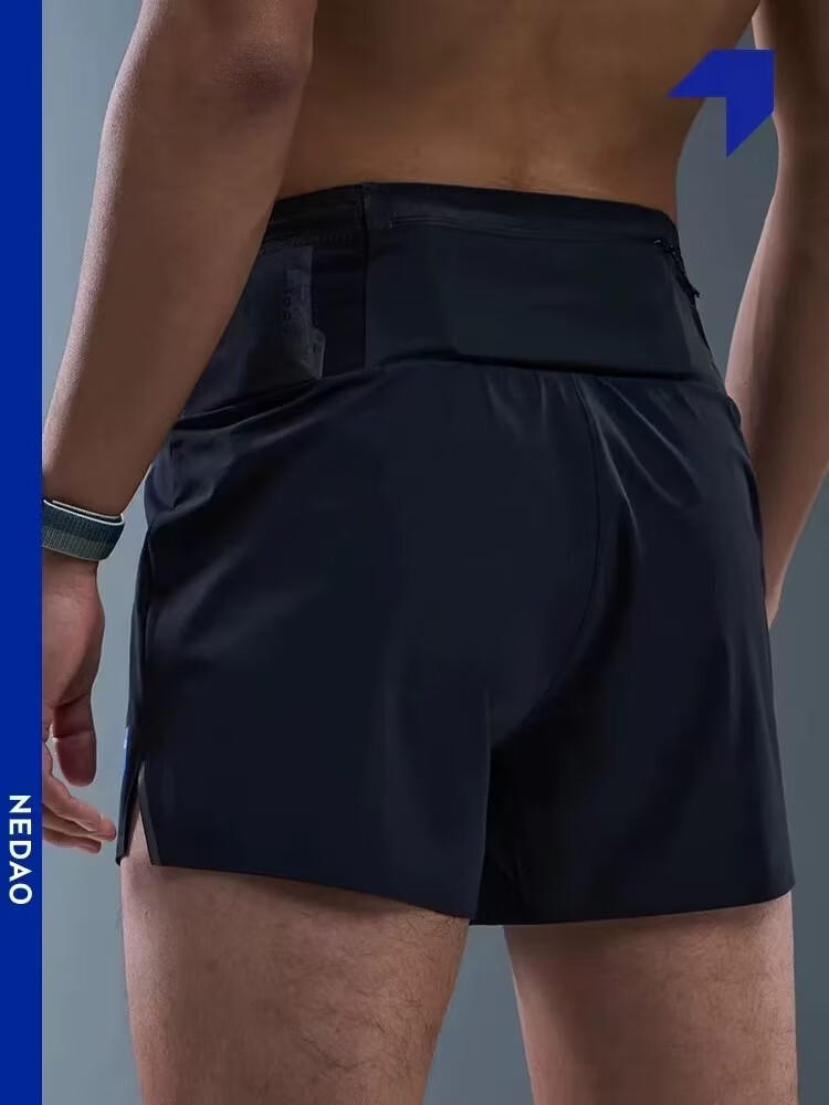 NEDAO带内衬马拉松跑步短裤男女速干内道运动三分裤子后腰口袋可放手机 黑色05非超轻 男款内道 XL 140-160斤