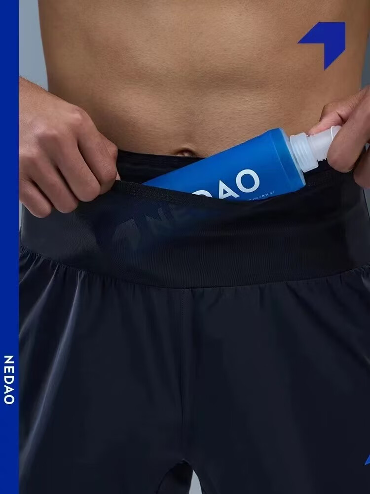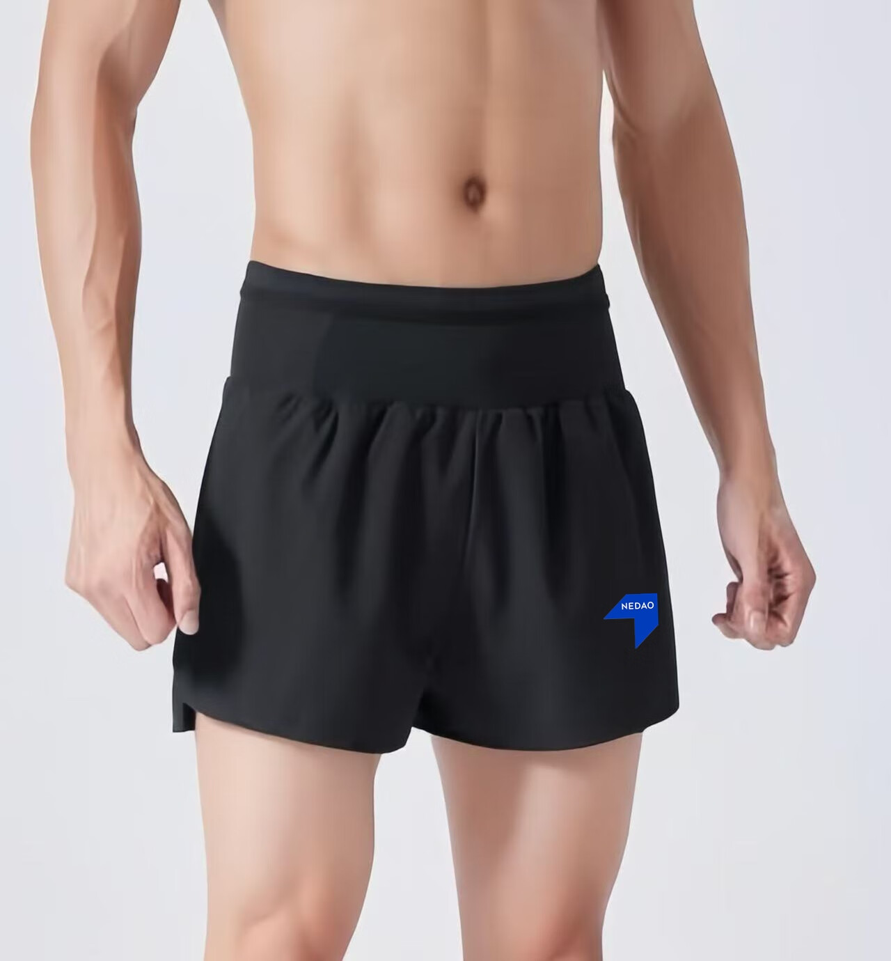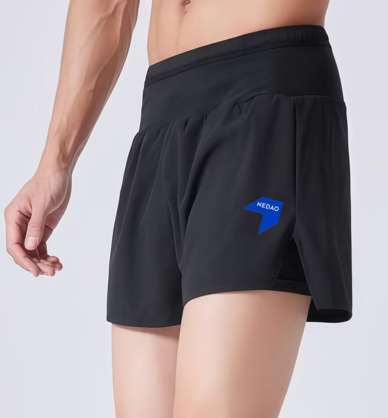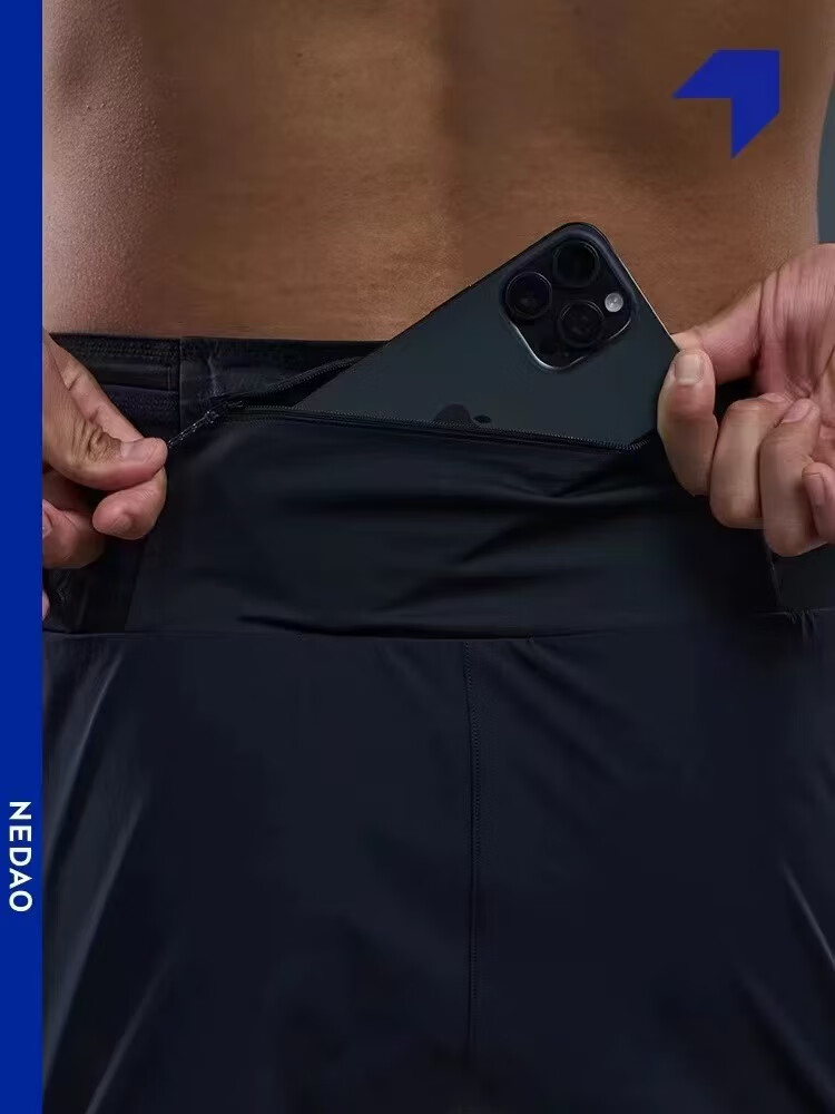 NEDAO带内衬马拉松跑步短裤男女速干内道运动三分裤子后腰口袋可放手机 黑色05非超轻 男款内道 XL 140-160斤
