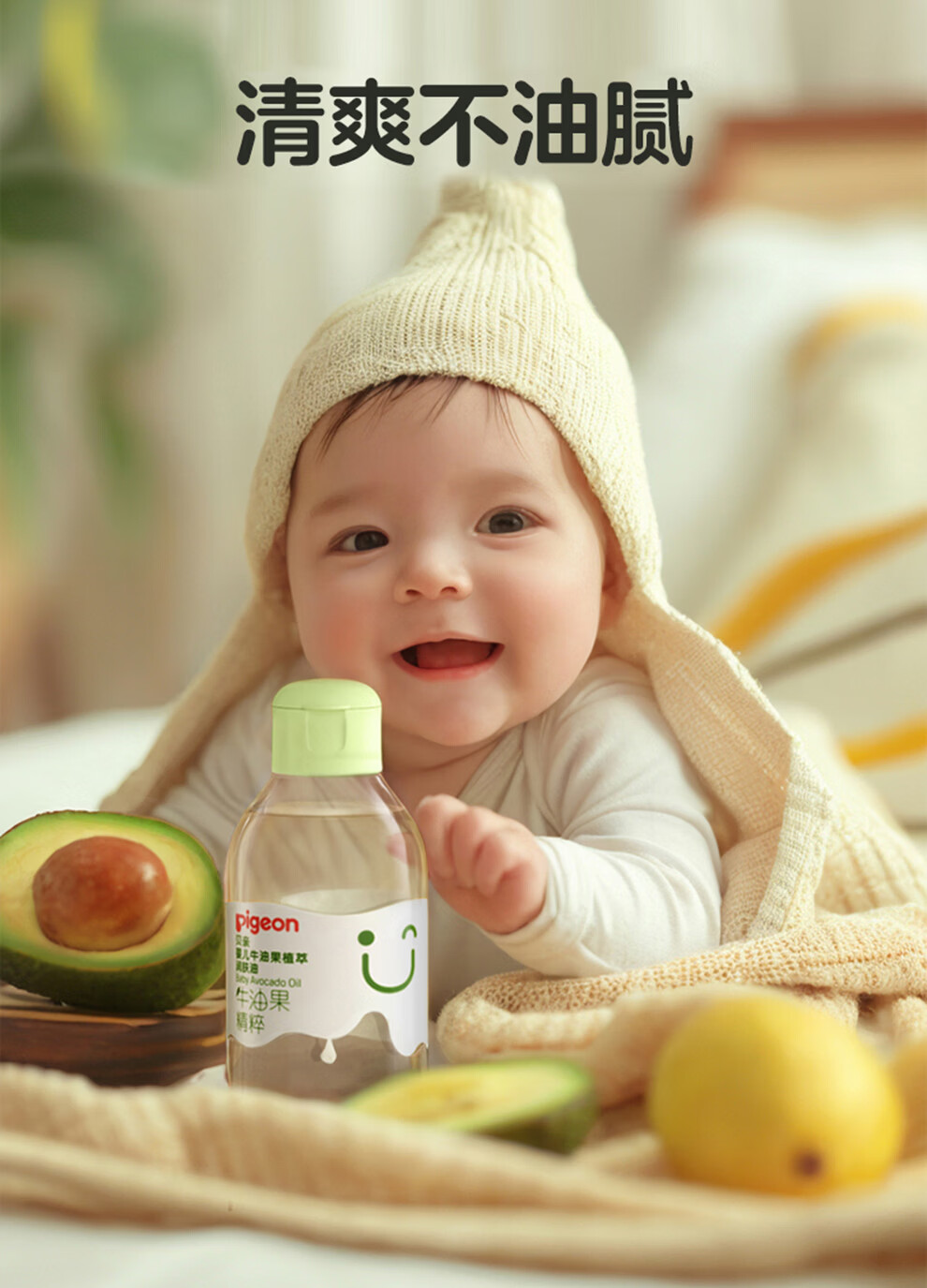 贝亲润肤油 婴儿抚触油 宝宝按摩油 新生儿抚触按摩油 牛油果植萃油 100ml*1瓶 润肤油