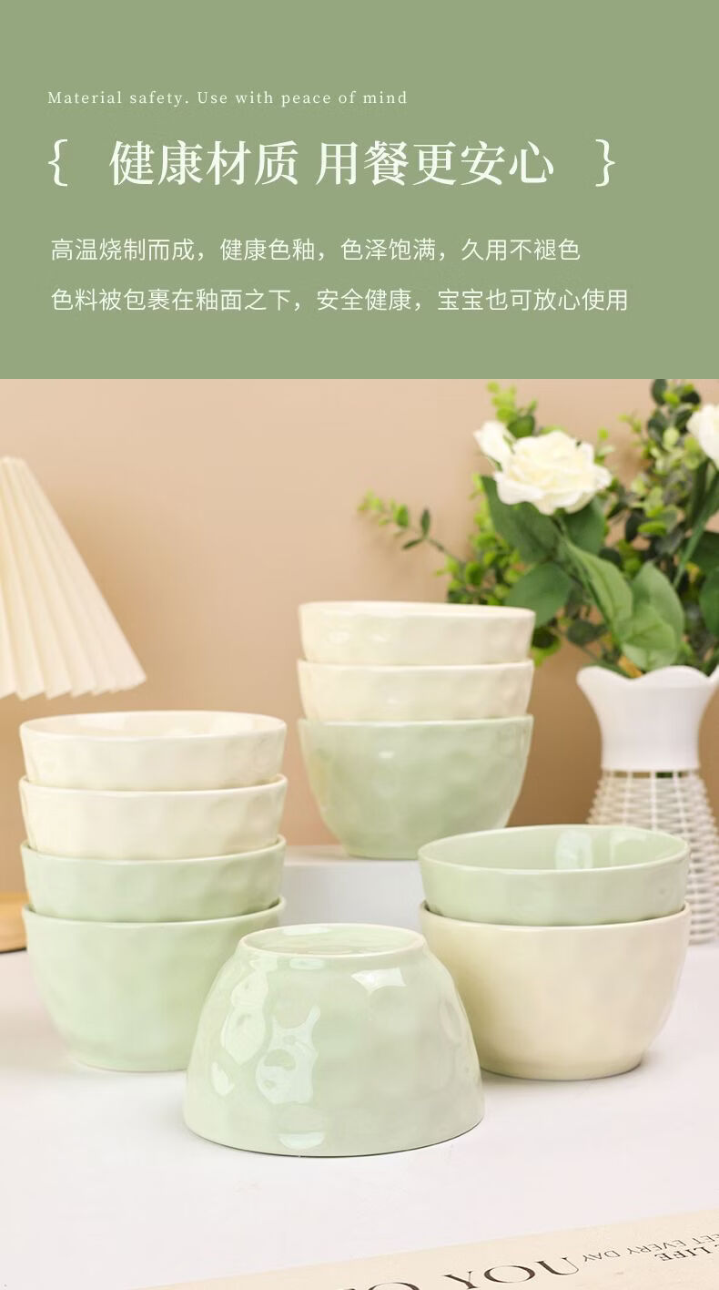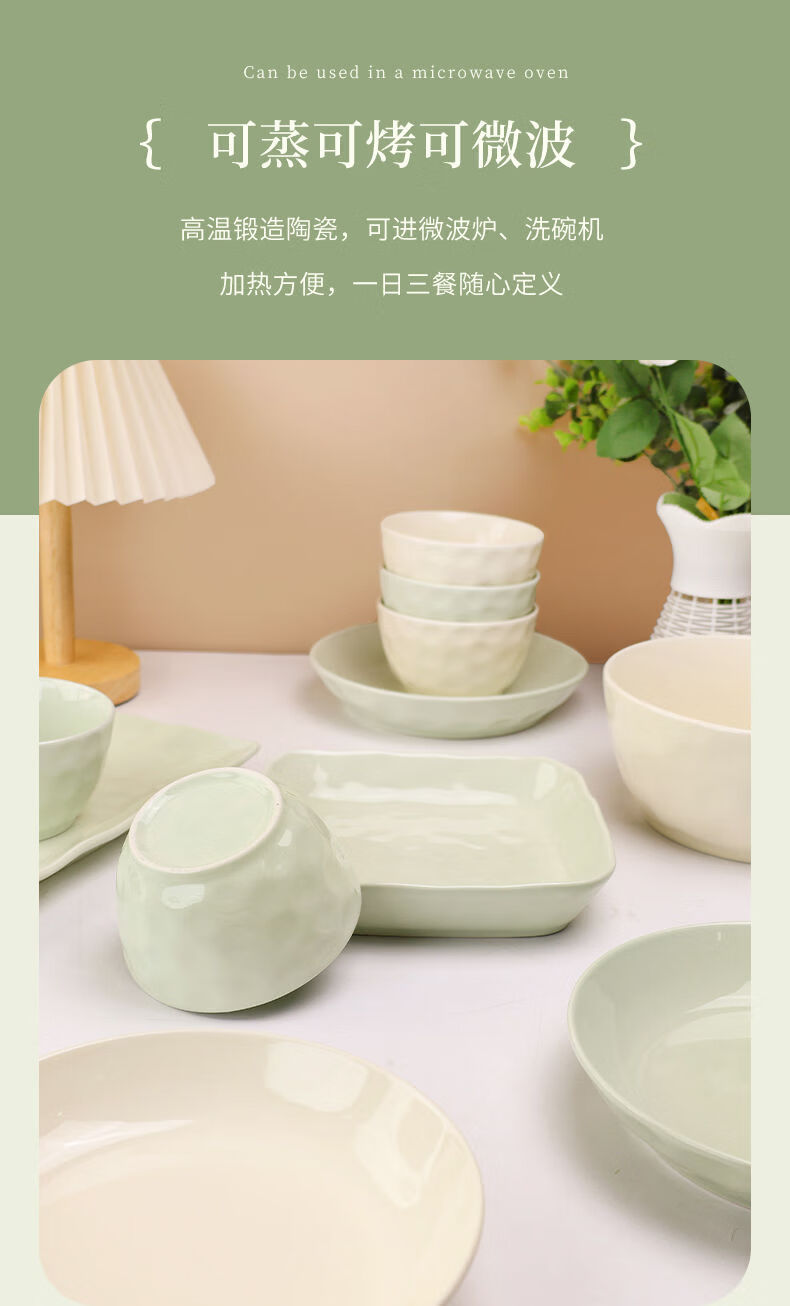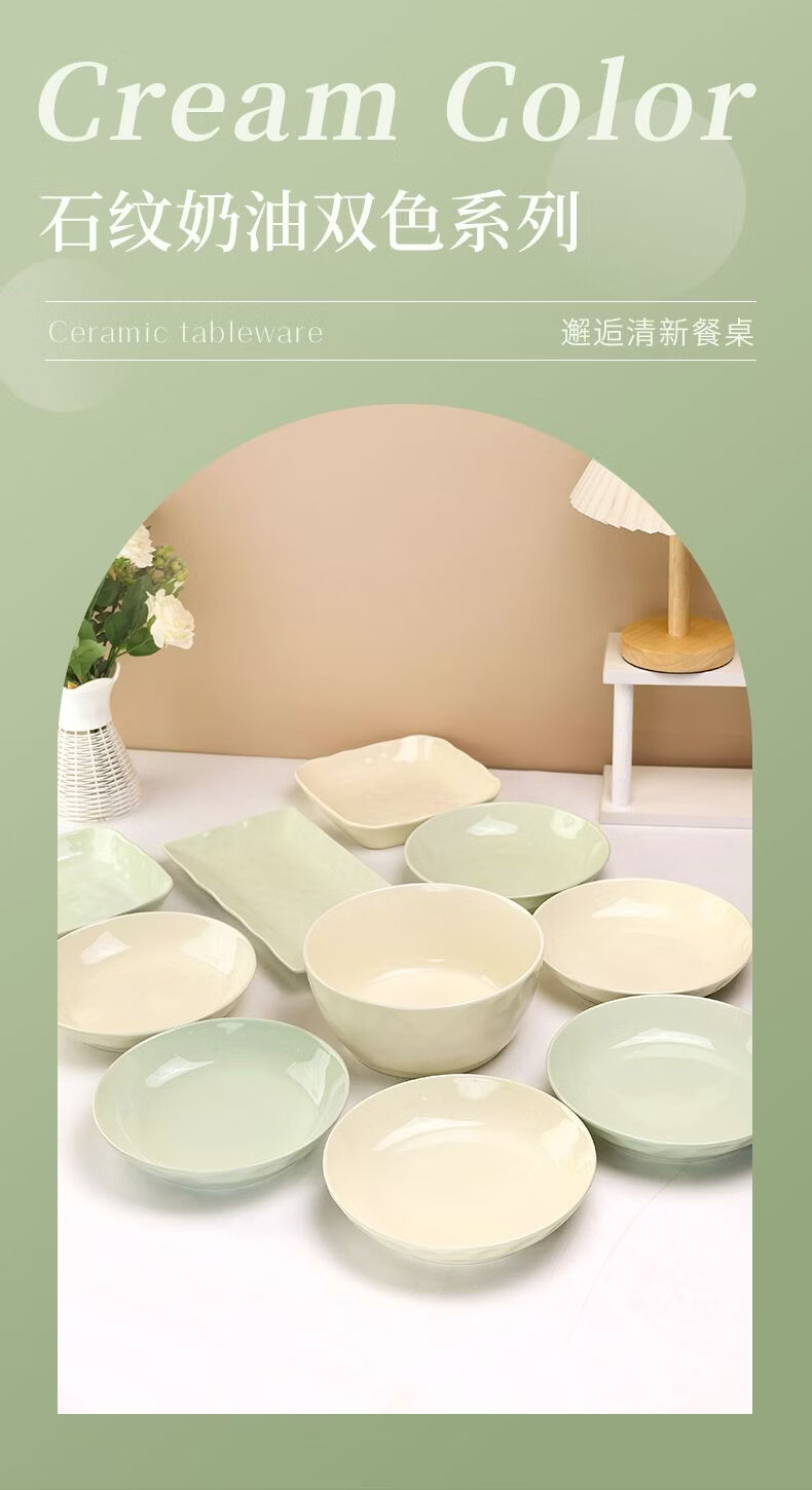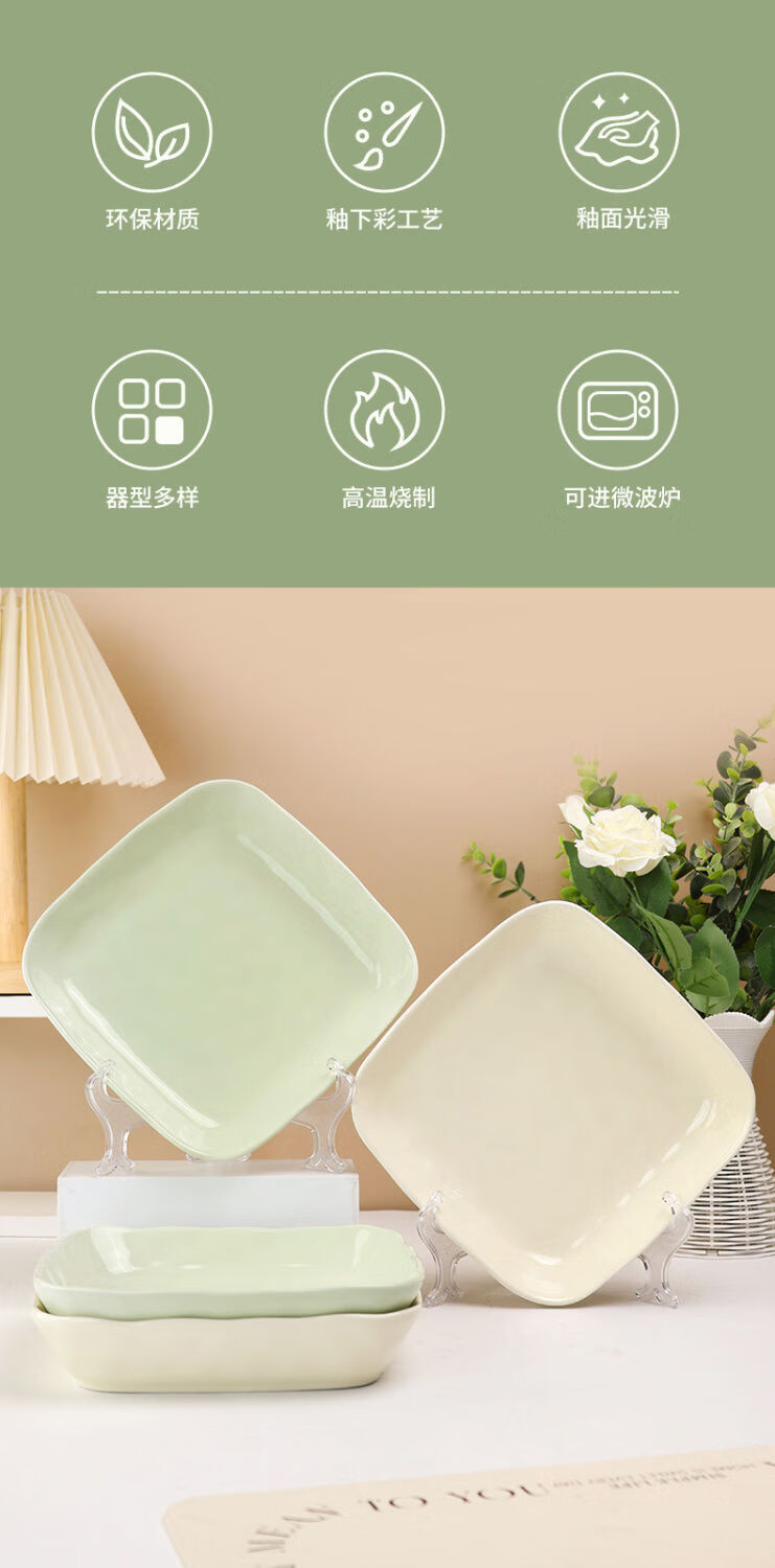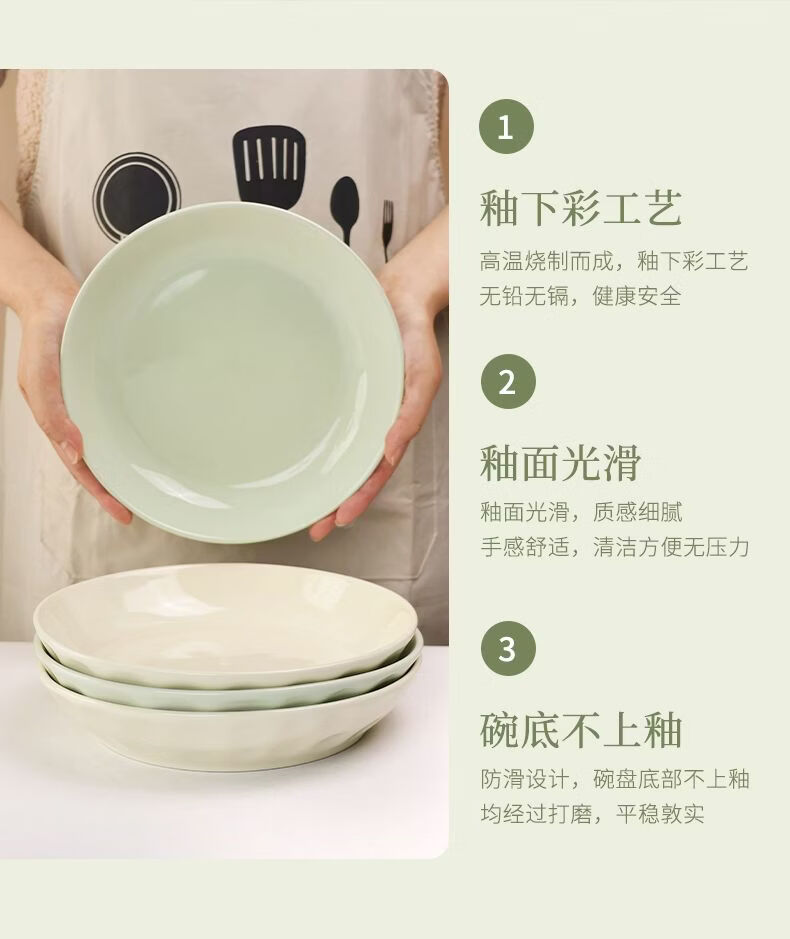 孟垣法式奶油风8英寸4只装圆盘抗菌易清洗大号防烫饭盘菜盘 抗菌奶油(8英寸圆盘4只装两黄两绿) 无规格