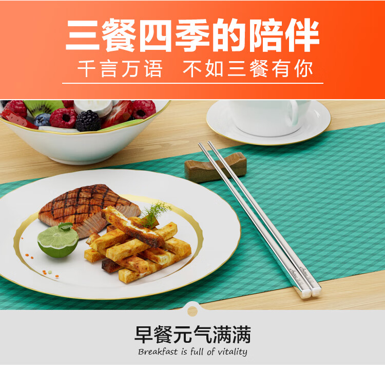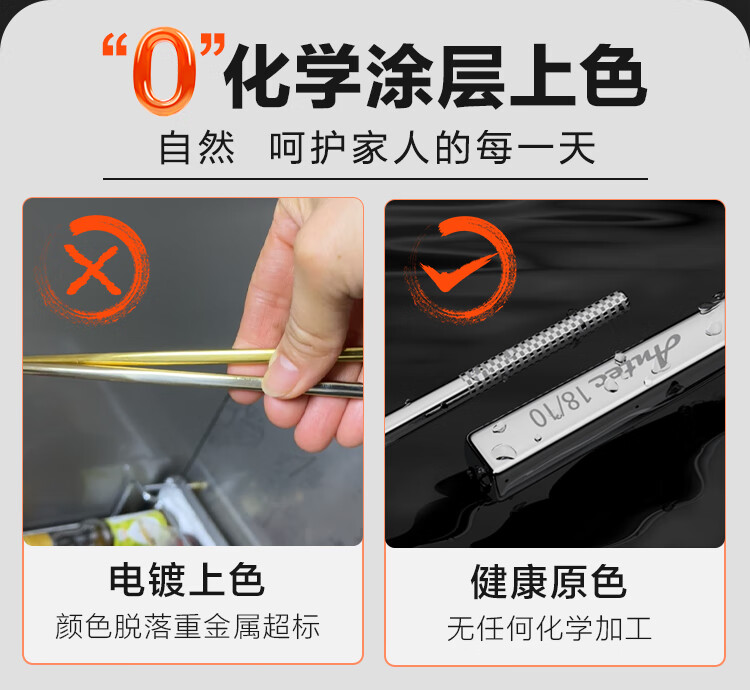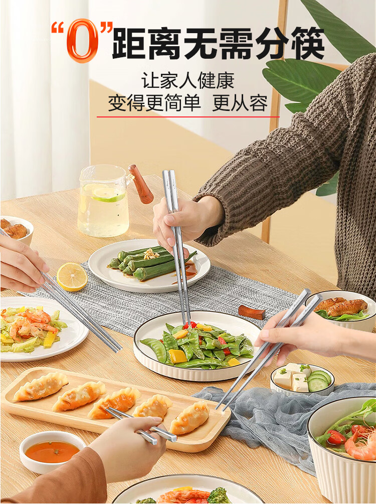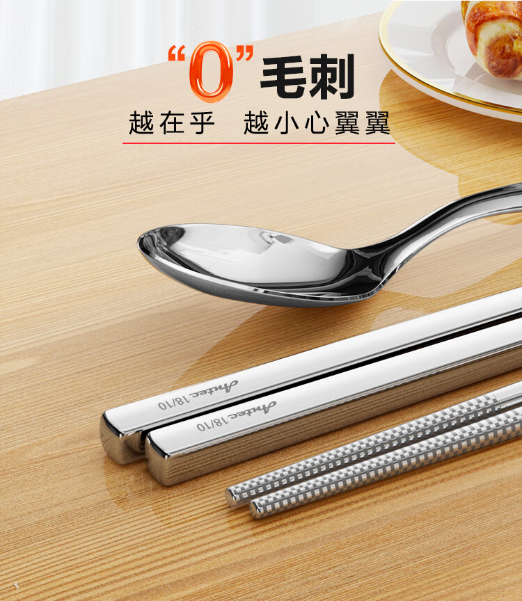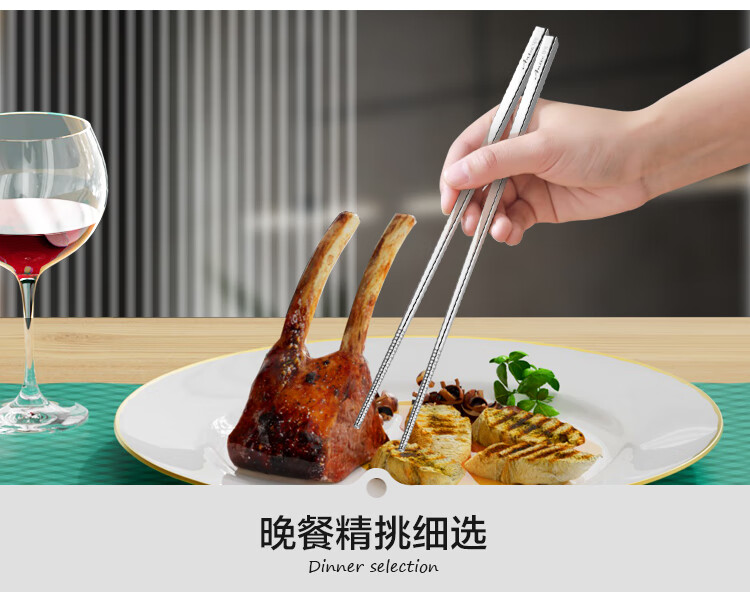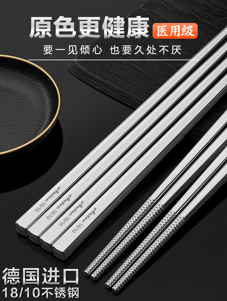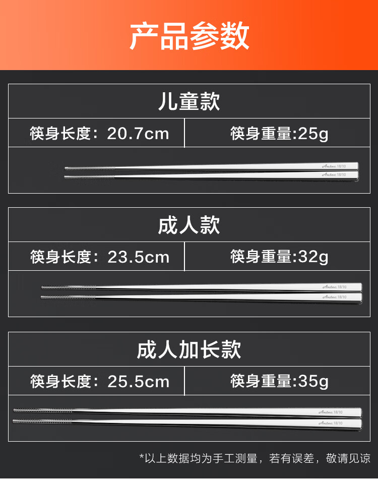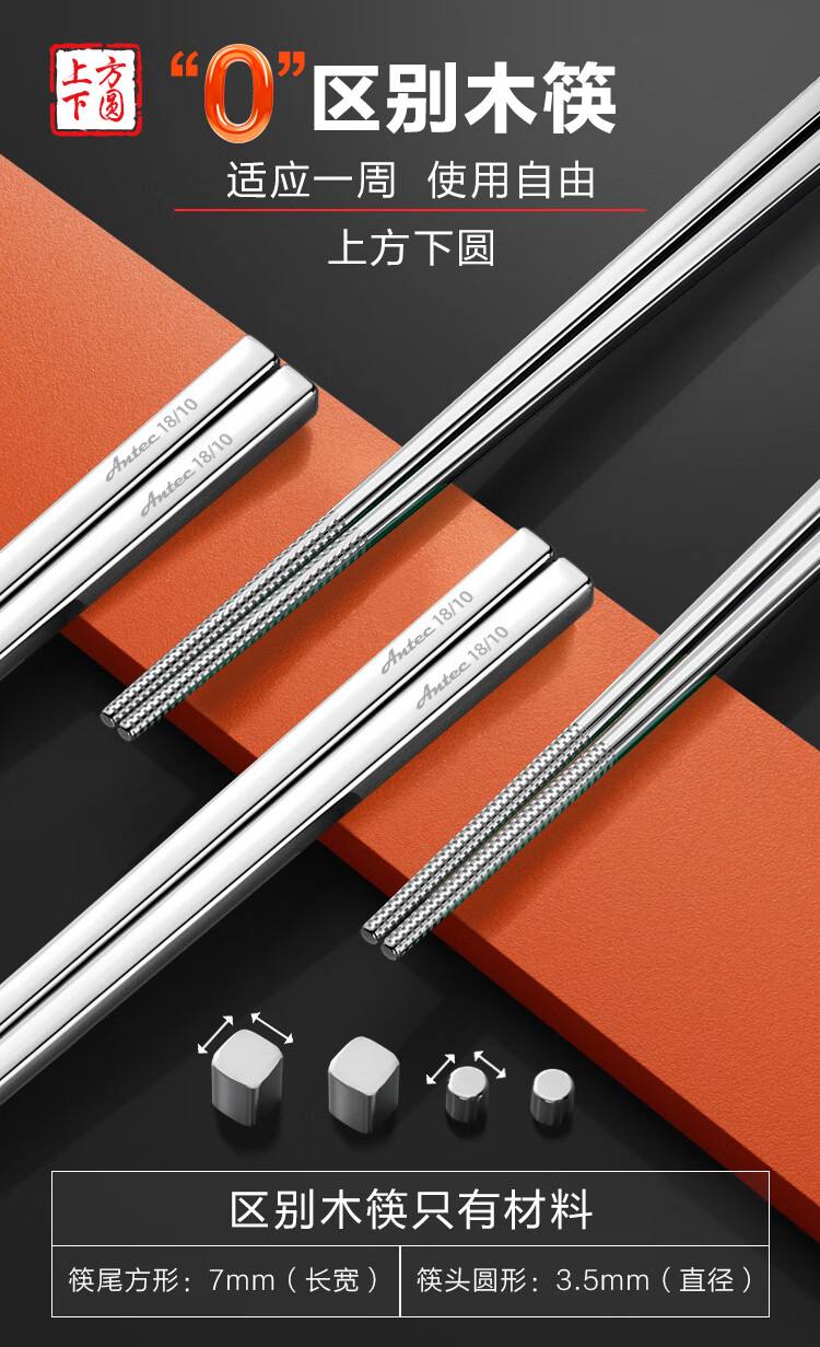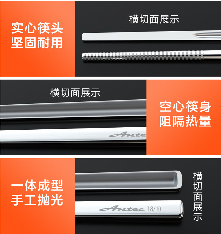 安钛克(Antec)不锈钢筷子316食品级高端抗菌家用加长防滑防霉防烫高档金属筷子 20双成人(尺寸23.5)
