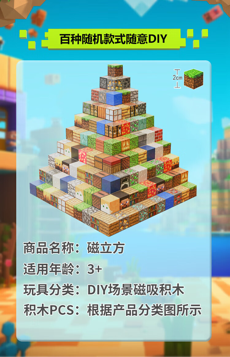 我的世界磁力方块磁铁吸积木乐高玩具3-6-12岁儿童男孩生日礼物 一拖七【旗舰版】大型农场【832颗+26人仔】彩盒