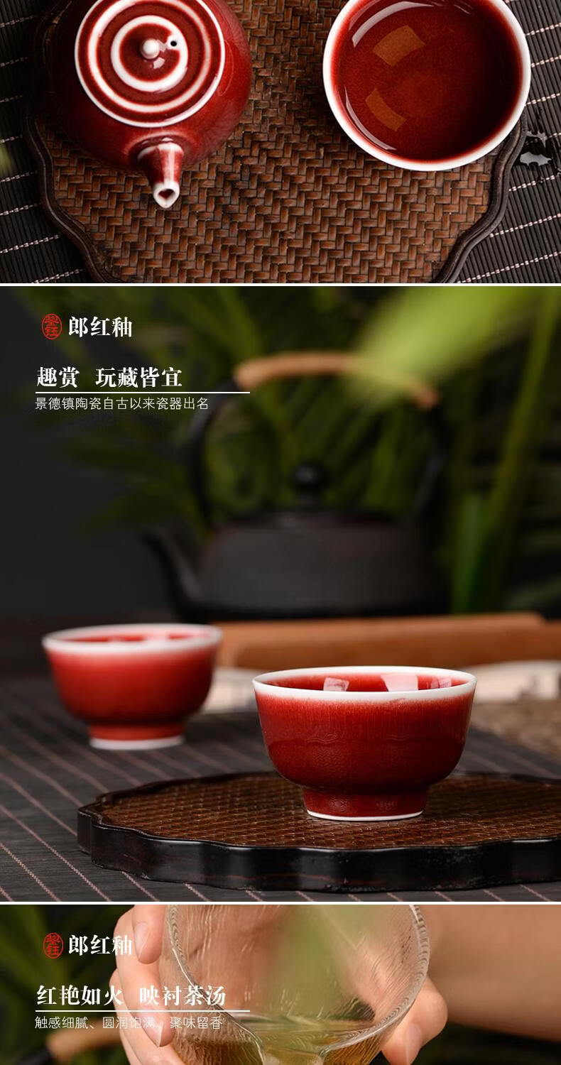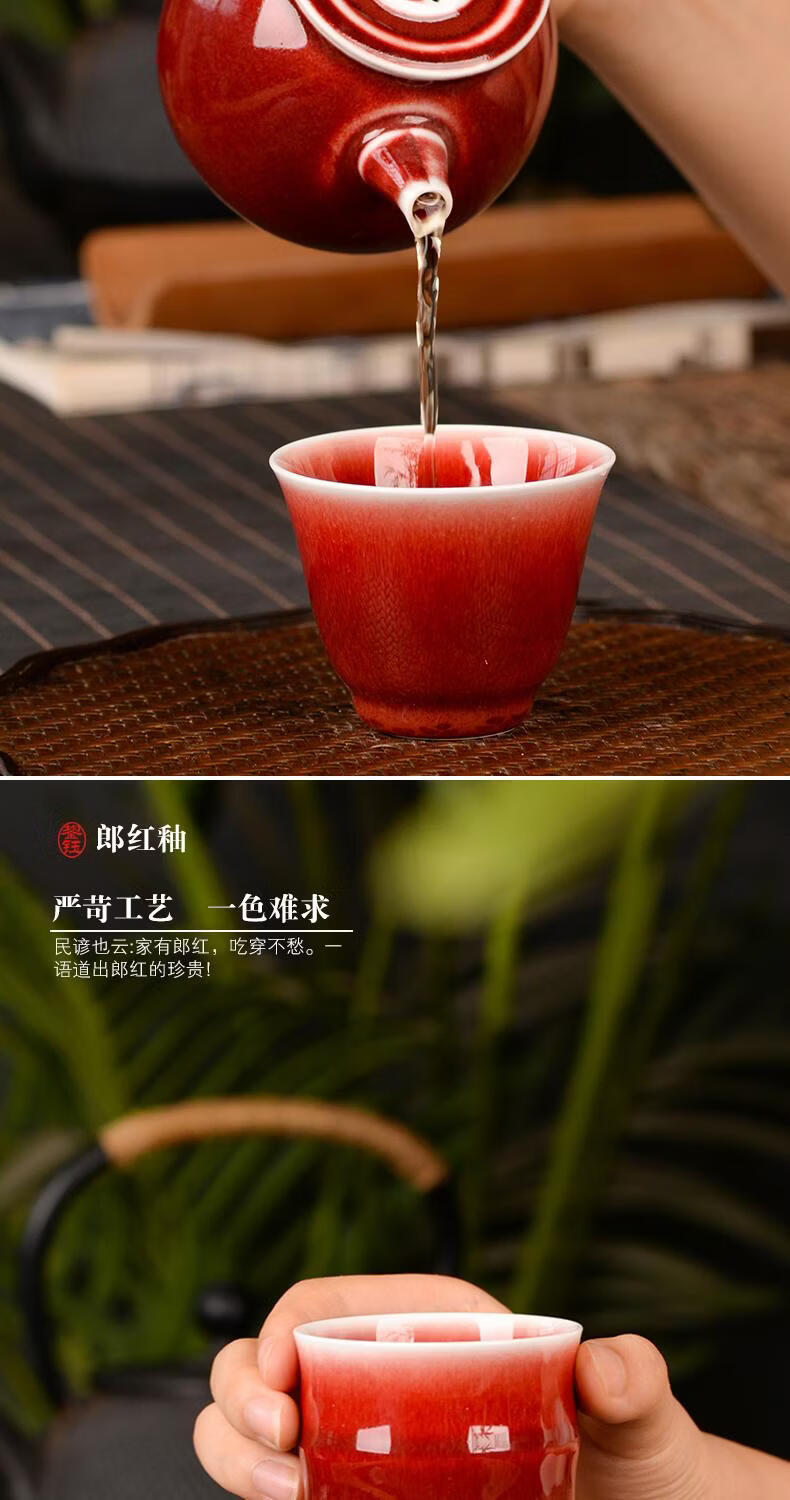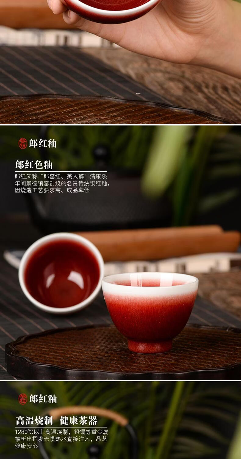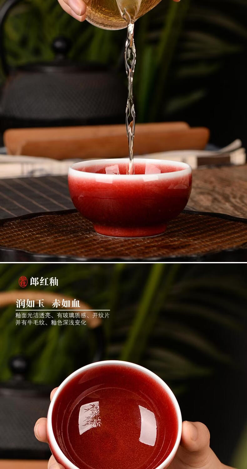 鋆钰郎窑红主人杯品茗杯陶瓷茶杯单杯个人专用茶盏景德镇功夫茶色釉 郎红壶