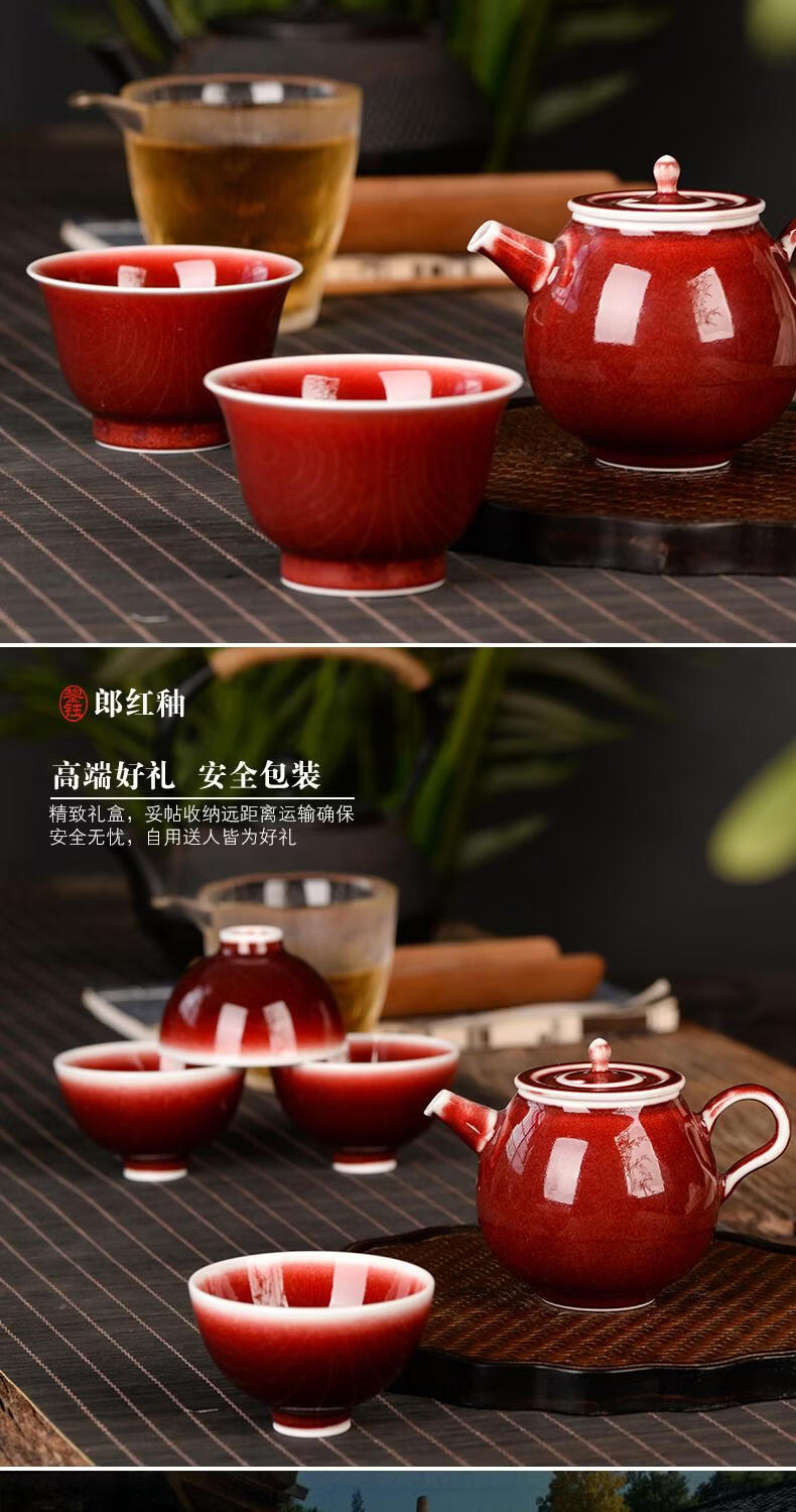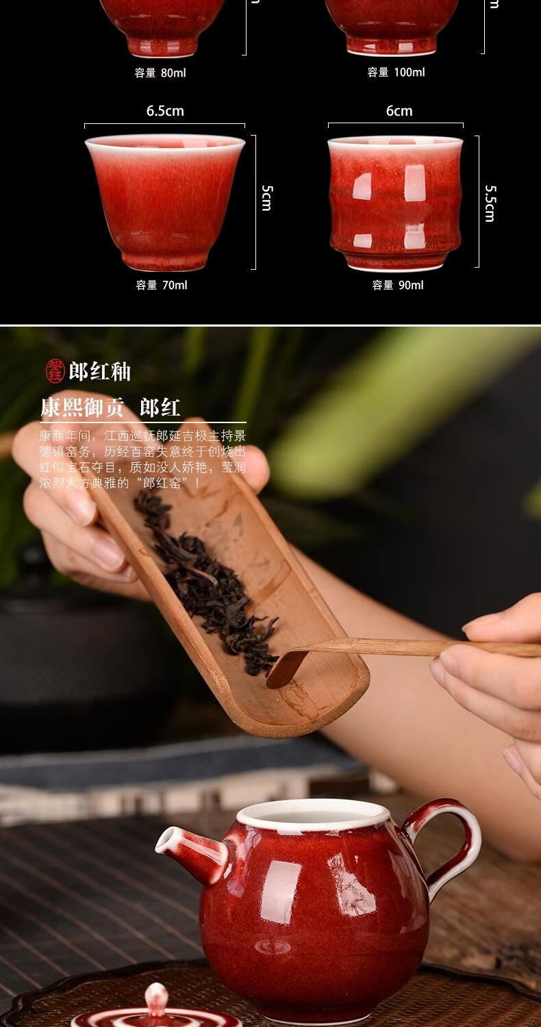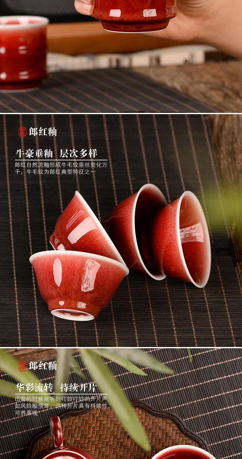 鋆钰郎窑红主人杯品茗杯陶瓷茶杯单杯个人专用茶盏景德镇功夫茶色釉 郎红壶