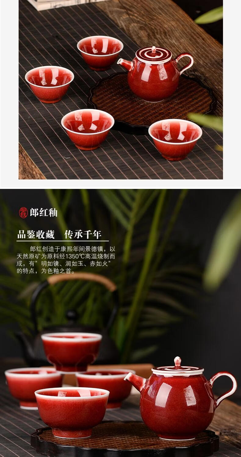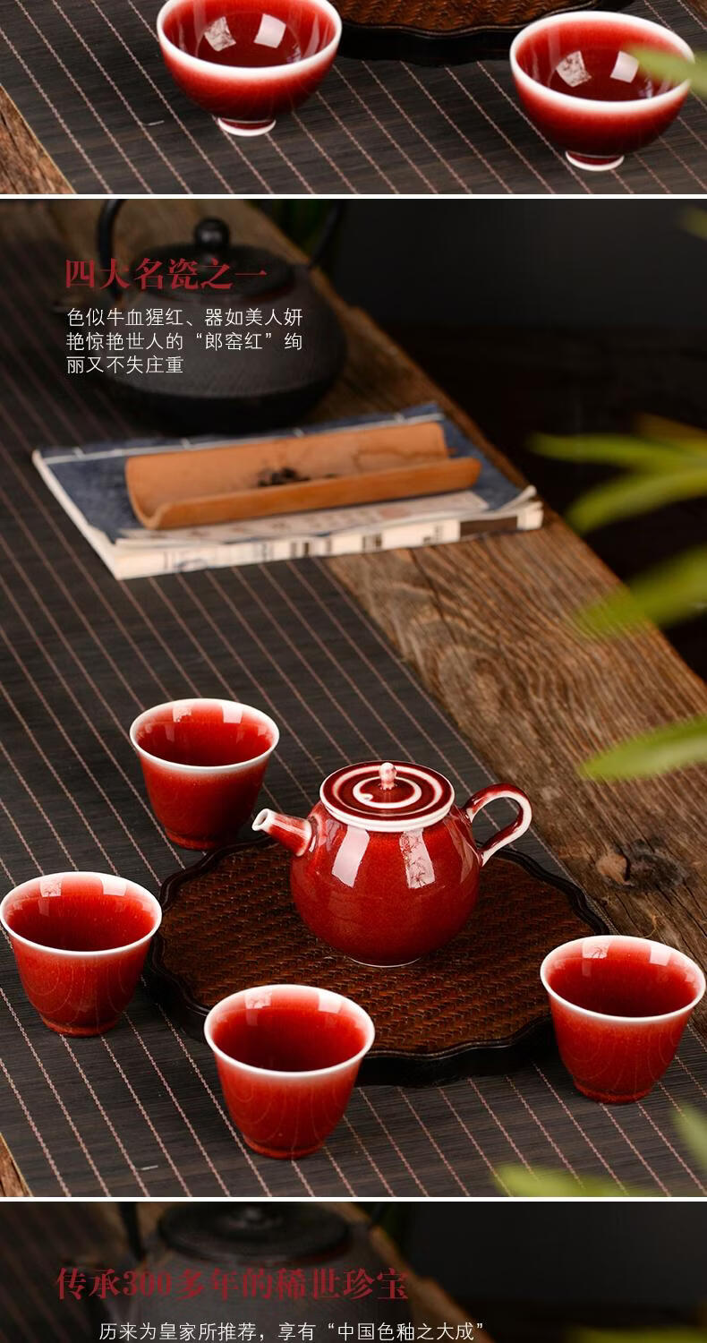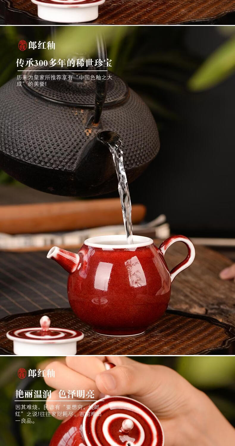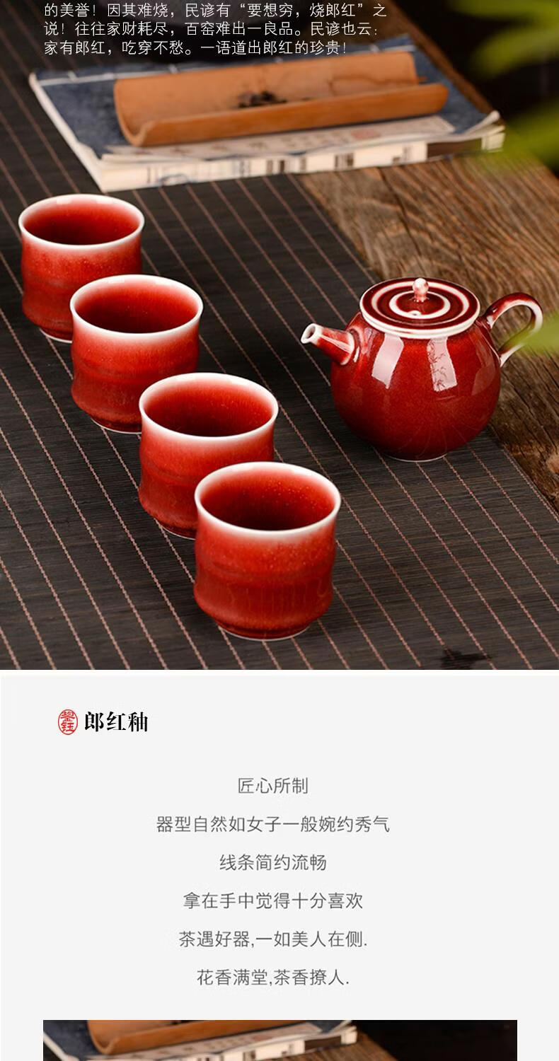 鋆钰郎窑红主人杯品茗杯陶瓷茶杯单杯个人专用茶盏景德镇功夫茶色釉 郎红壶