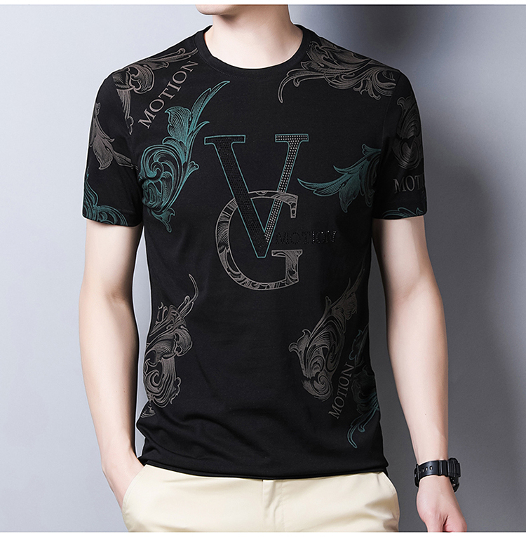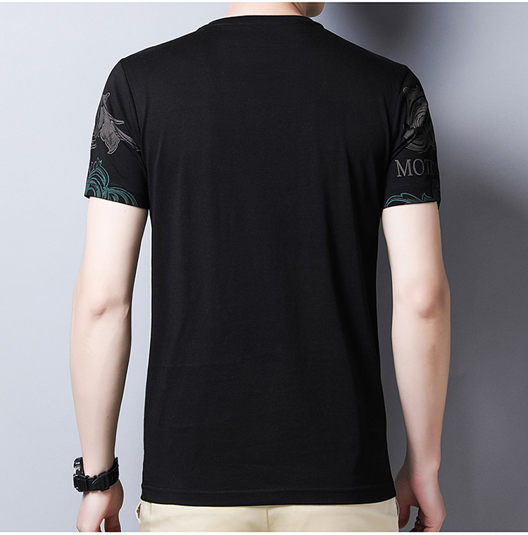 阿玛尼(ARMANI)高端男士桑蚕丝短袖t恤男2026夏季宽松真丝男装潮 黑色 4XL 190【建议190-210斤】