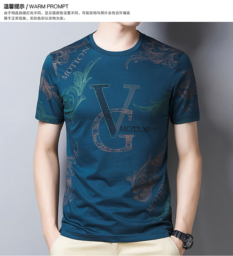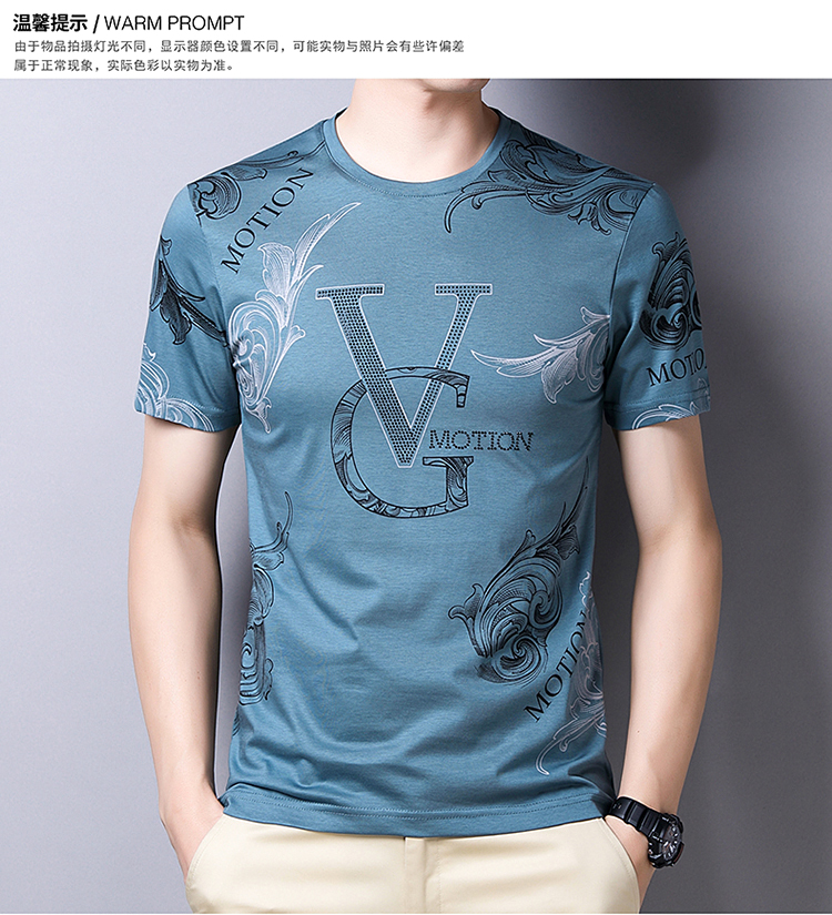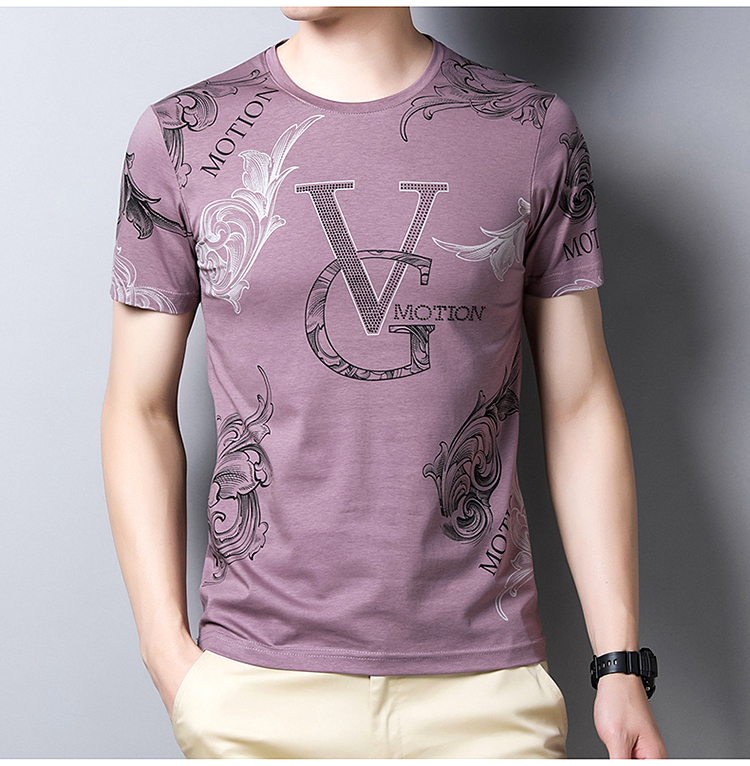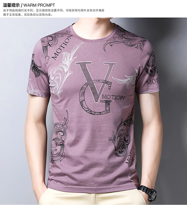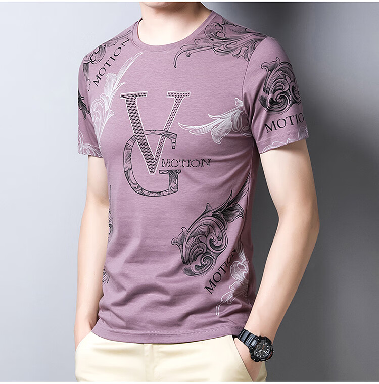 皮尔卡丹法国高端男装 男士短袖T恤丝光棉圆领半袖夏季冰 丝体恤衫桑蚕丝上衣潮 皇冠皮粉红色 190/4XL建议185-200斤