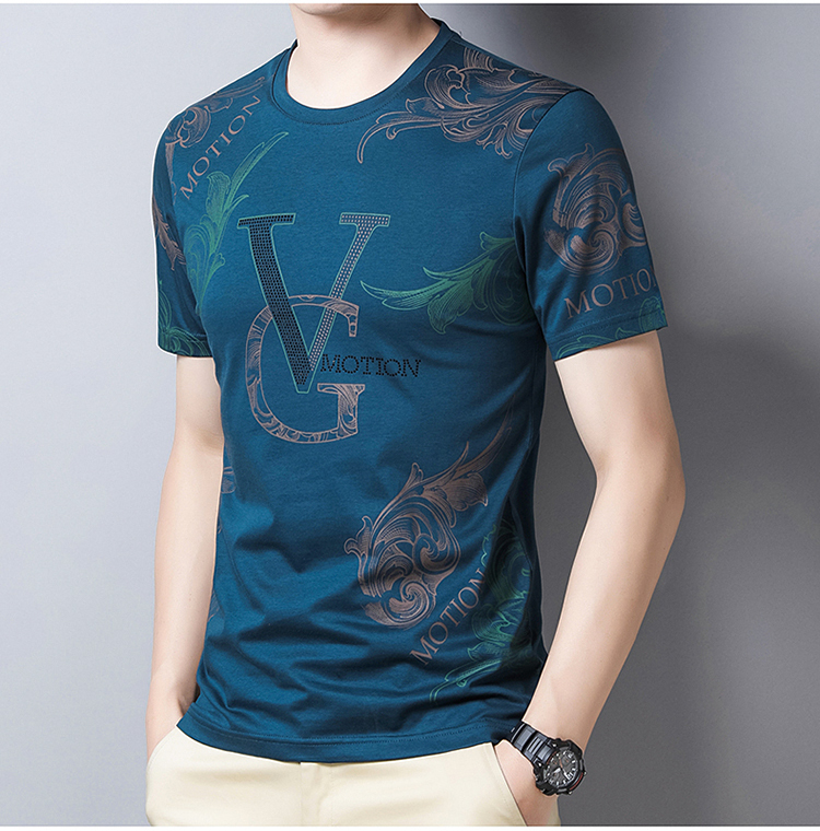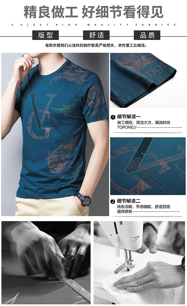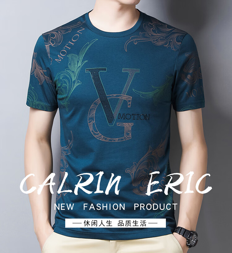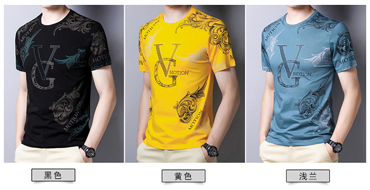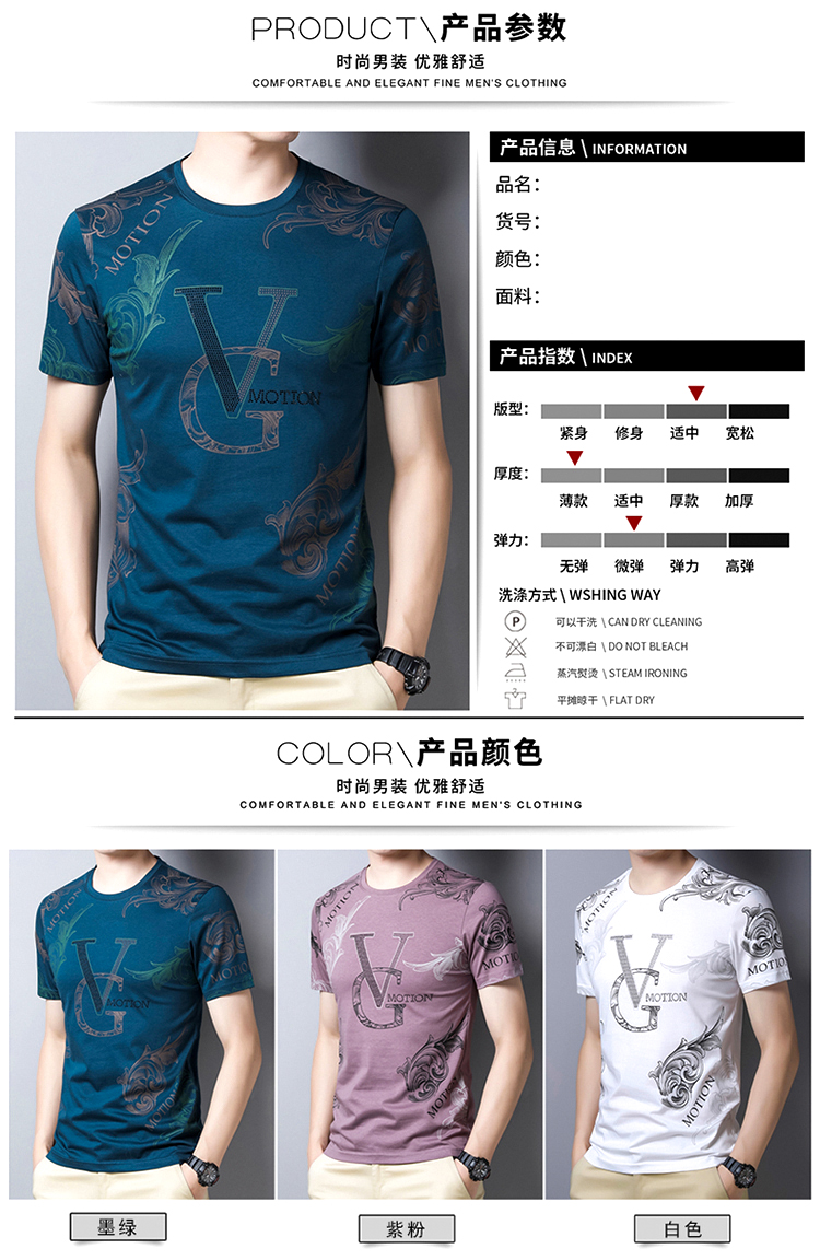 皮尔卡丹法国高端男装 男士短袖T恤丝光棉圆领半袖夏季冰 丝体恤衫桑蚕丝上衣潮 皇冠皮粉红色 190/4XL建议185-200斤