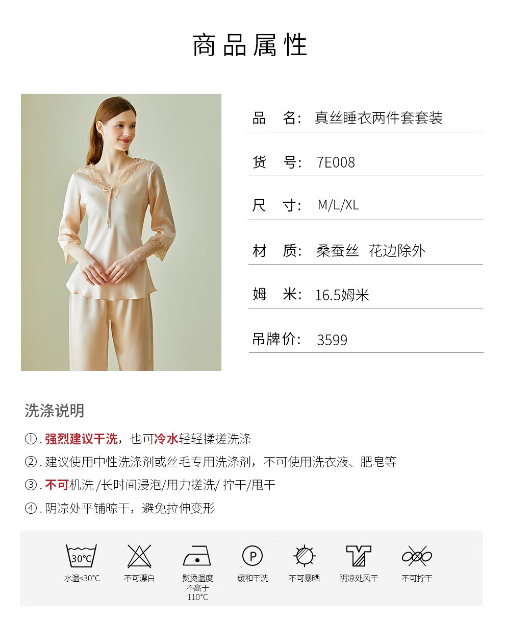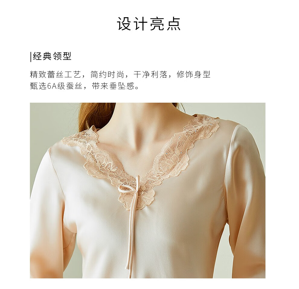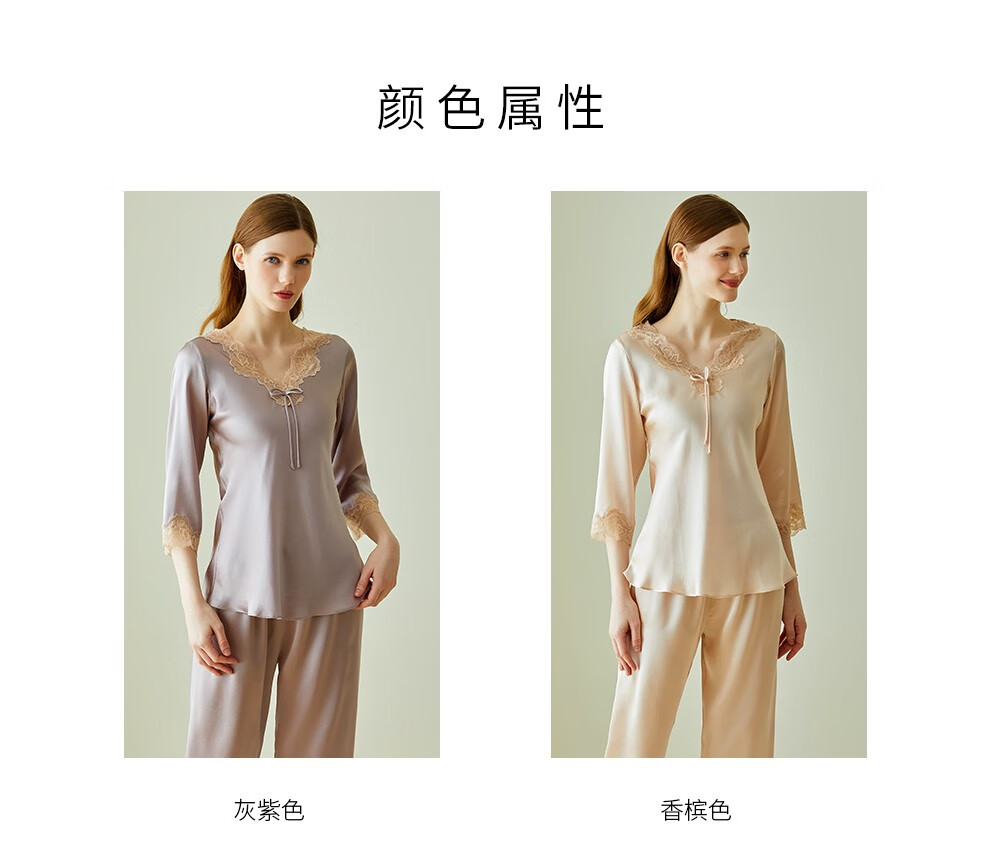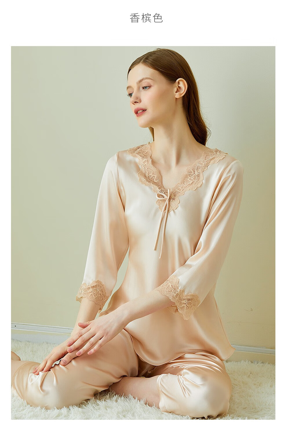 江南故事秋冬真丝睡衣女100%桑蚕丝气质V领睡衣裤两件套修身可外穿家居服 [热荐]香槟色 【高档礼盒】 L