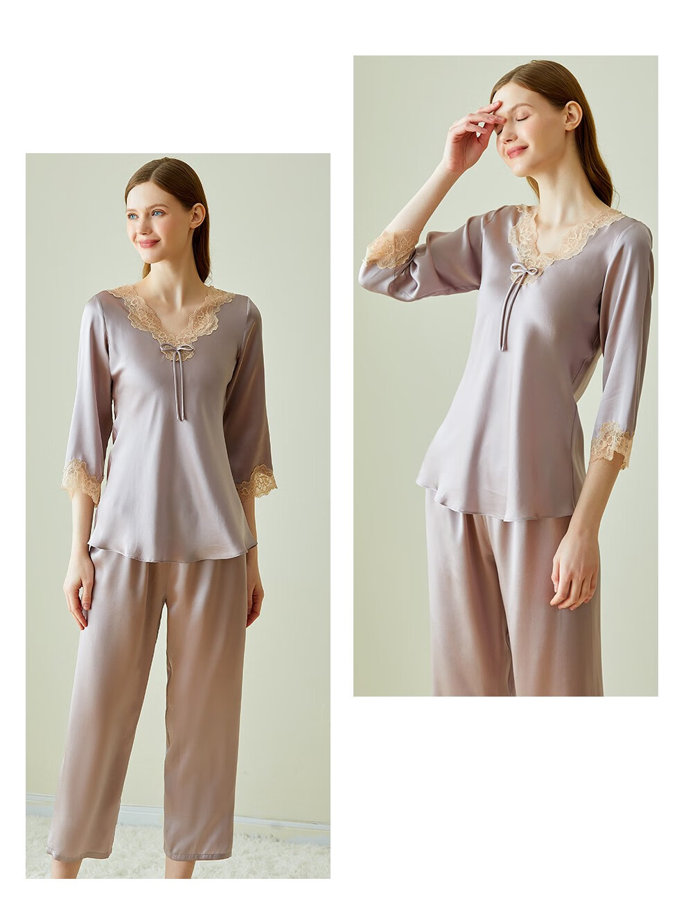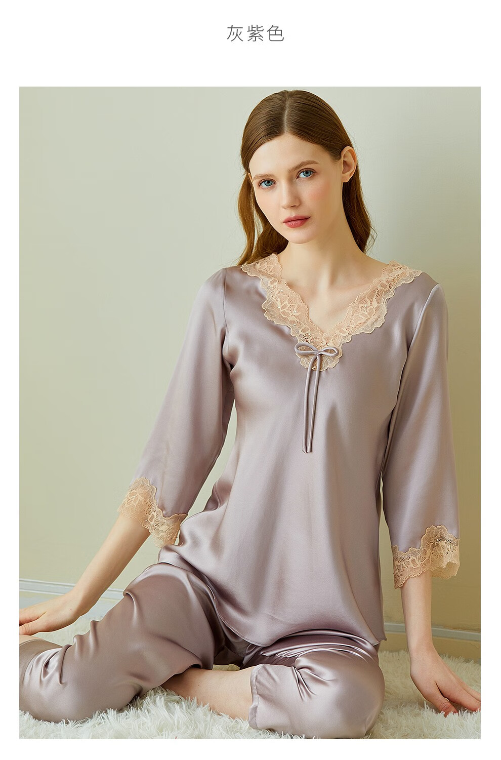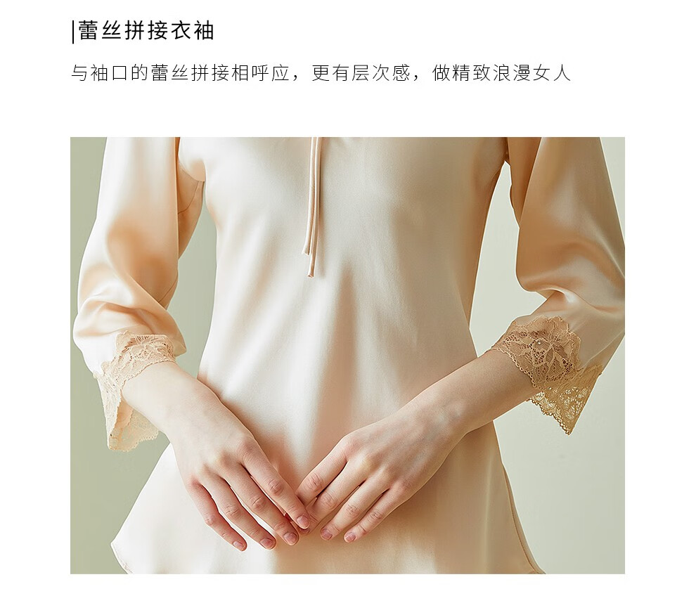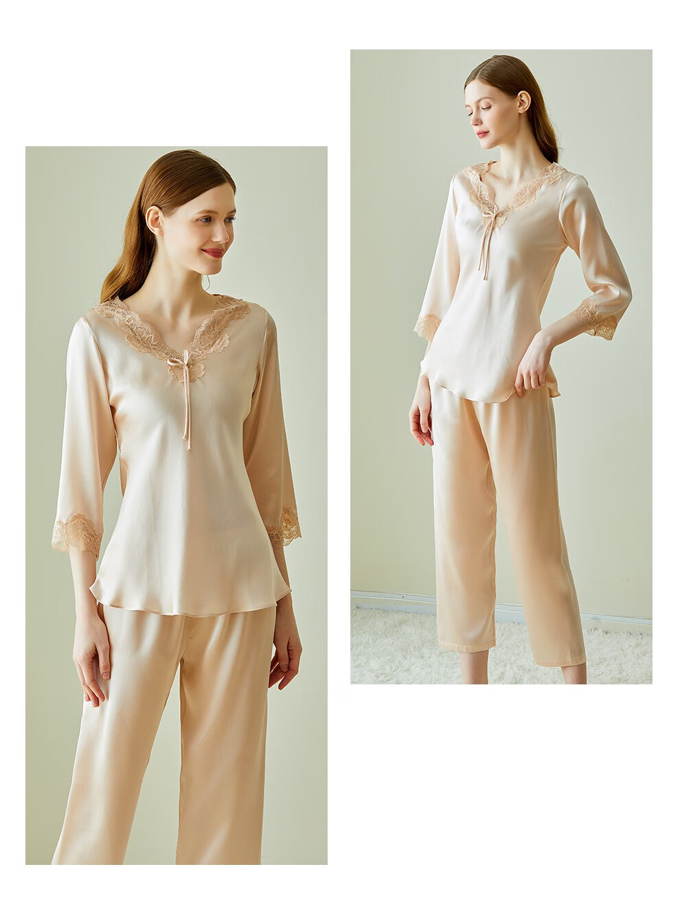 江南故事秋冬真丝睡衣女100%桑蚕丝气质V领睡衣裤两件套修身可外穿家居服 [热荐]香槟色 【高档礼盒】 L