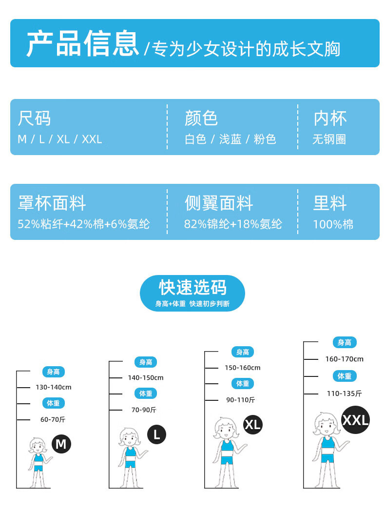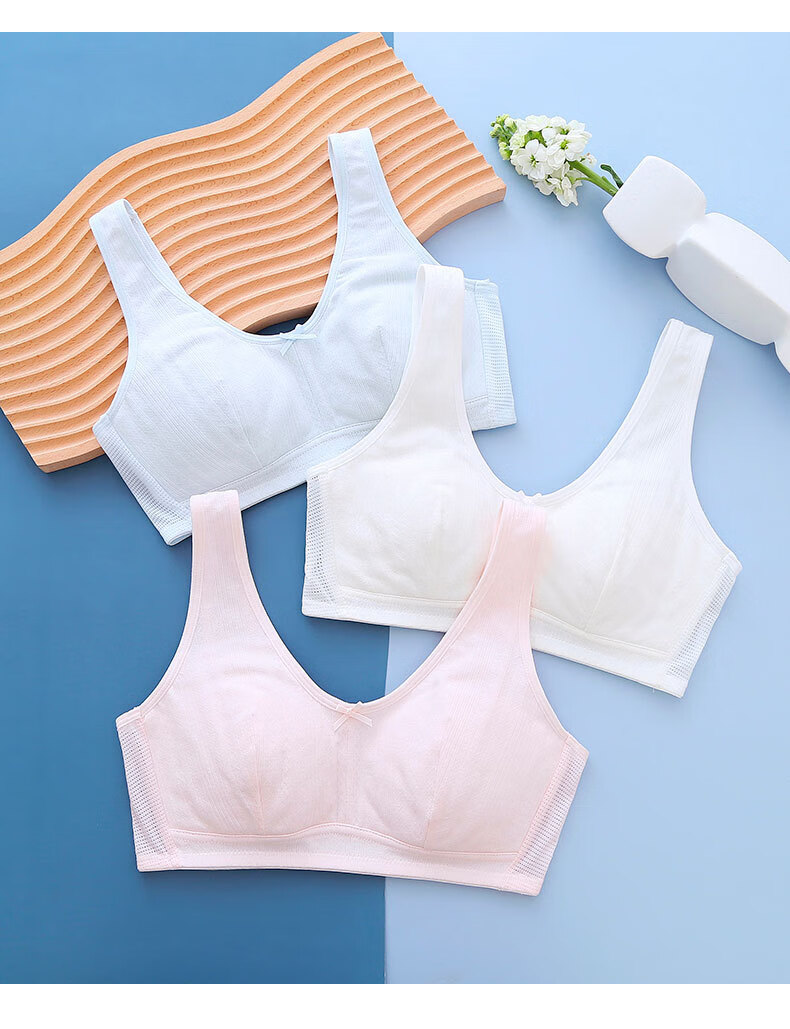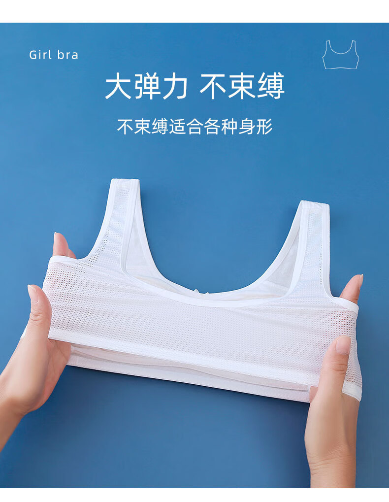 少女文胸发育期小学生初中高中生内衣网孔轻薄大弹力女童背心 粉色 3XL 【125-140斤】