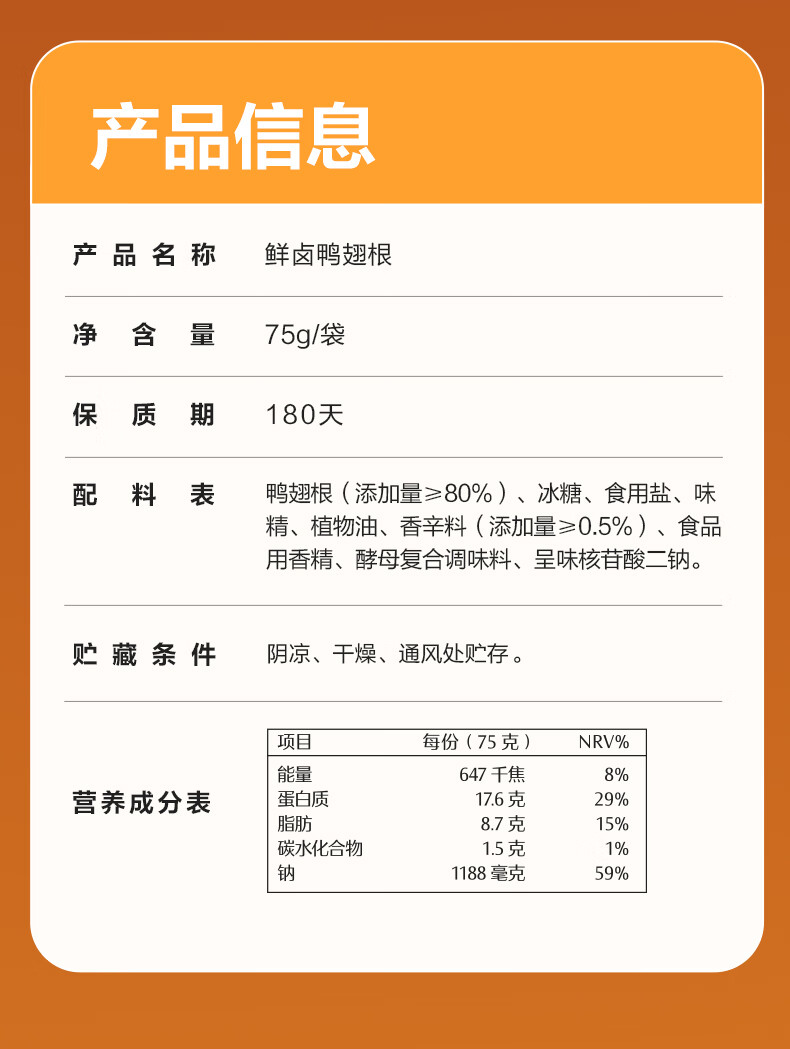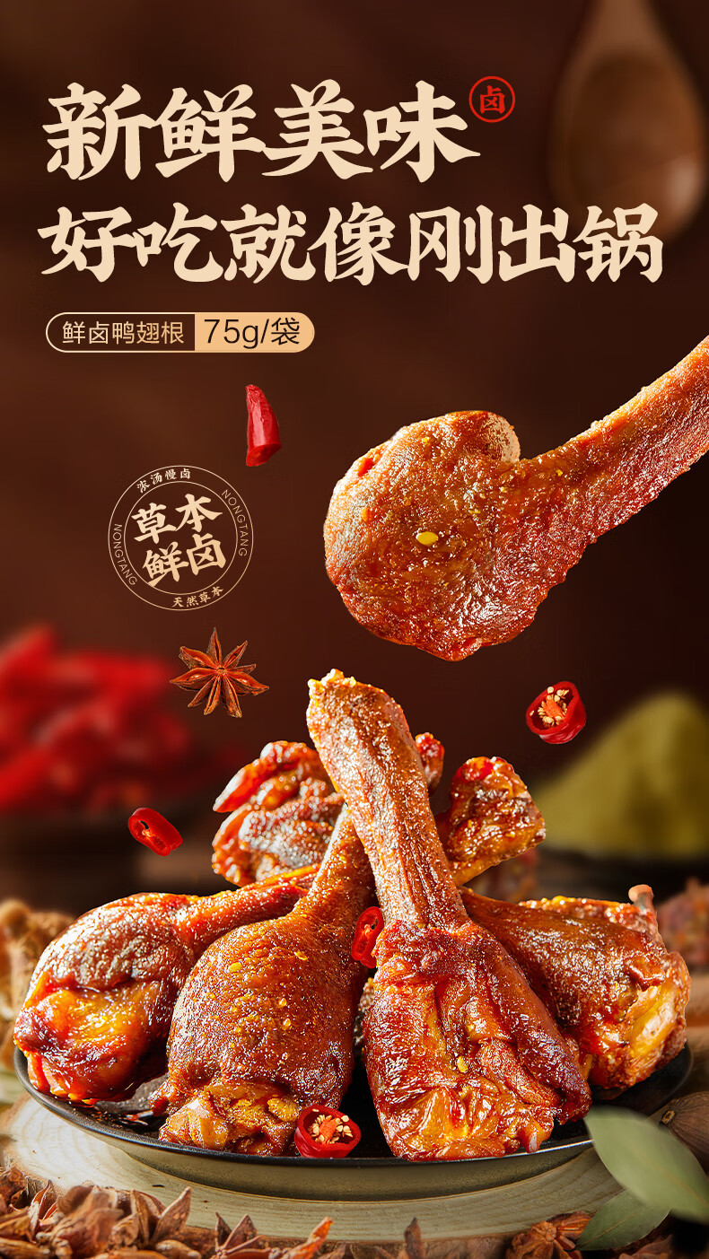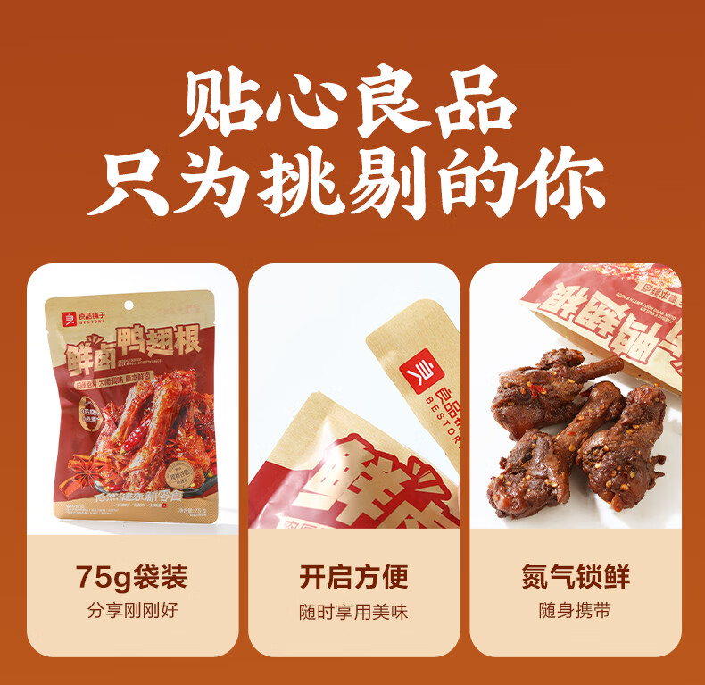 良品铺子鲜卤鸭翅根75g鸭腿卤味熟食鸭肉零食肉干肉脯零食解馋休闲零食