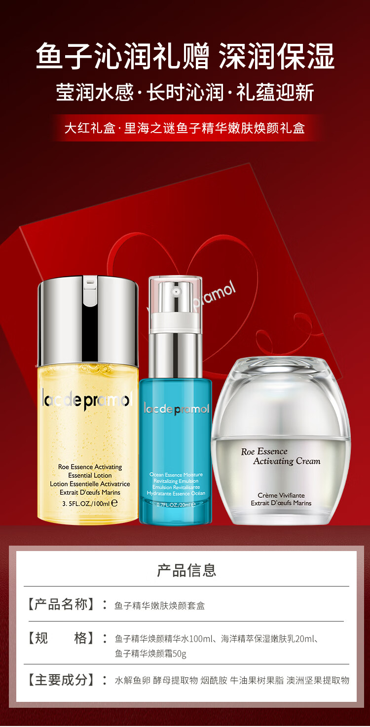 里海之谜鱼子精华嫩肤焕颜套盒大红盒透明质酸钠酵母提取物补水保湿
