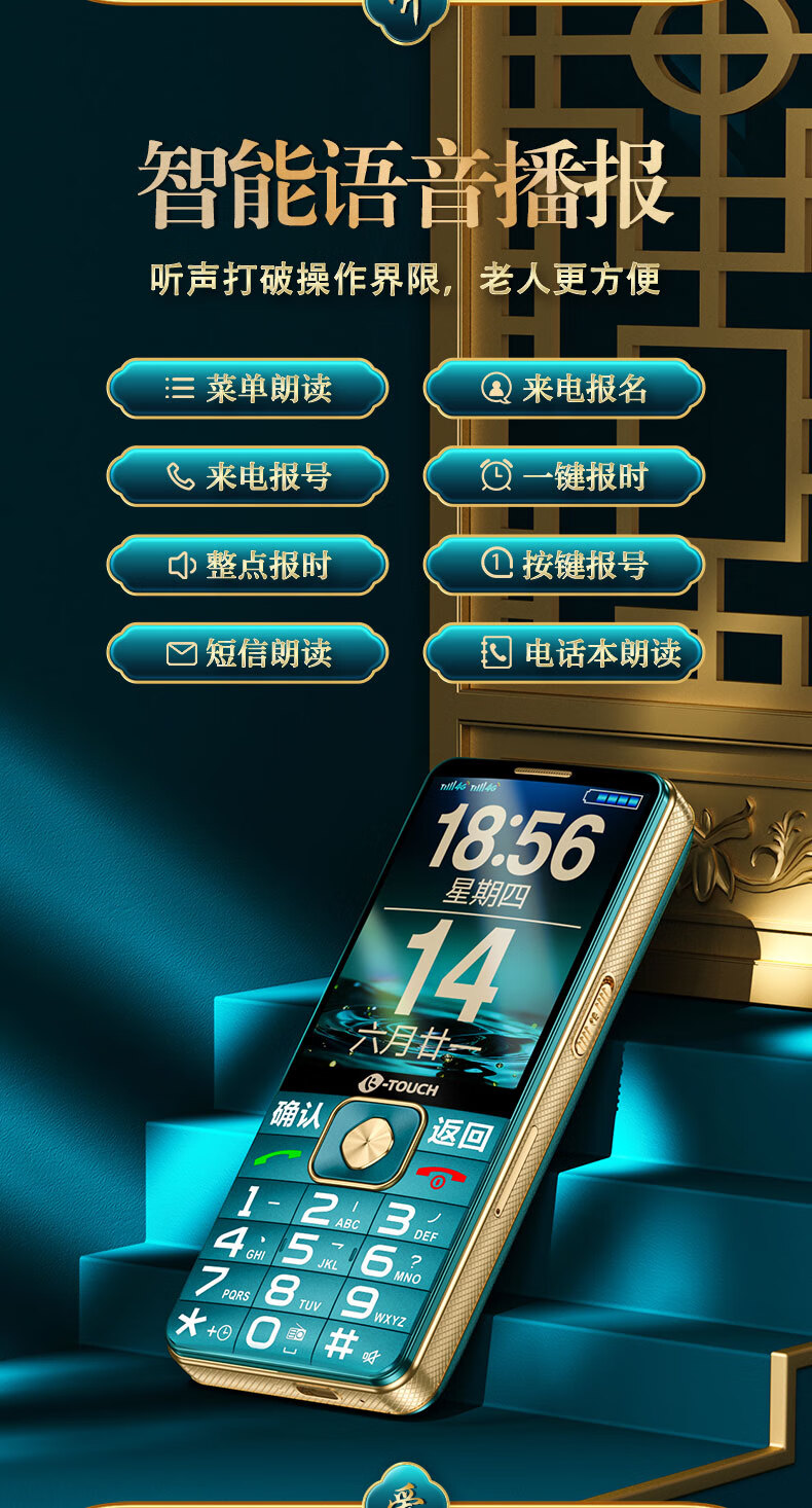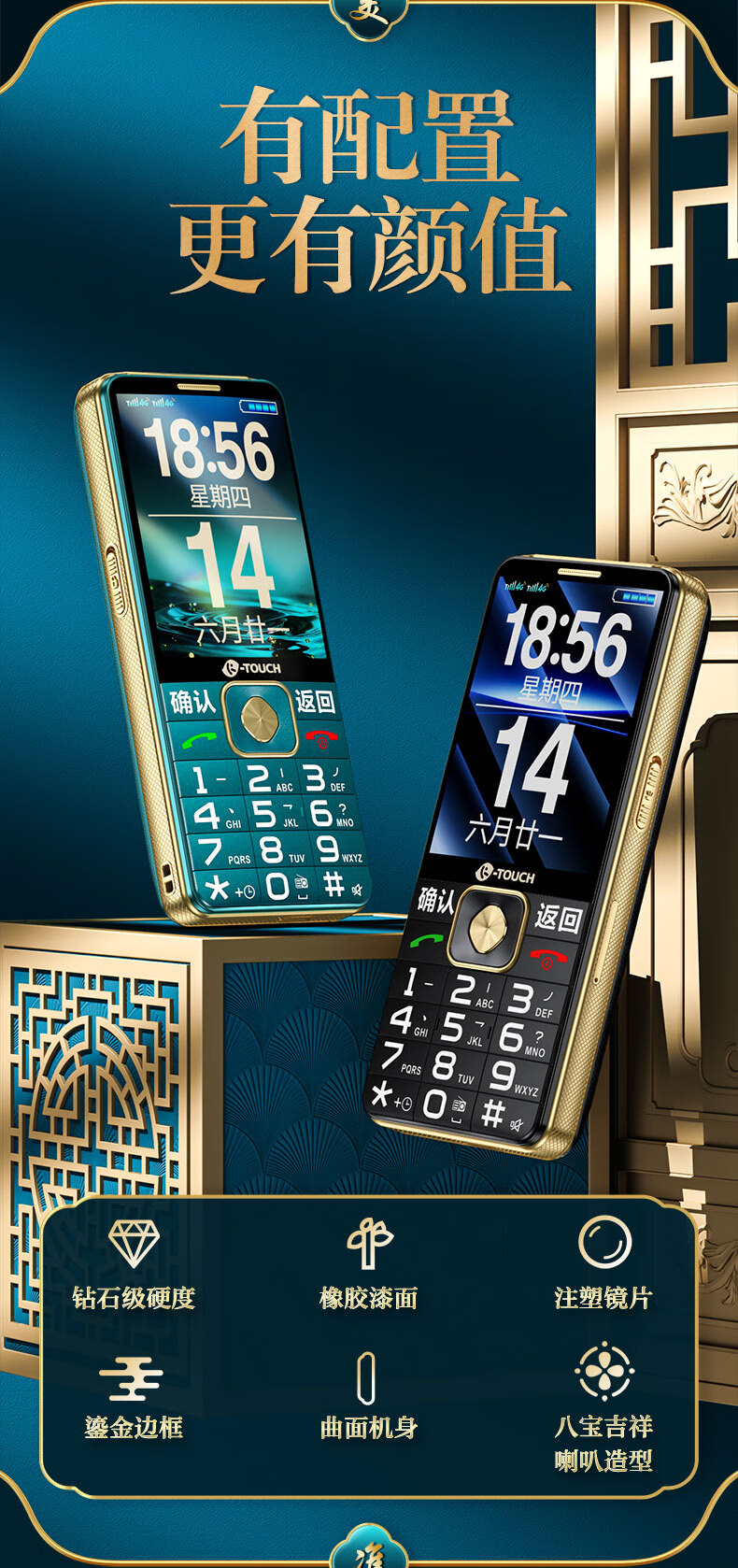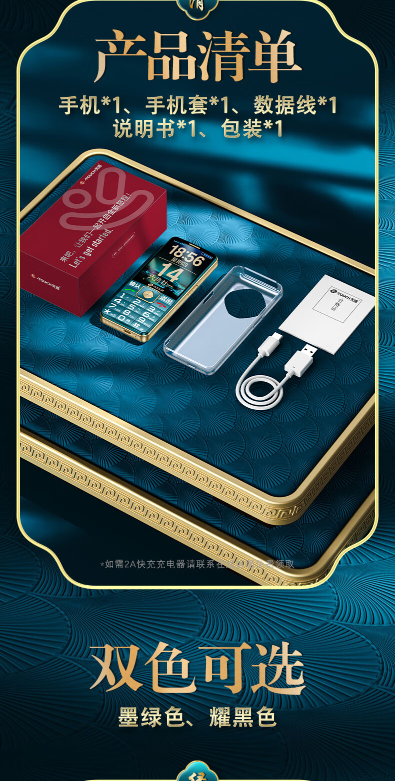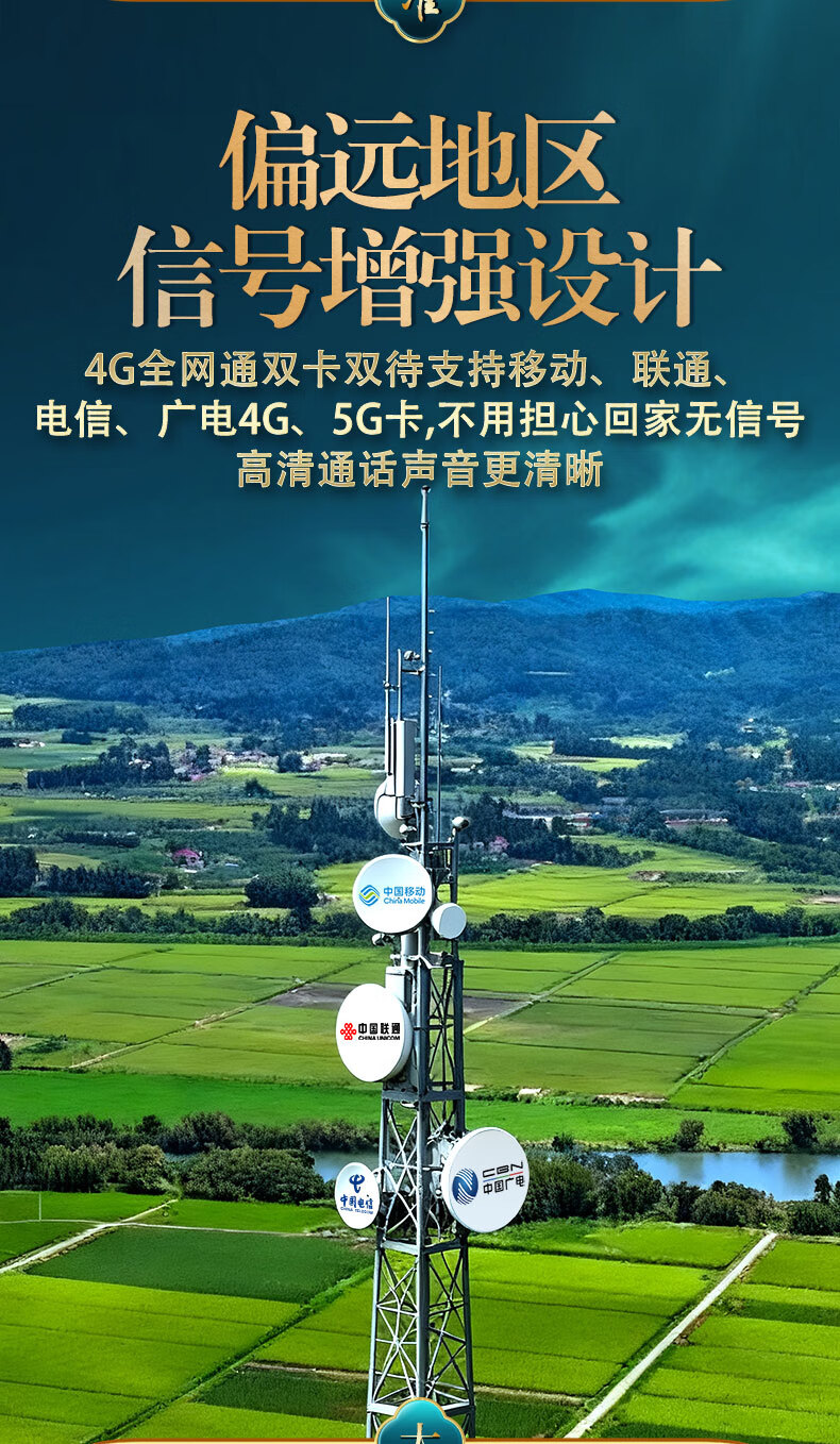 天语U20老年机2A快充5000mAh全网通4G超长待机大声大屏大字按键学生只打电话专用功能老人手机 千山翠