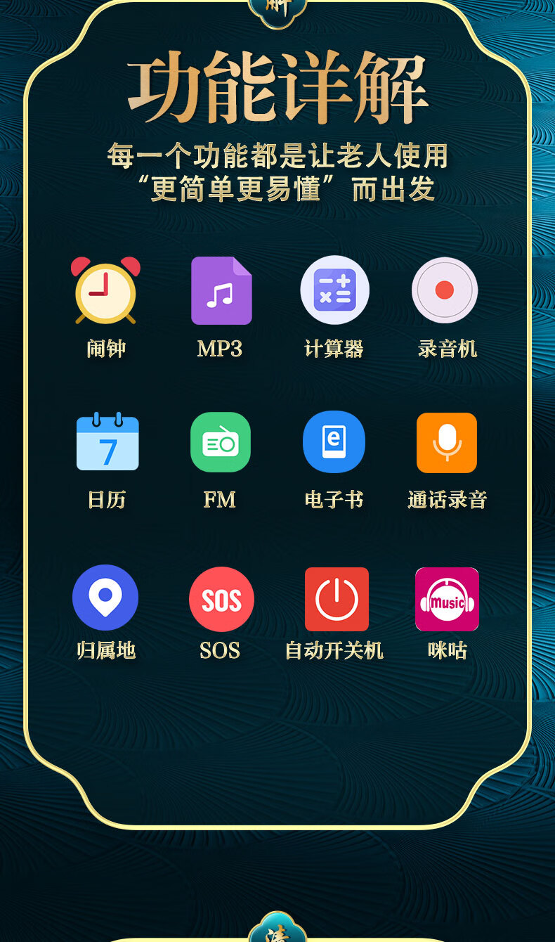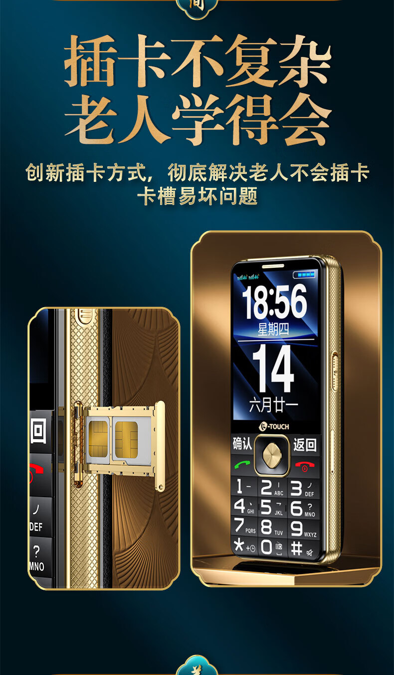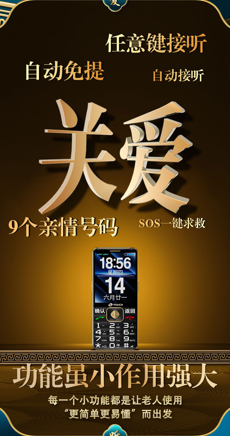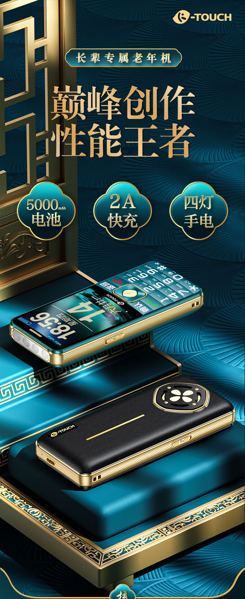 天语U20老年机2A快充5000mAh全网通4G超长待机大声大屏大字按键学生只打电话专用功能老人手机 千山翠
