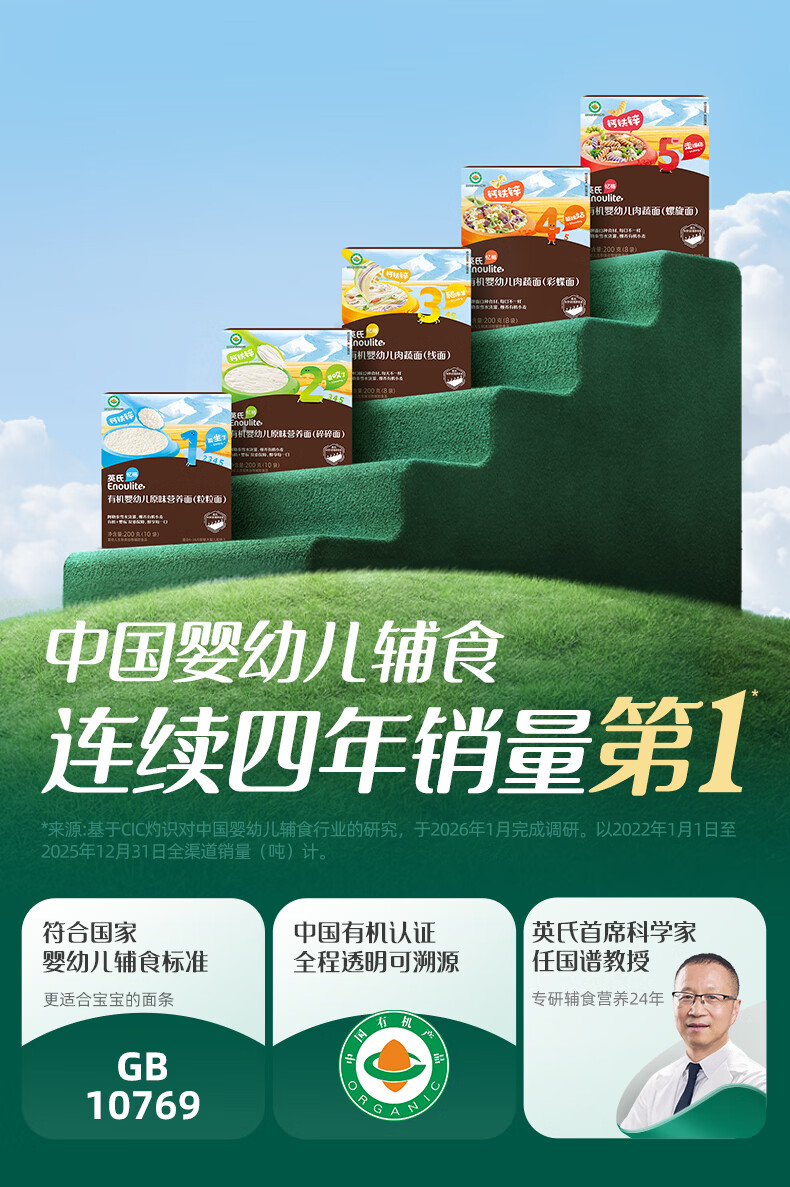 英氏(Engnice)【宝宝面条专区】婴幼儿有机面条辅食儿童意面碎碎面蝴蝶面 【有机】2阶有机彩蔬面(线面)200g
