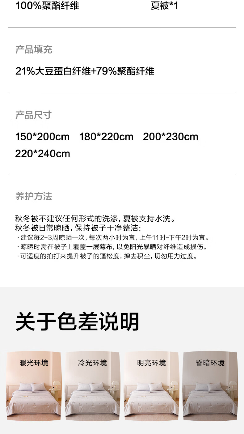 LOVO罗莱 A类大豆被60%大豆春秋被子被芯可水洗四季被 200*230cm
