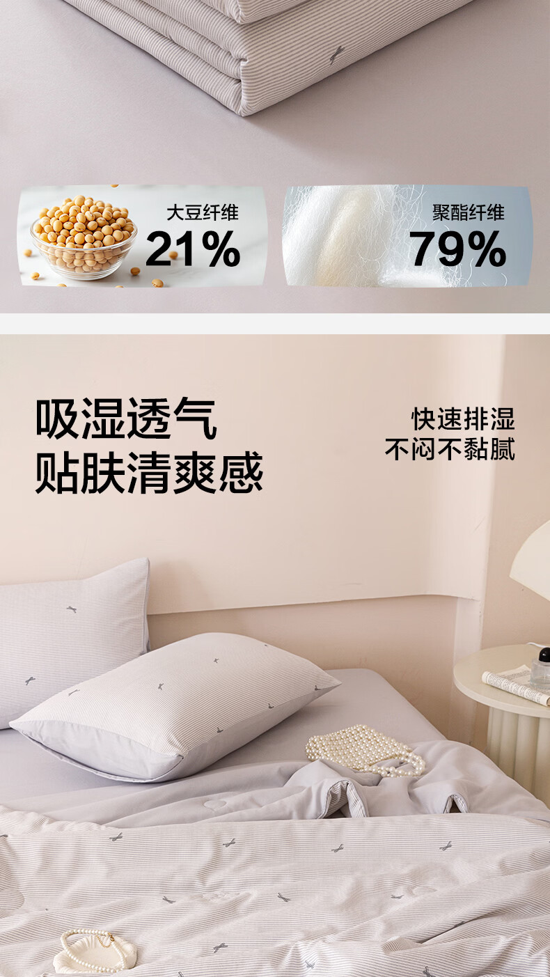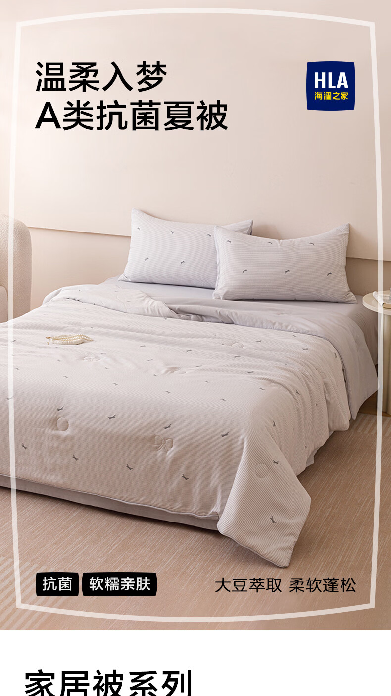 海澜之家(HLA)A类大豆被夏凉被可机洗空调被子1.8米x2米夏季薄被被芯大豆纤维被 浅灰【大豆纤维填充 A类裸睡级】 150cm*200cm
