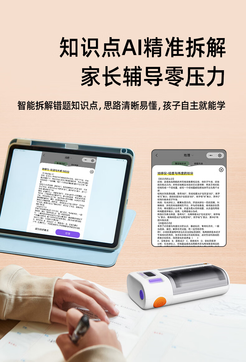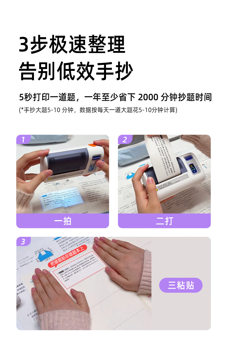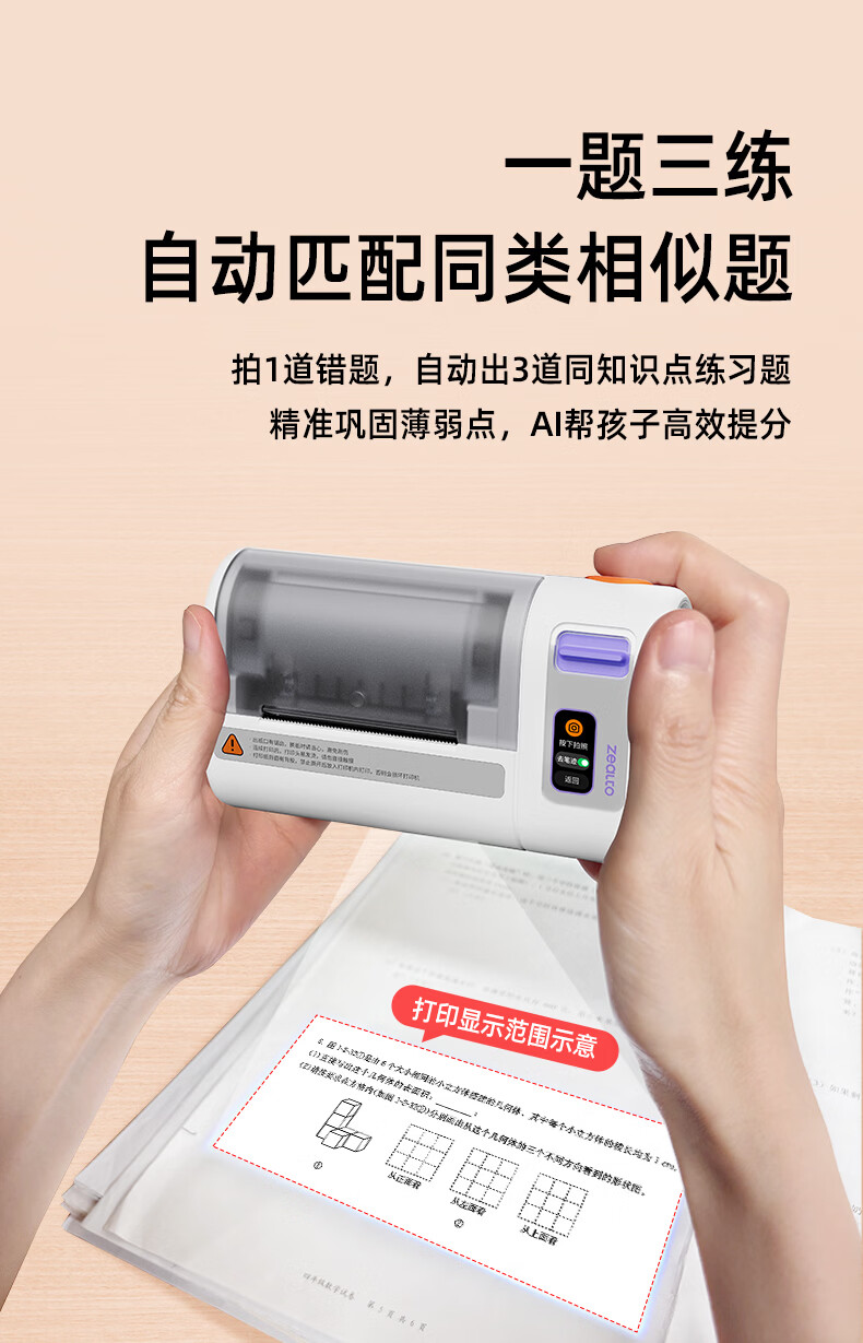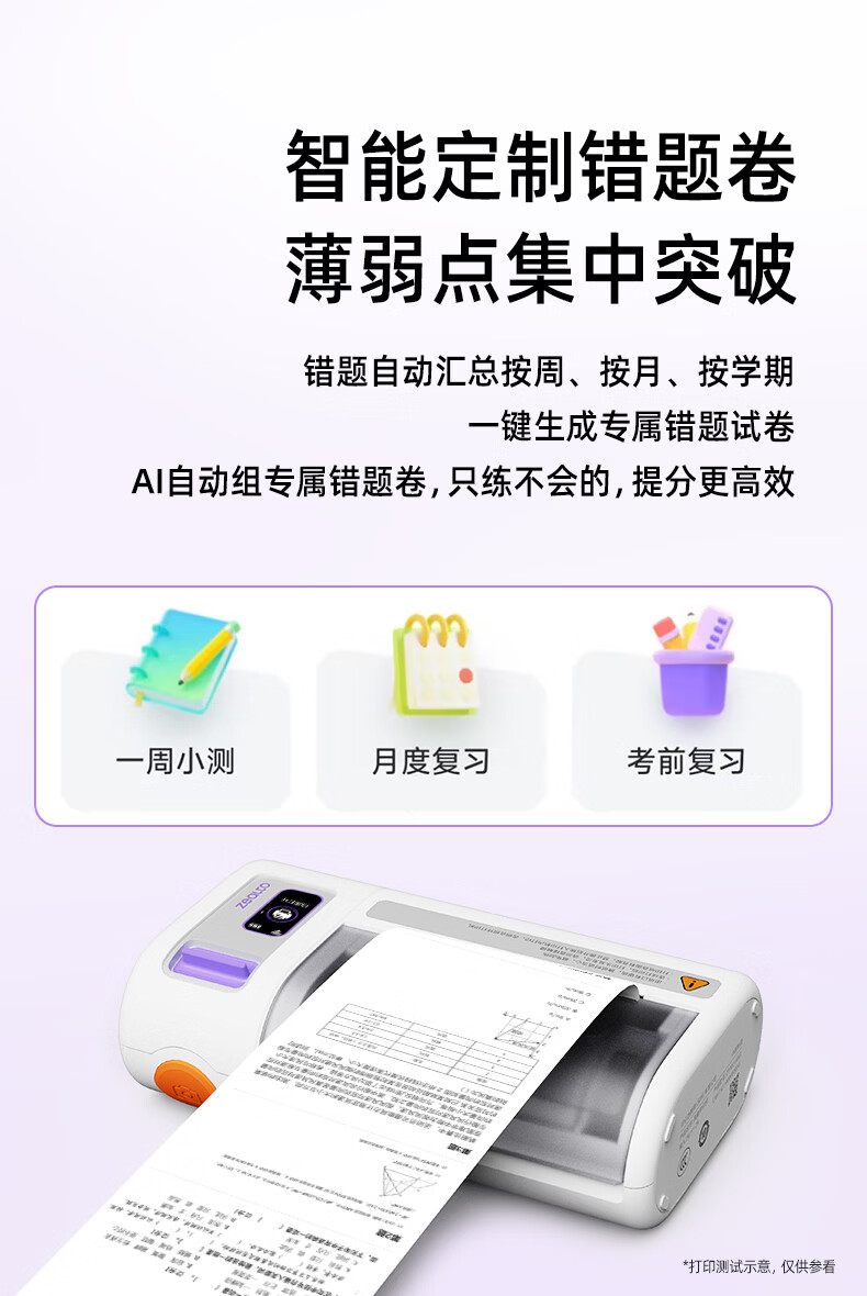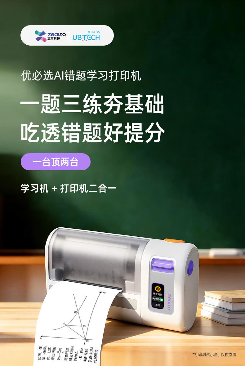优必选(UBTECH)真童AI错题机打印机小初高中校园便携式无墨热敏即拍即打家用去除字迹学生学习整理神器拍印机 AI错题打印机