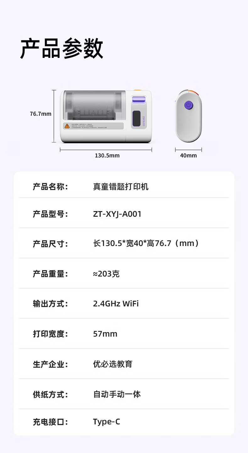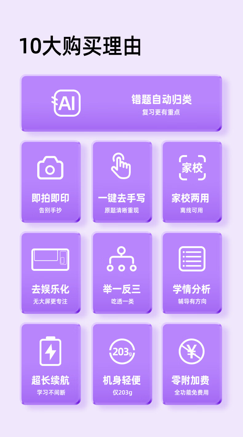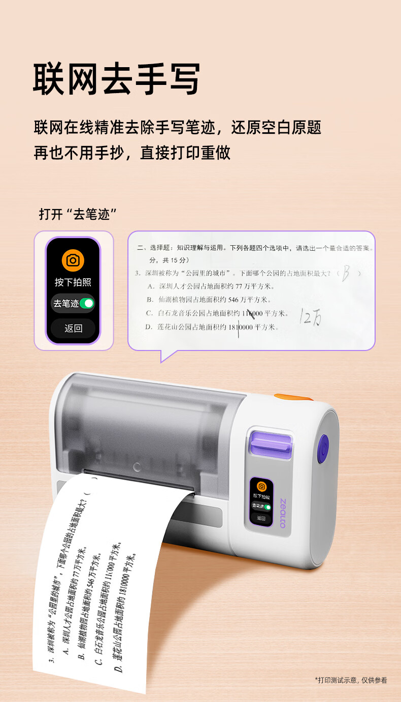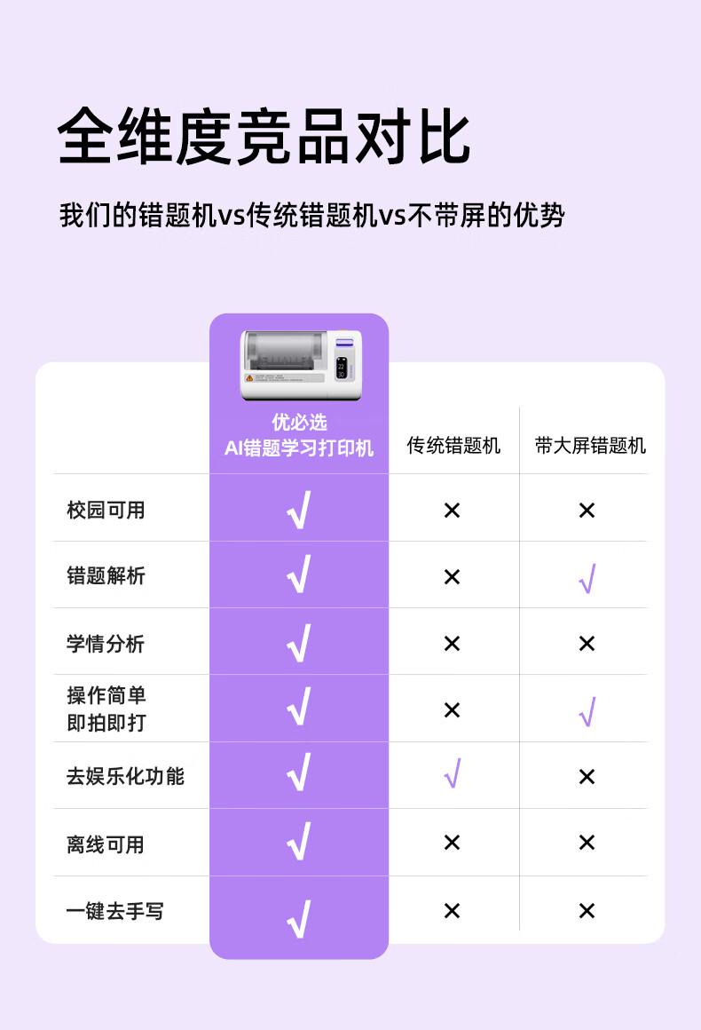 优必选(UBTECH)真童AI错题机打印机小初高中校园便携式无墨热敏即拍即打家用去除字迹学生学习整理神器拍印机 AI错题打印机