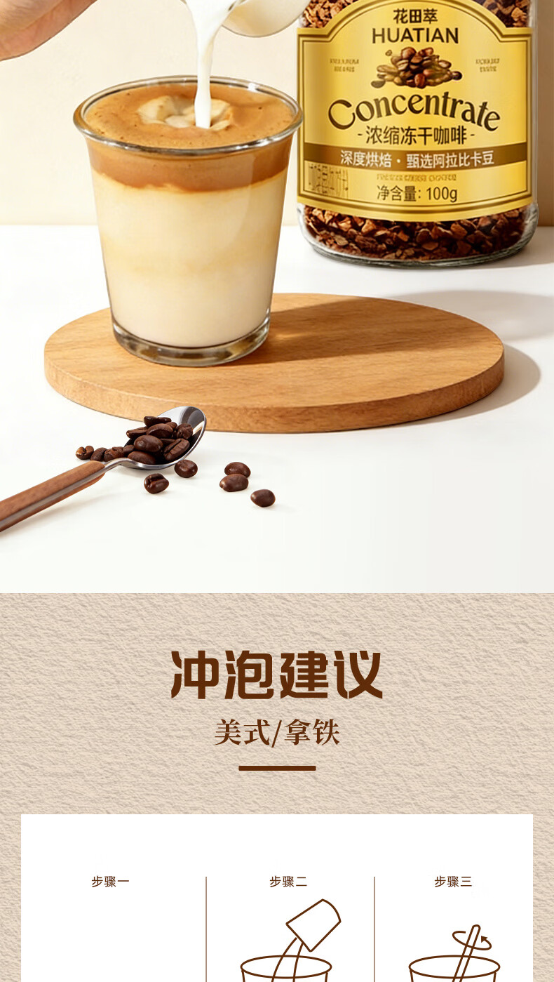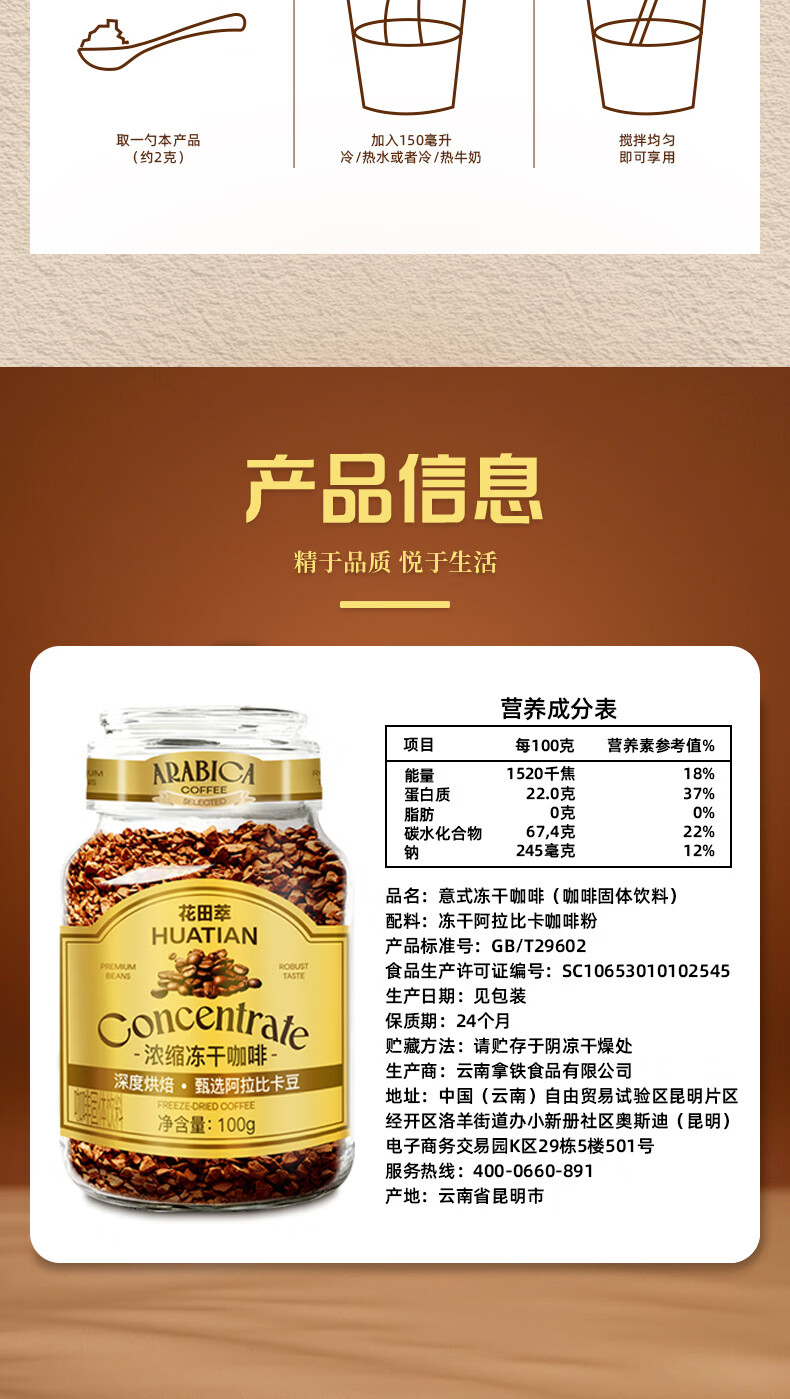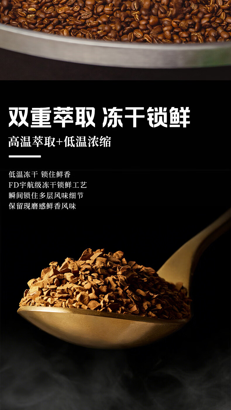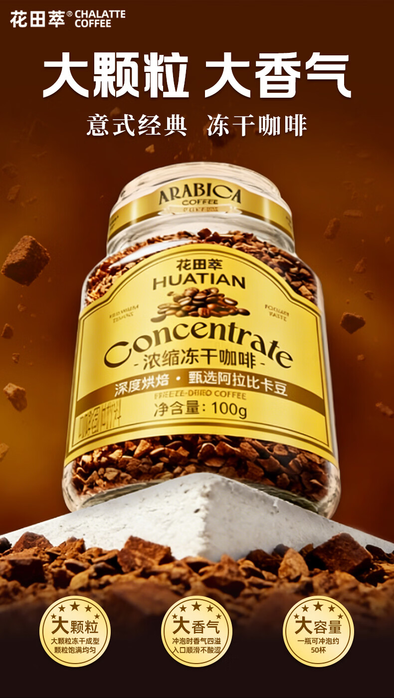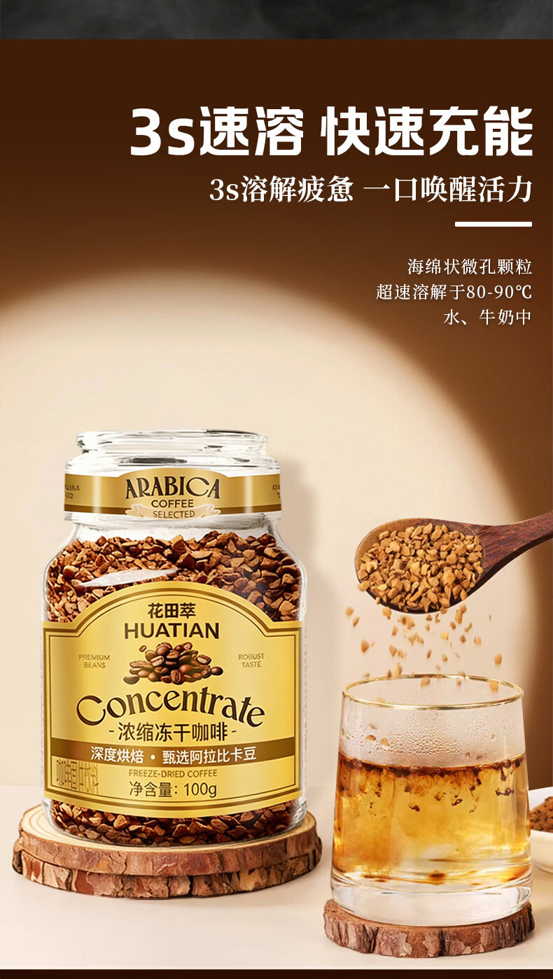 花田萃冻干黑咖啡瓶装0蔗糖燃减0脂浓缩美式纯苦速溶黑咖啡粉到27年12月 冻干黑咖啡100g*2瓶+试饮2条*2g