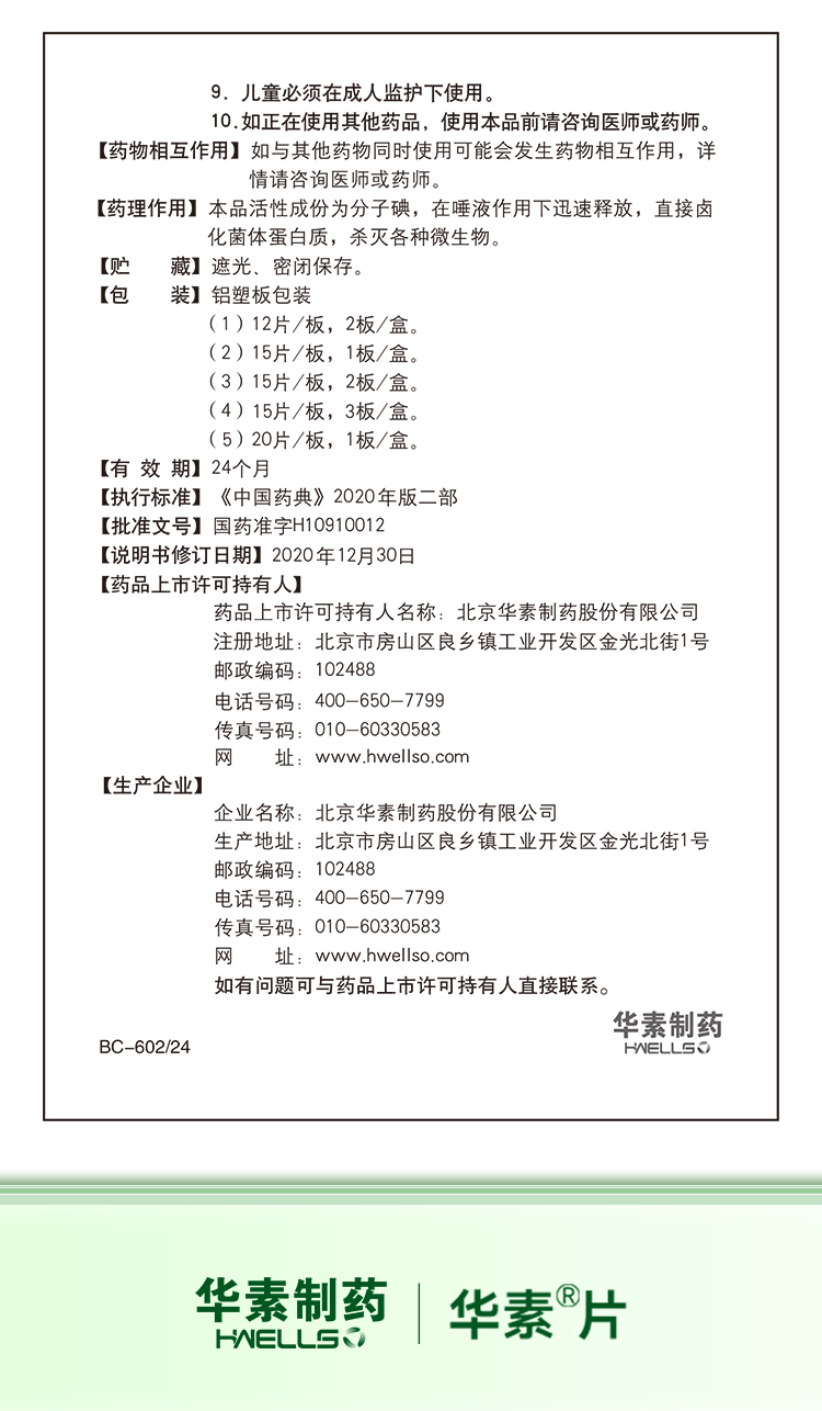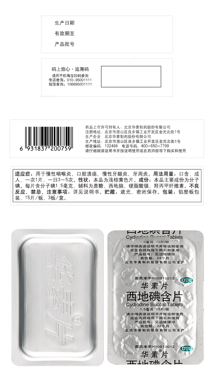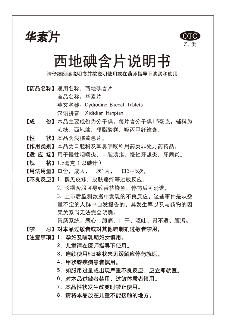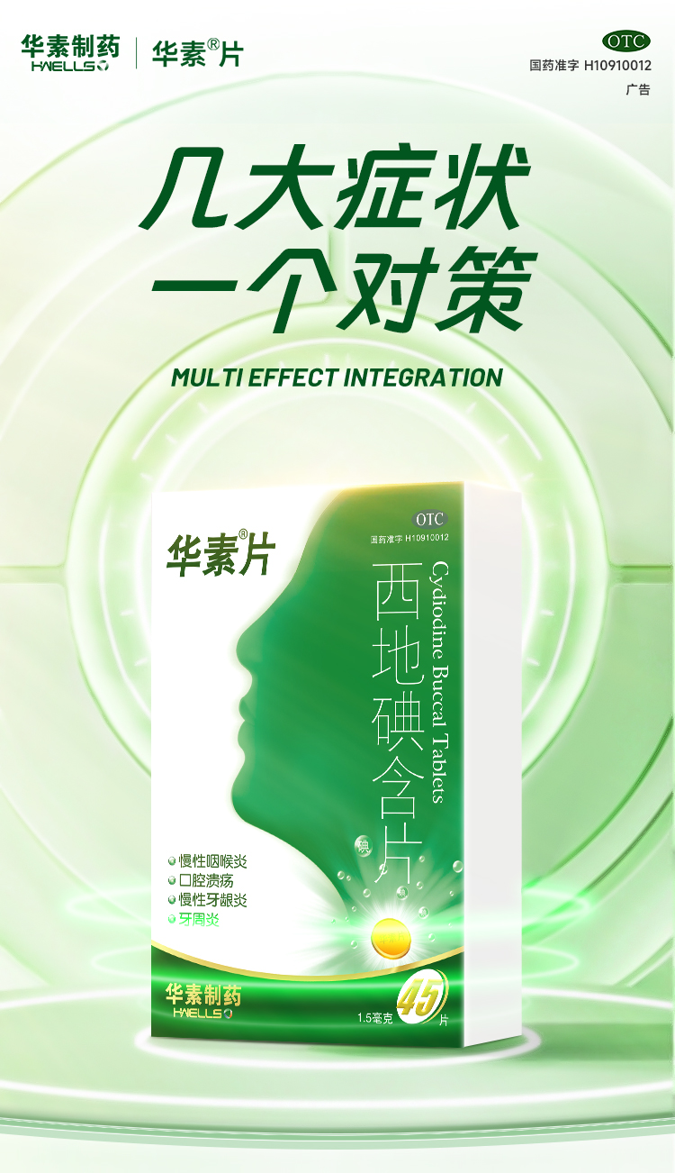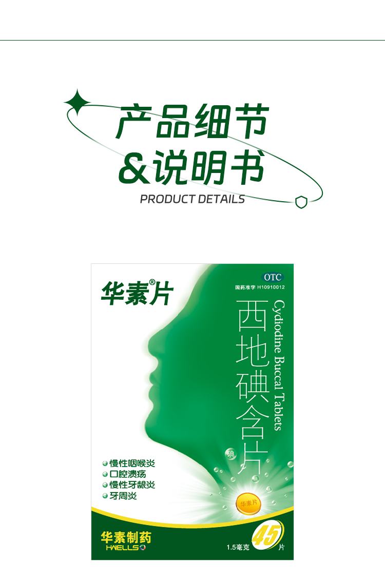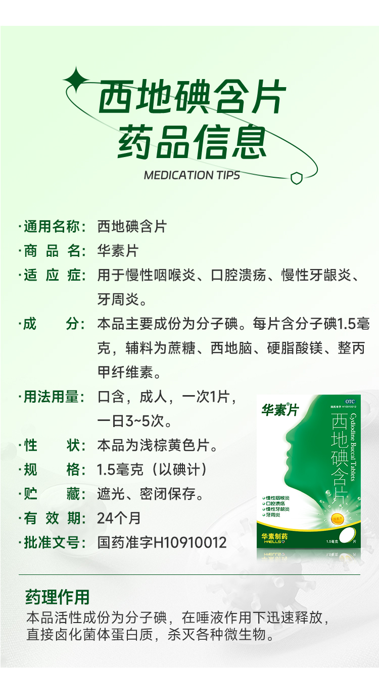 华素西地碘含片1.5mg*45片华素片慢性咽喉炎口腔溃疡慢性牙龈炎牙周炎