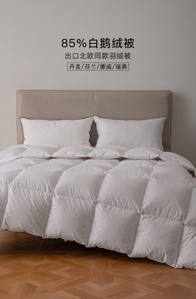 霞珍羽绒被85%白鹅绒被芯 60支全棉防绒保暖鹅绒被子 加厚冬被-60支全棉防钻绒 200cm*230cm