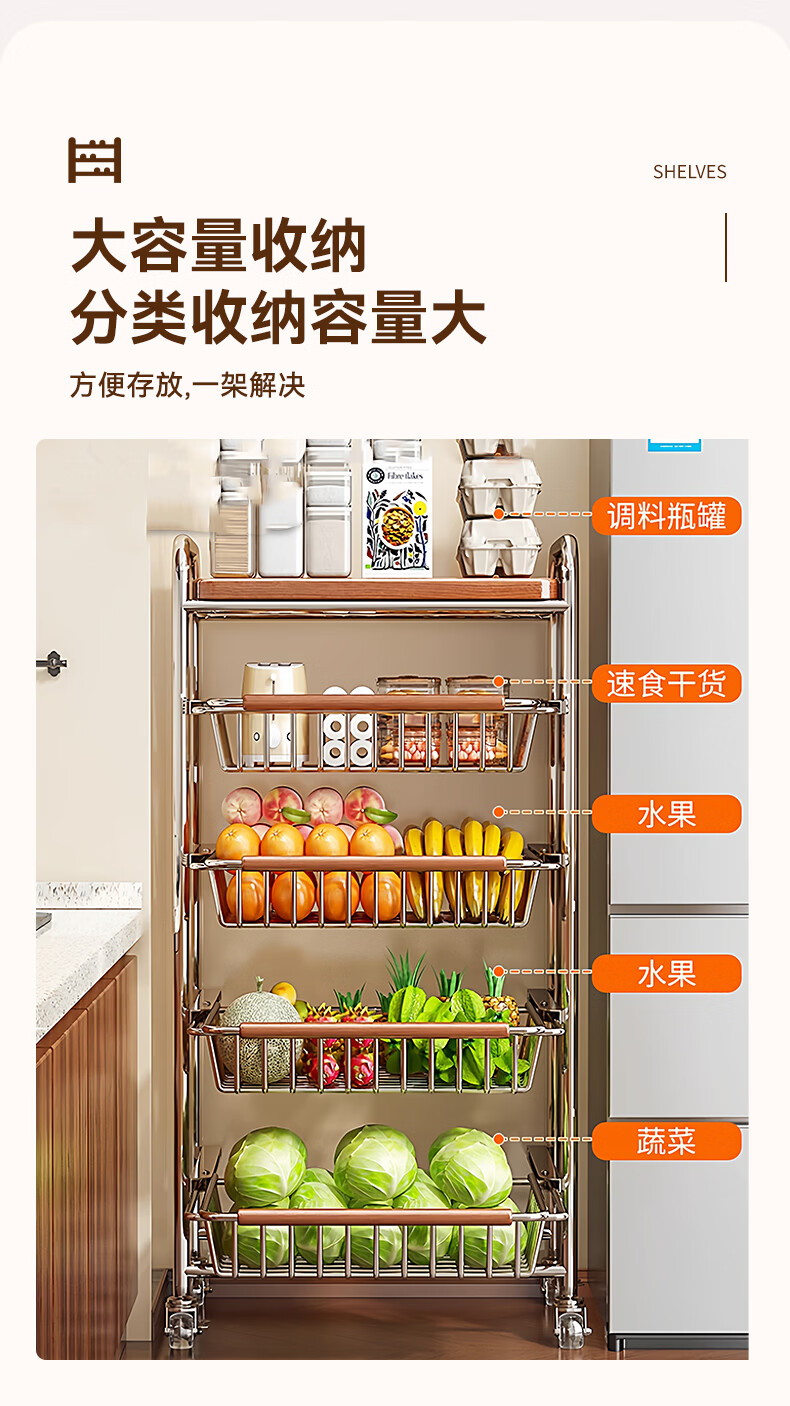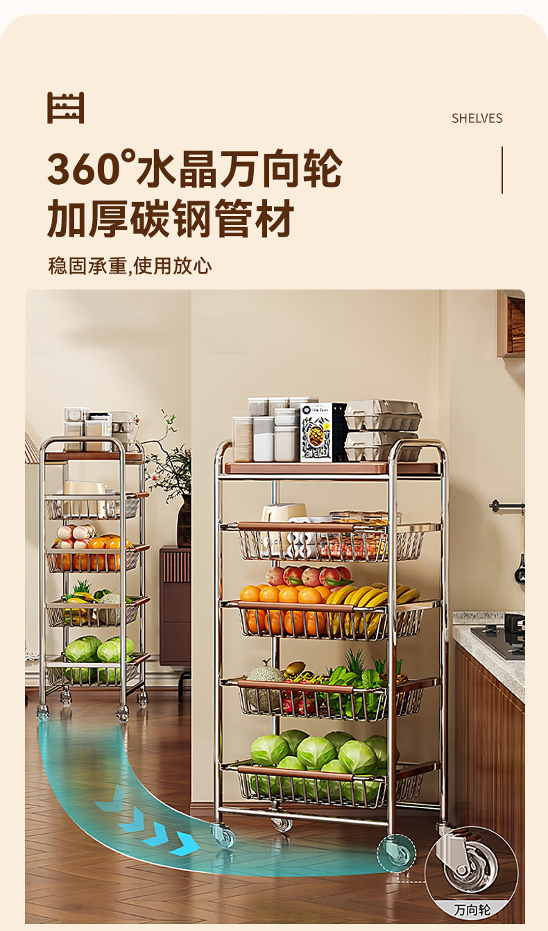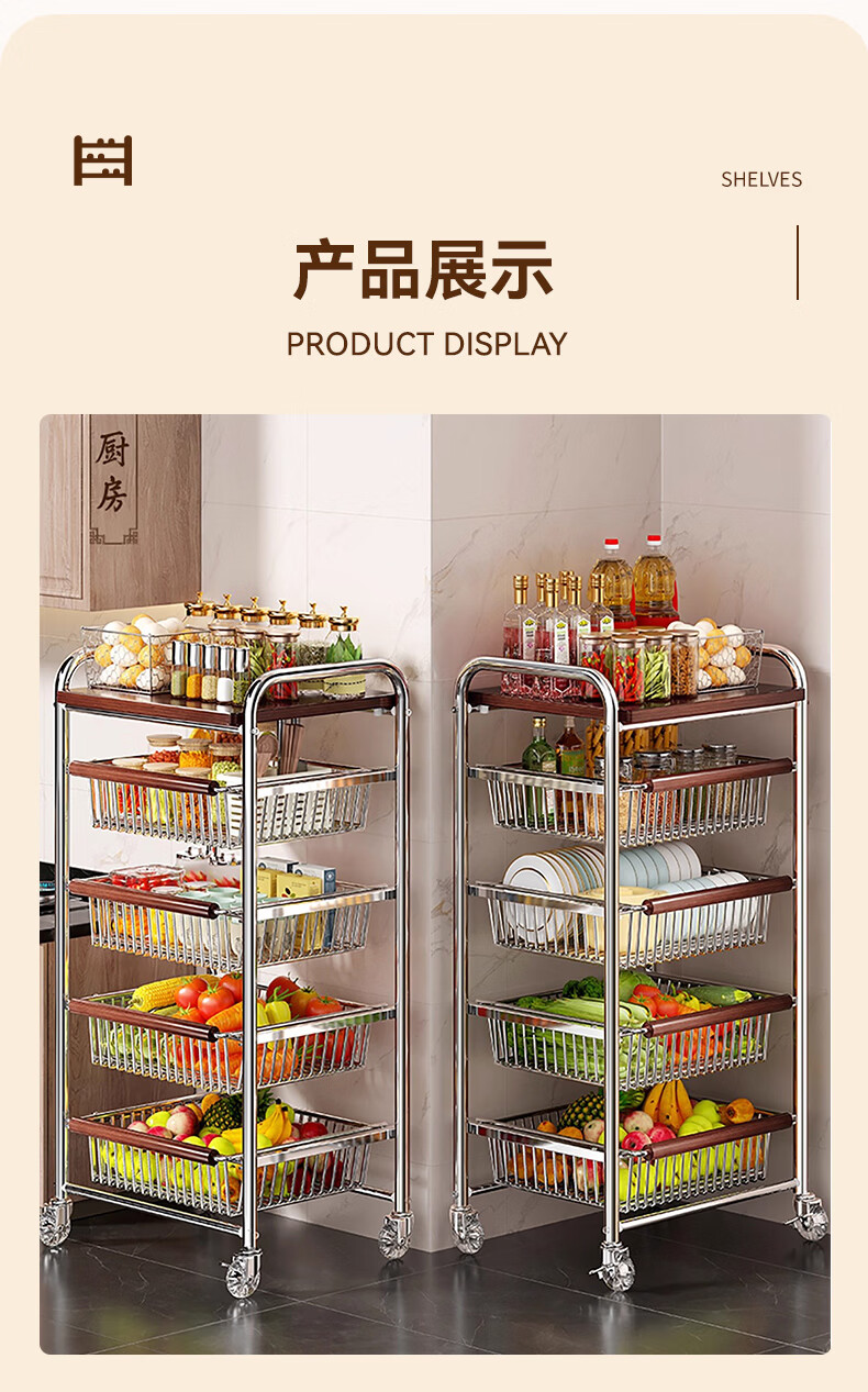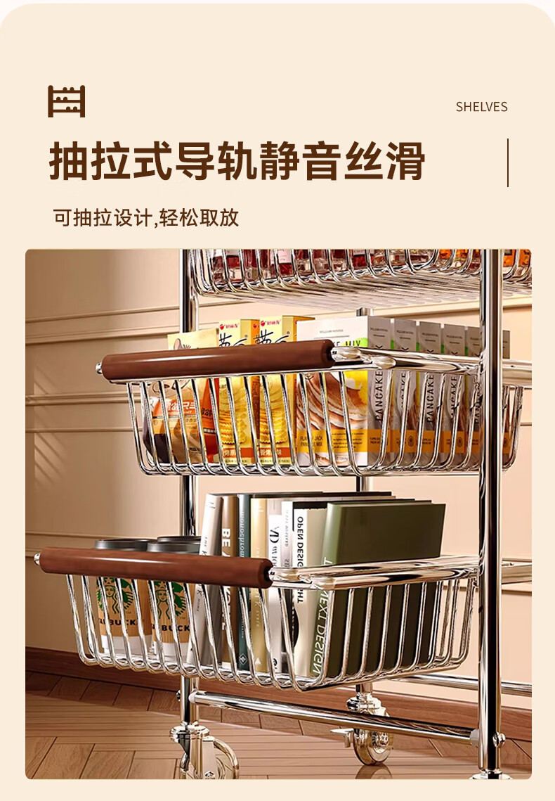 叩素中古风零食置物架多功能夹缝小推车多层果蔬厨房菜篮可移动收纳架 中古风零食置物架 五层四抽 水晶轮