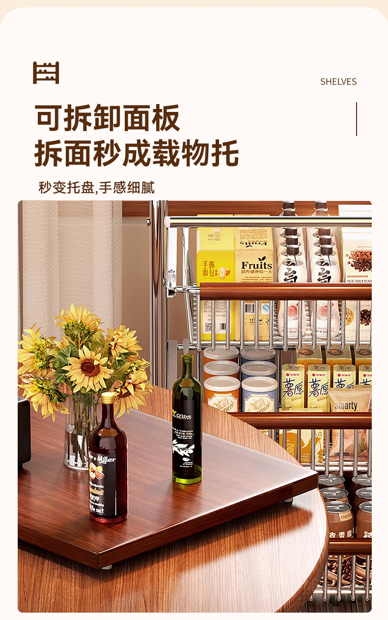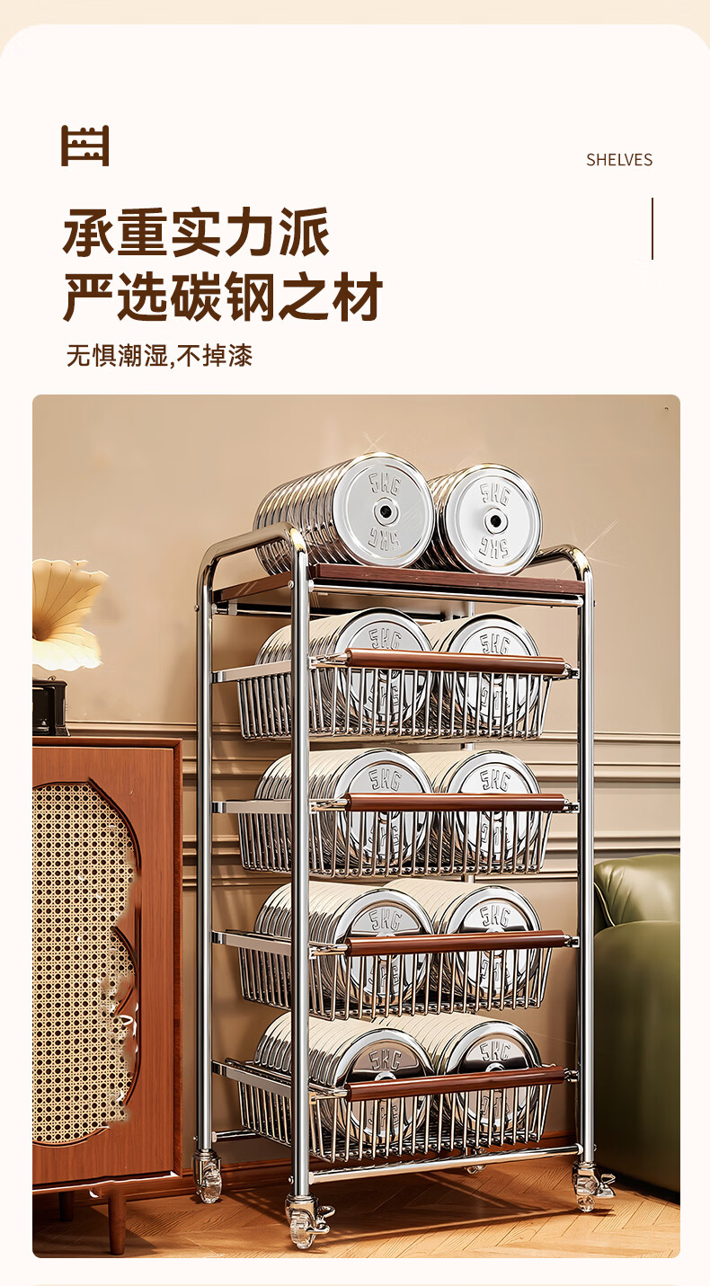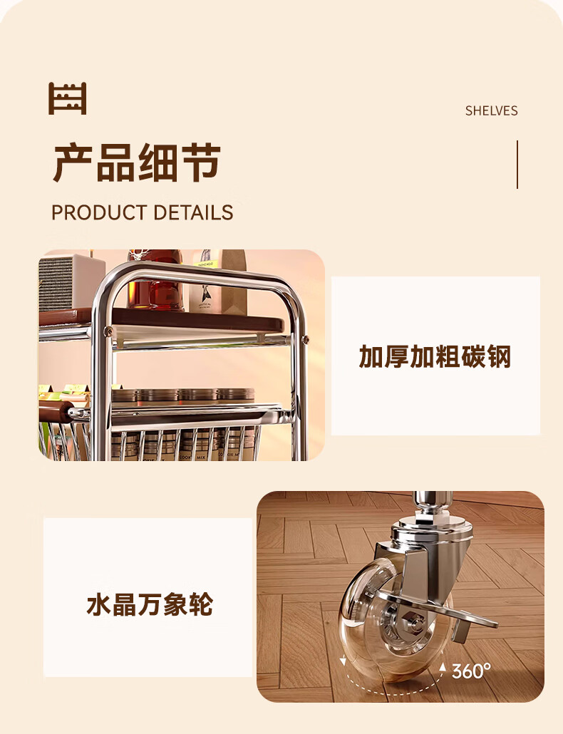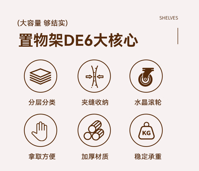 叩素中古风零食置物架多功能夹缝小推车多层果蔬厨房菜篮可移动收纳架 中古风零食置物架 五层四抽 水晶轮