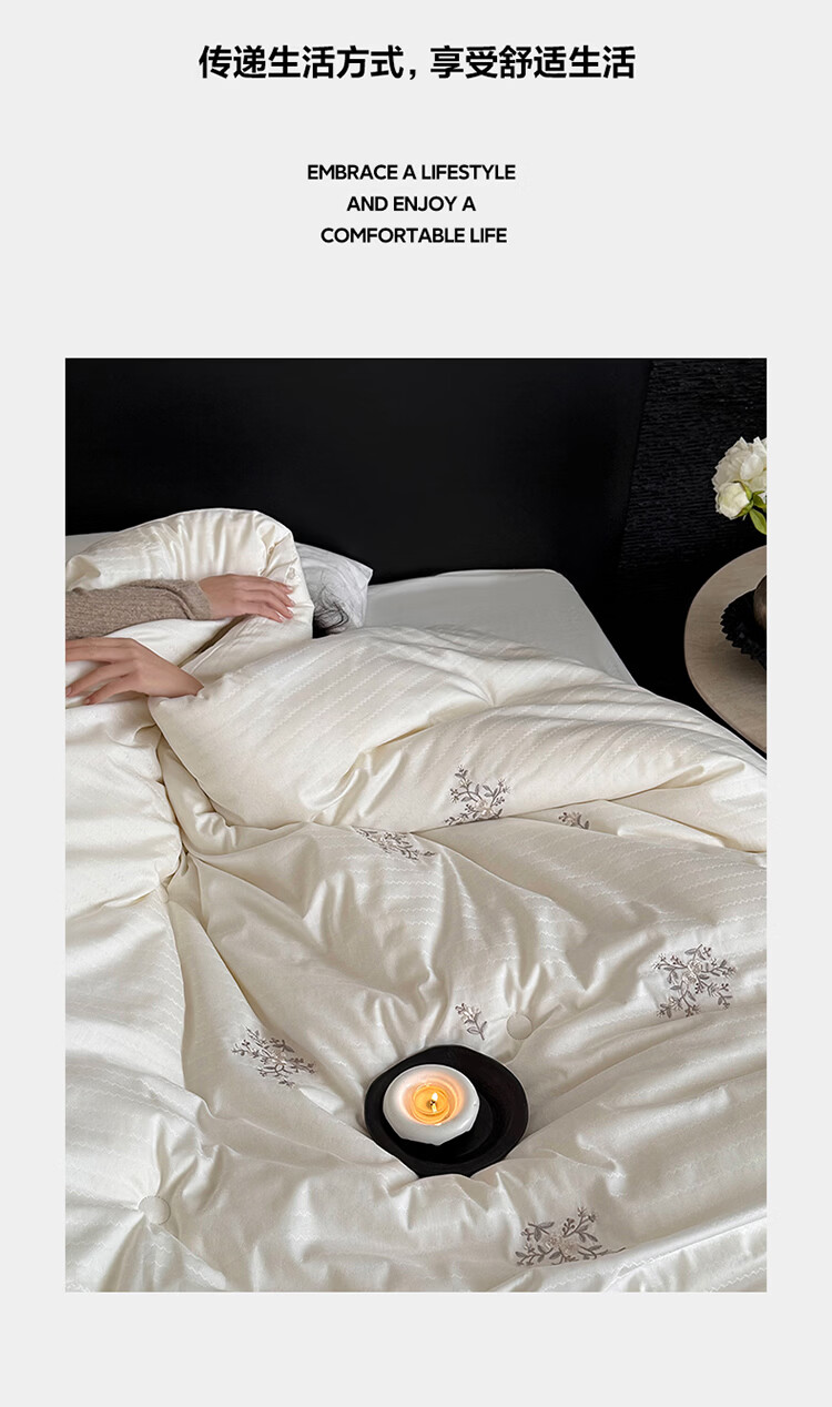 ROLAND LIVE全棉提花刺绣大豆被 春秋被单双人夏被 家用冬季保暖冬被柔软被子 LB 全棉提花55%大豆被-春花盏 夏被150cm*200cm【约2.1斤】