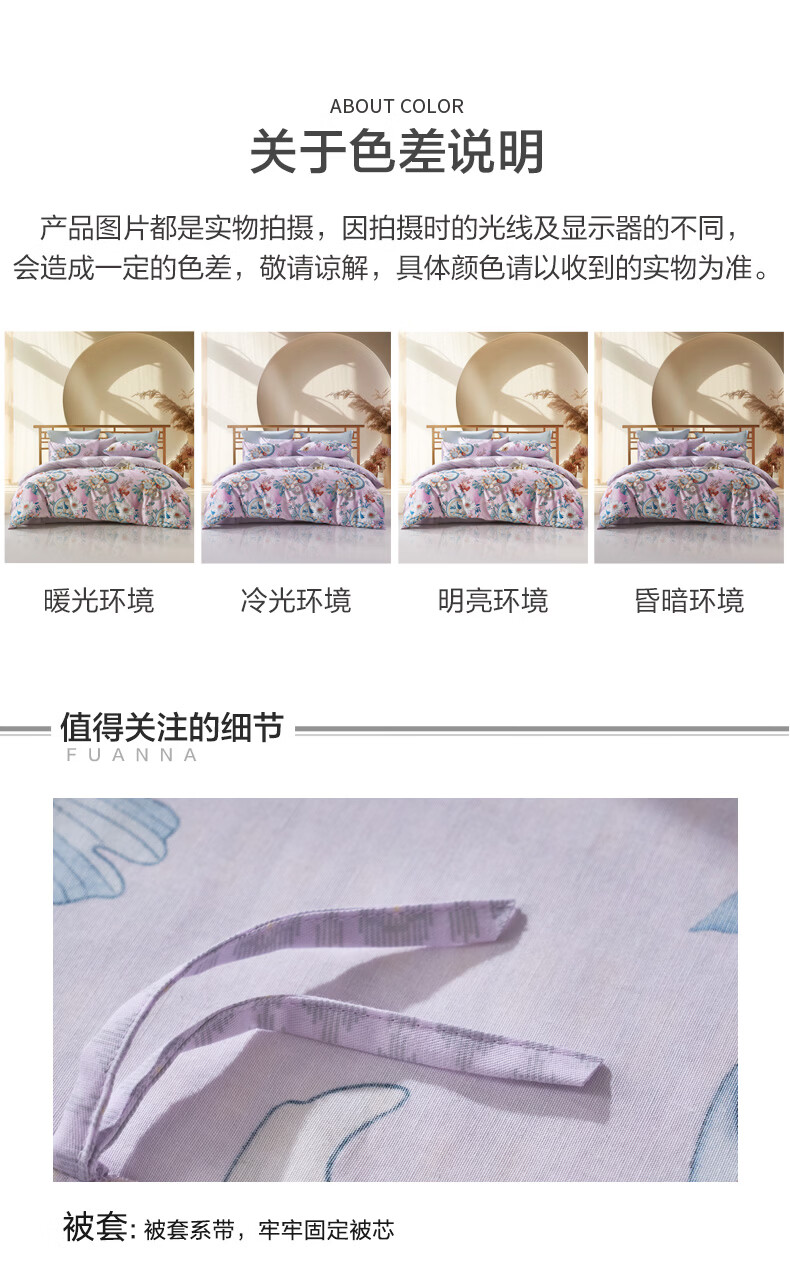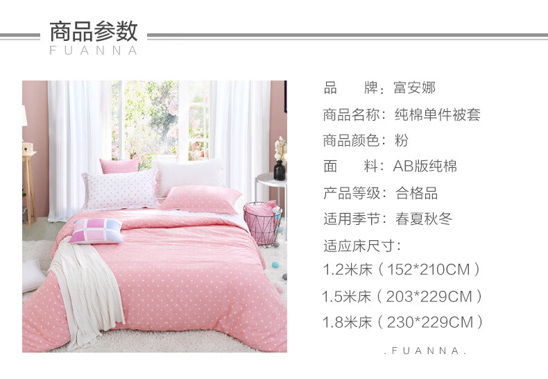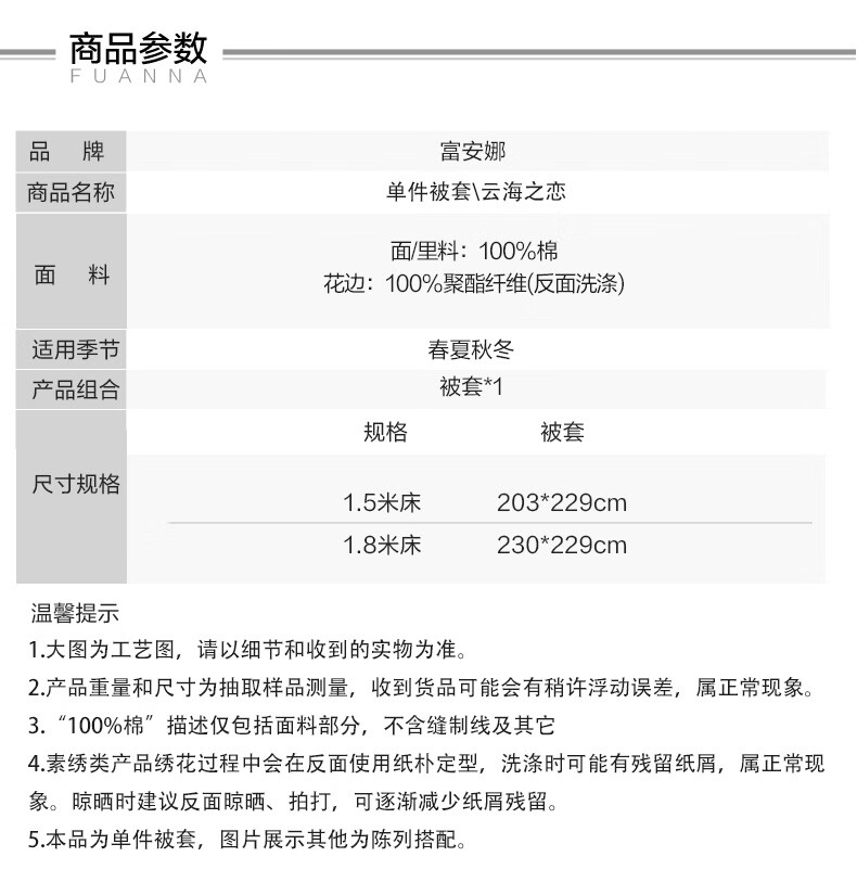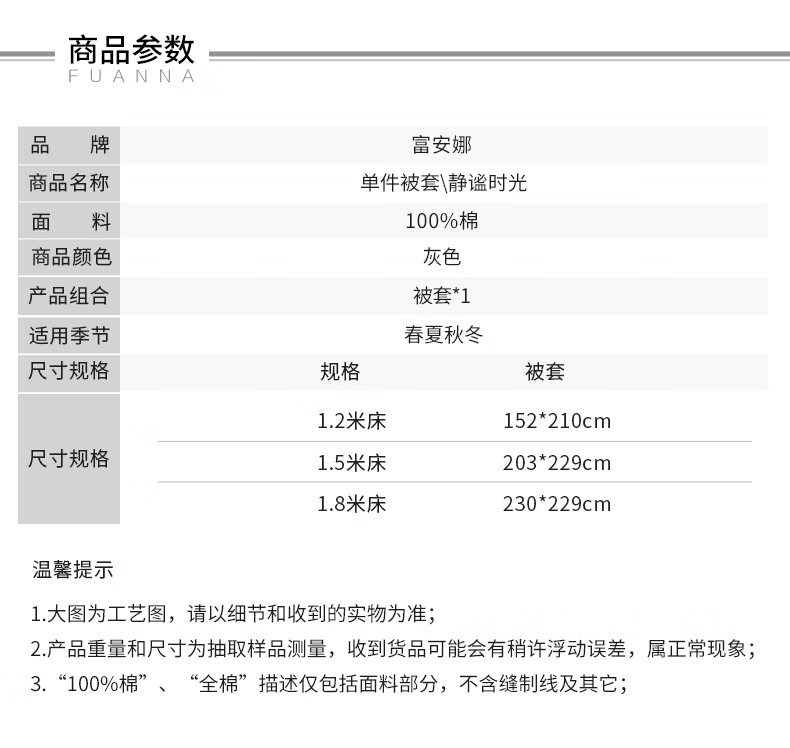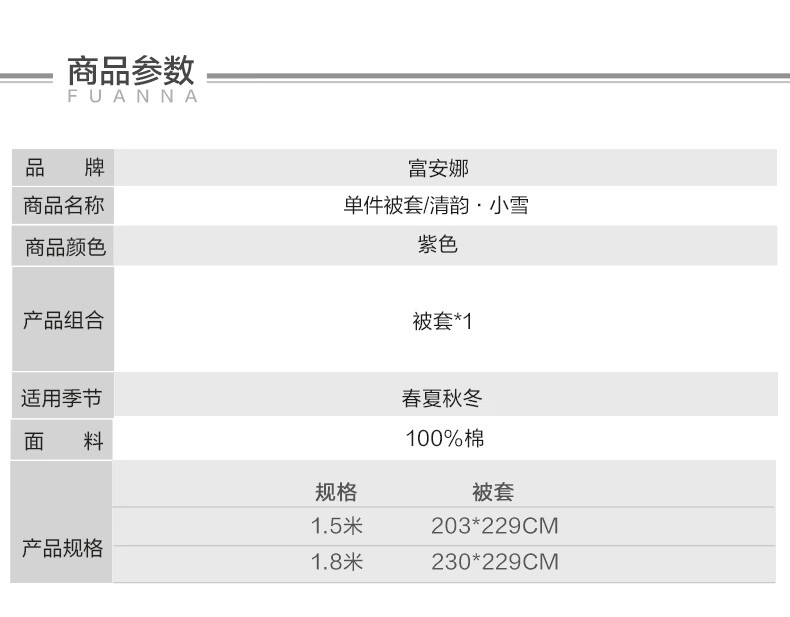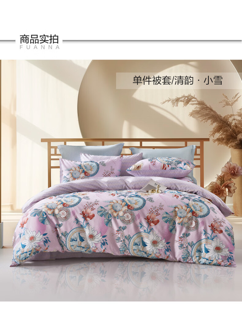 富安娜被套 100%纯棉印花高支高密单件被子罩 全棉单双人单件被套 【纯棉印花】清韵 1.8米床(230x229cm)