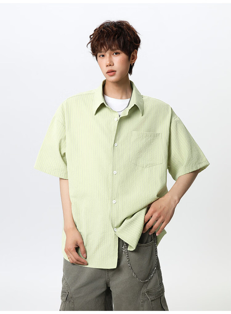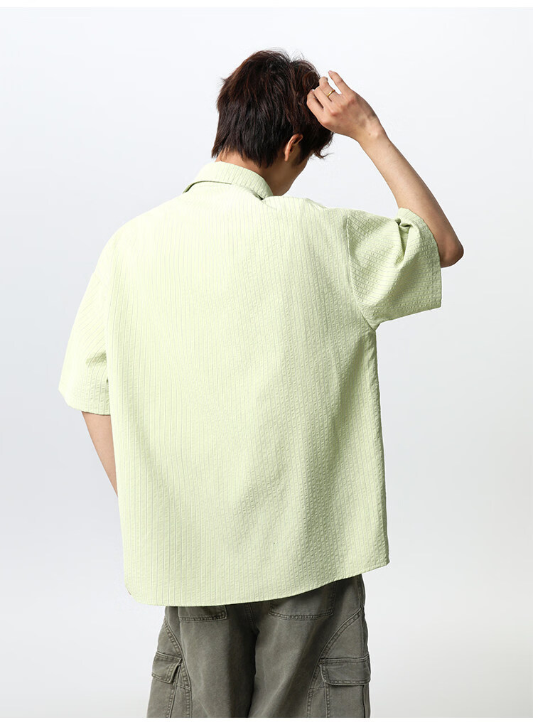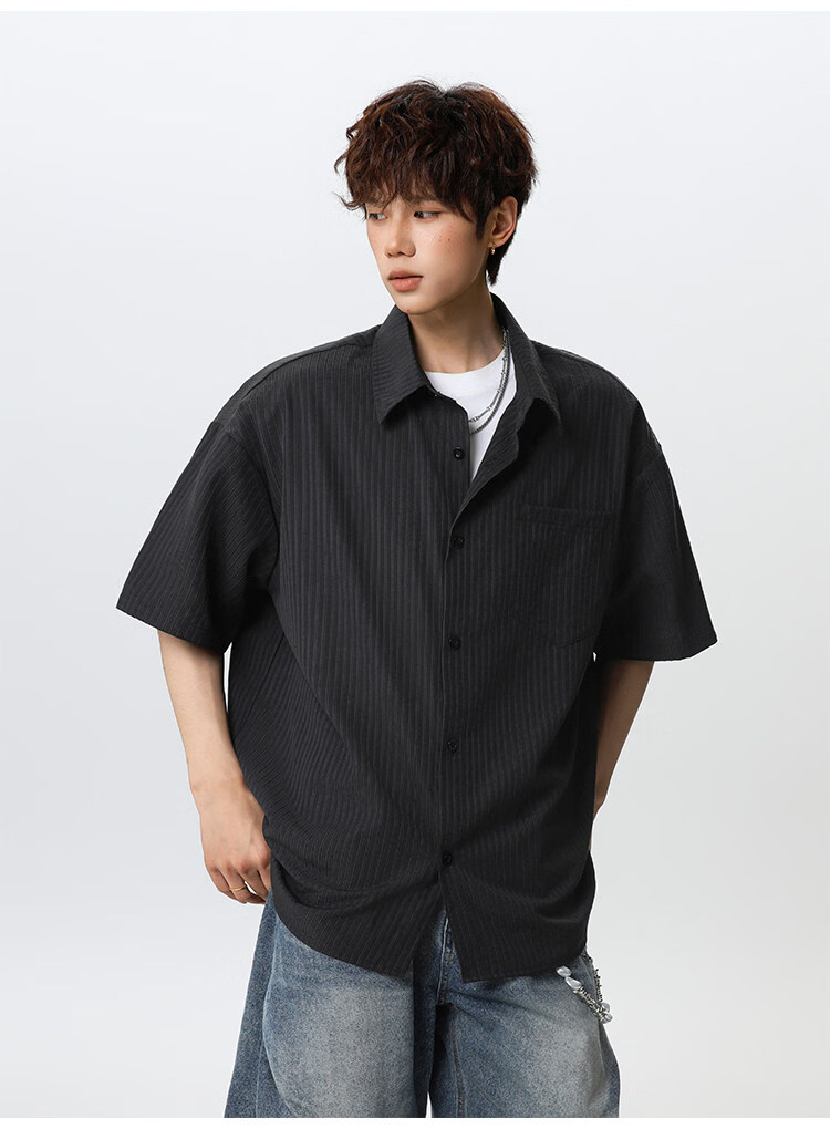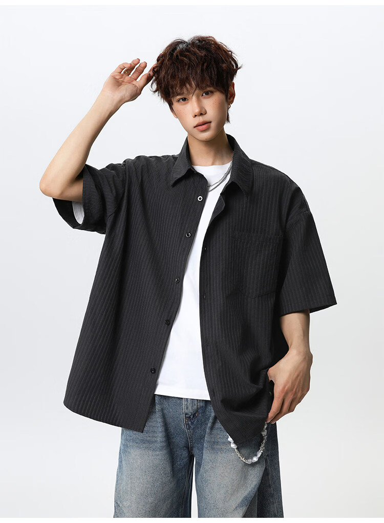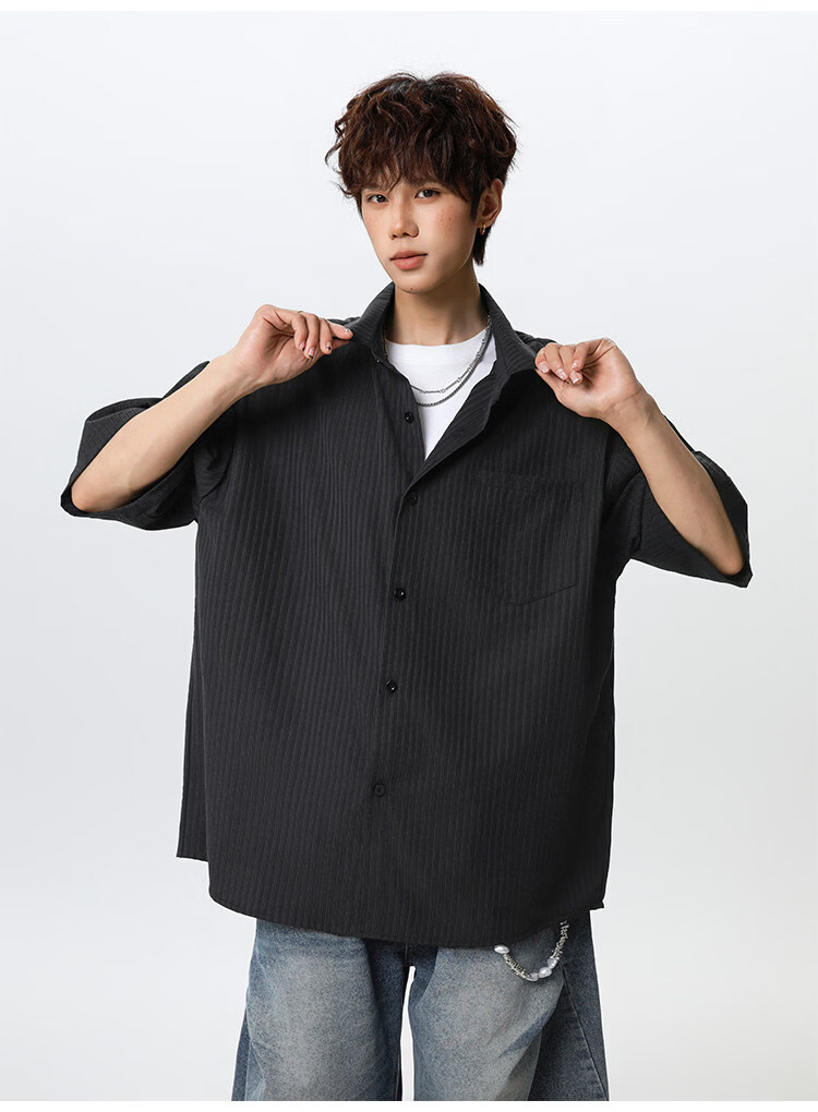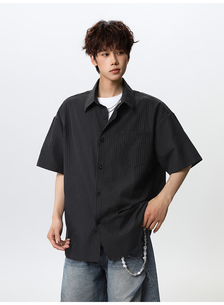 NEW OR MODE复古条纹肌理感短袖衬衫男夏季新款潮牌宽松百搭休闲慵懒衬衣外套 白色【高品质】 M 【建议90-110斤】