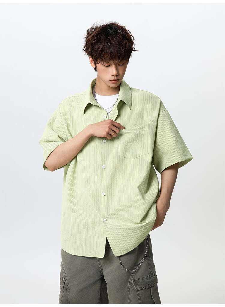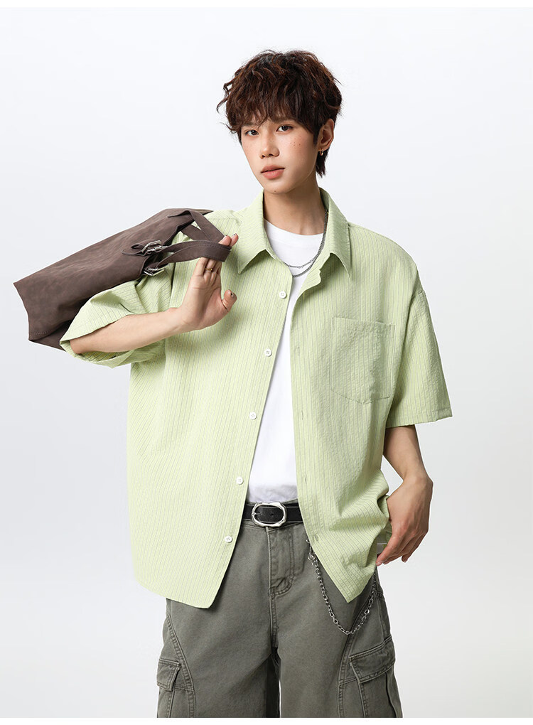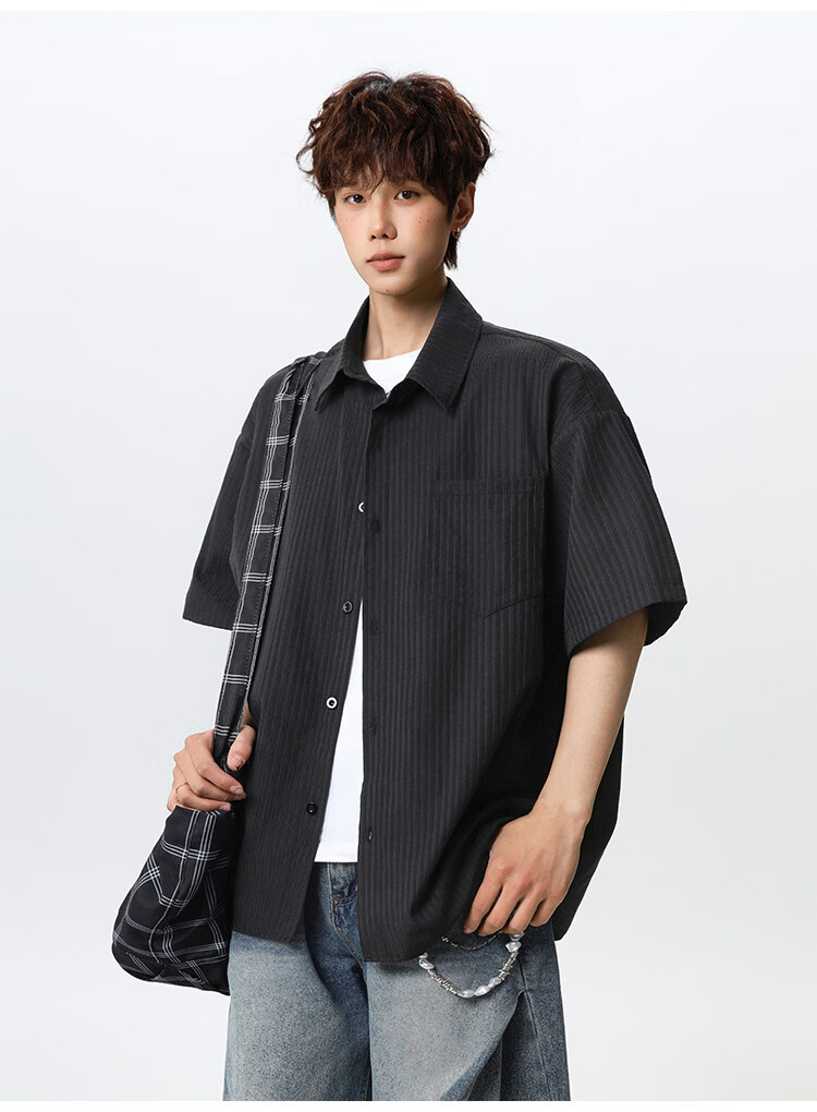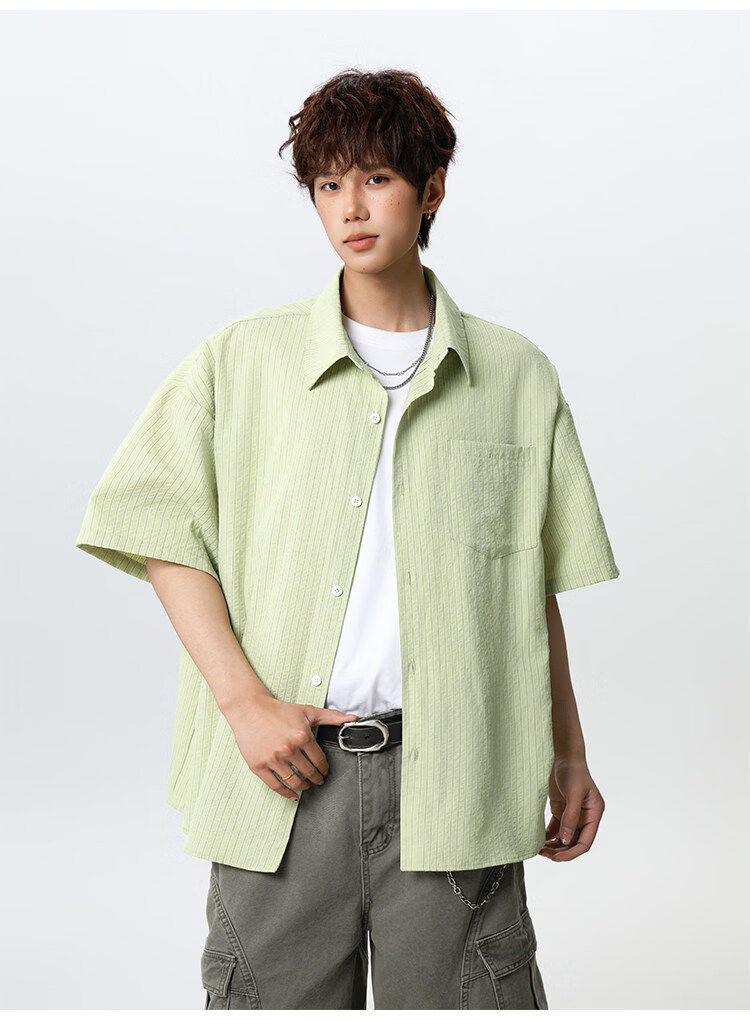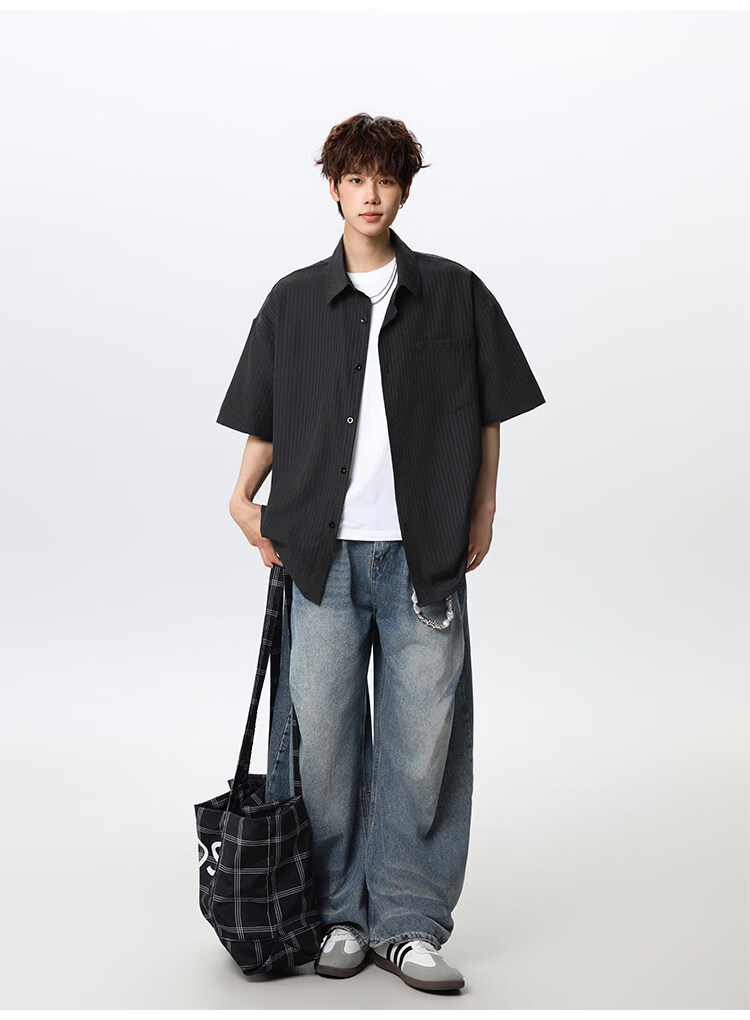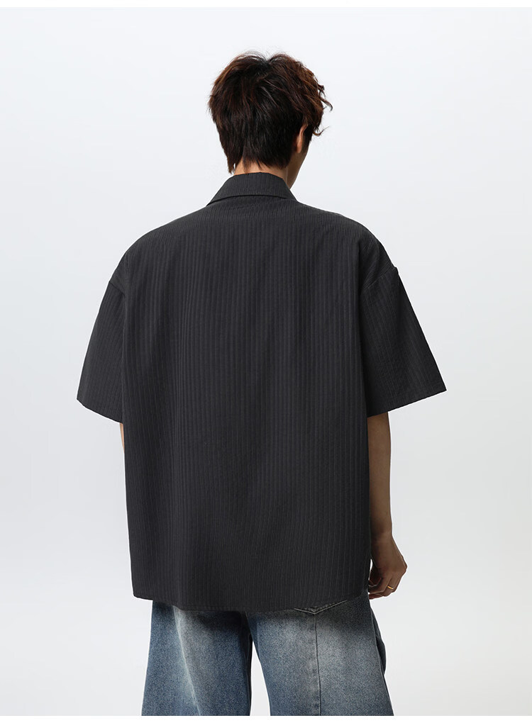 NEW OR MODE复古条纹肌理感短袖衬衫男夏季新款潮牌宽松百搭休闲慵懒衬衣外套 白色【高品质】 M 【建议90-110斤】