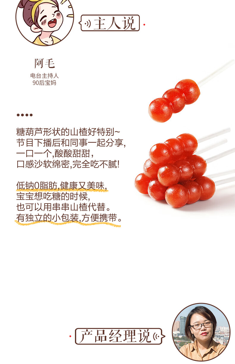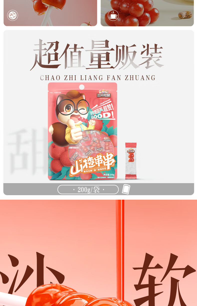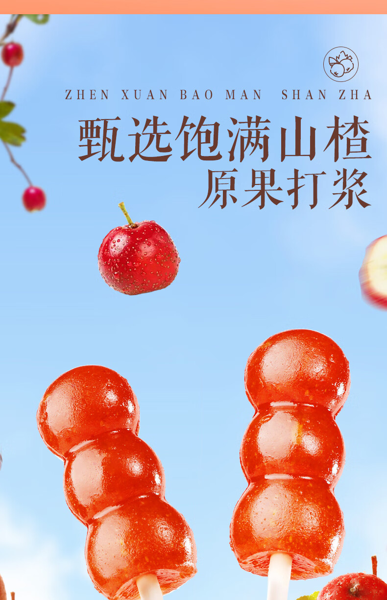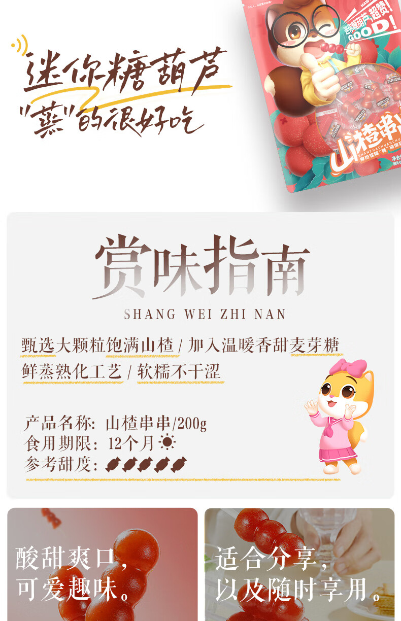 三只松鼠山楂串串200g 棒棒糖无添加儿童零食糖葫芦山楂糕串串蜜饯果脯