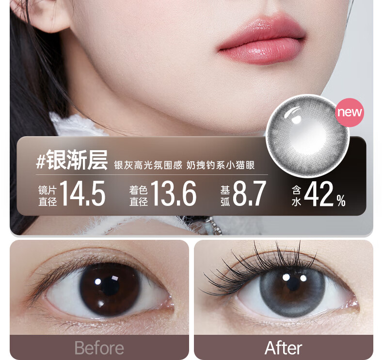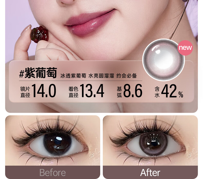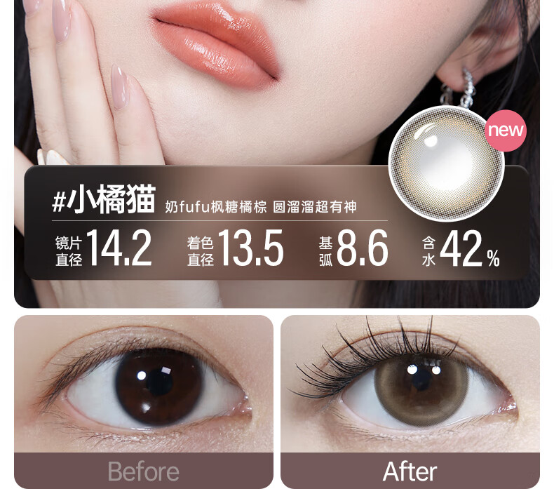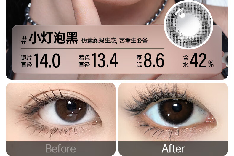 可啦啦精选美瞳日抛大小直径自然试用近视隐形眼镜2片装荔枝茶冻灰0度