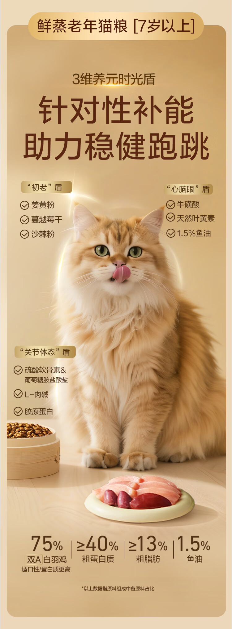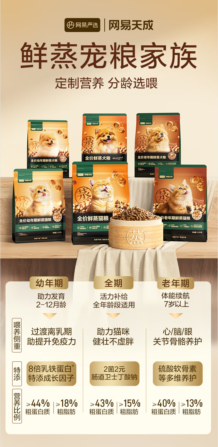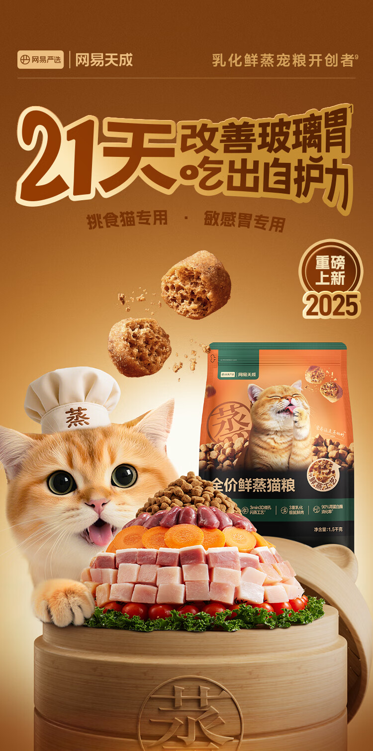 网易严选全价鲜蒸老年猫粮高鲜肉酥脆乳化易消化护关节护肠胃7岁以上1.5kg