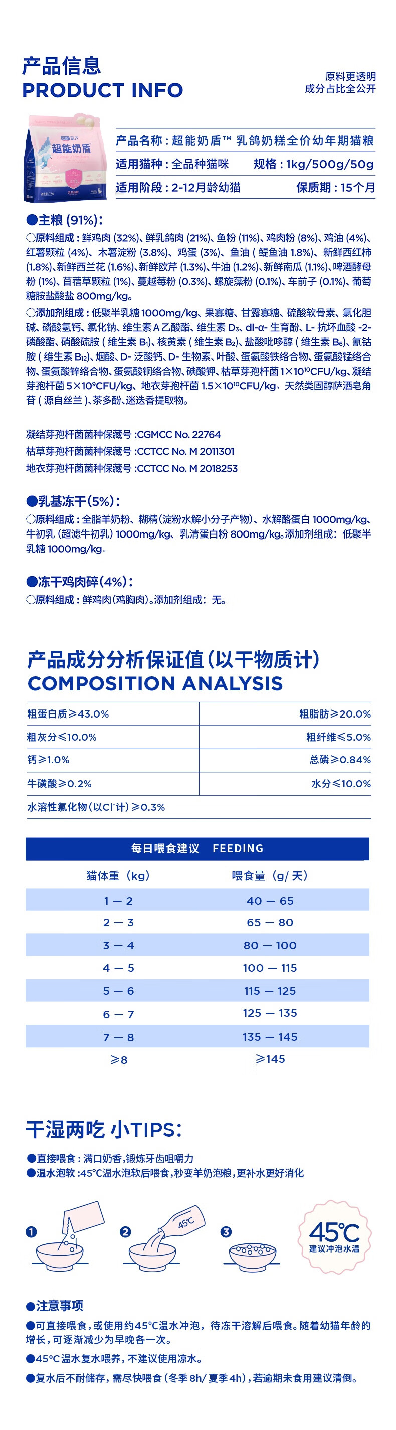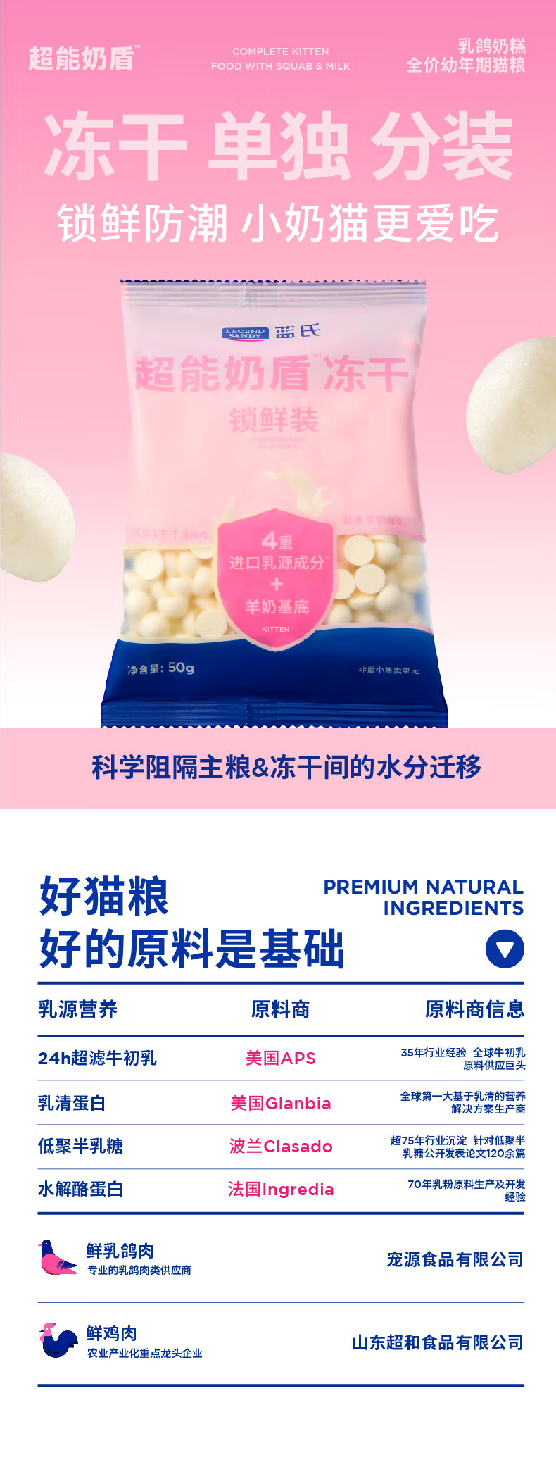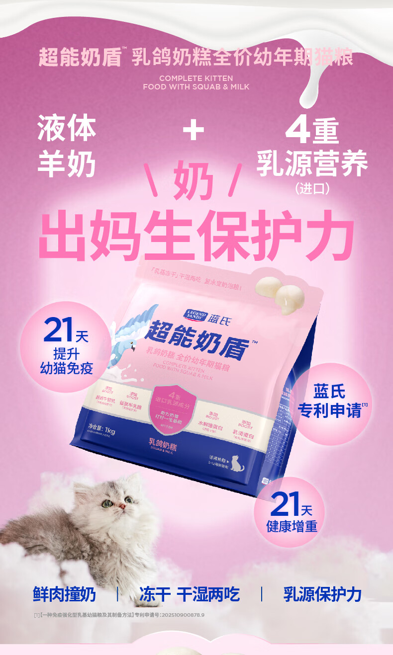 LEGENDSANDY 蓝氏超能奶盾乳鸽奶糕幼猫全价幼猫粮鲜肉冻干奶猫干湿两吃1kg