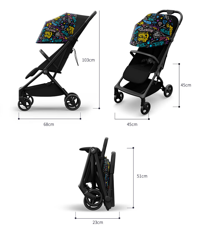 虎贝尔(HBR)婴儿推车轻便折叠可坐可躺登机宝宝口袋车伞车S1pro自动收车 涂鸦