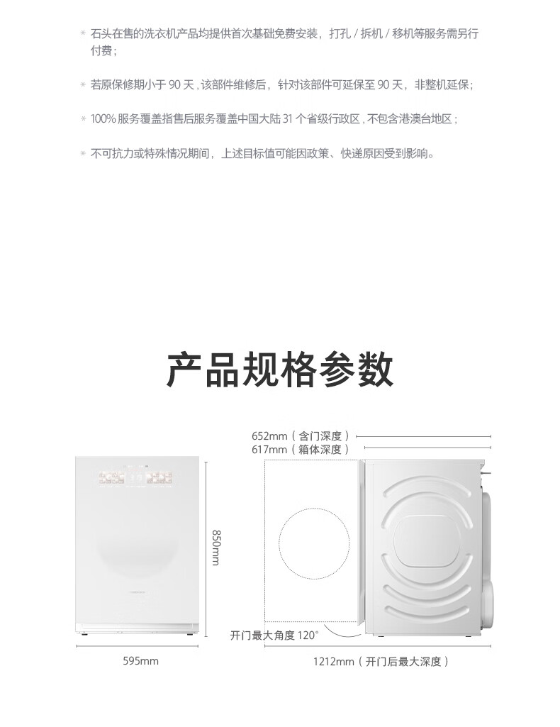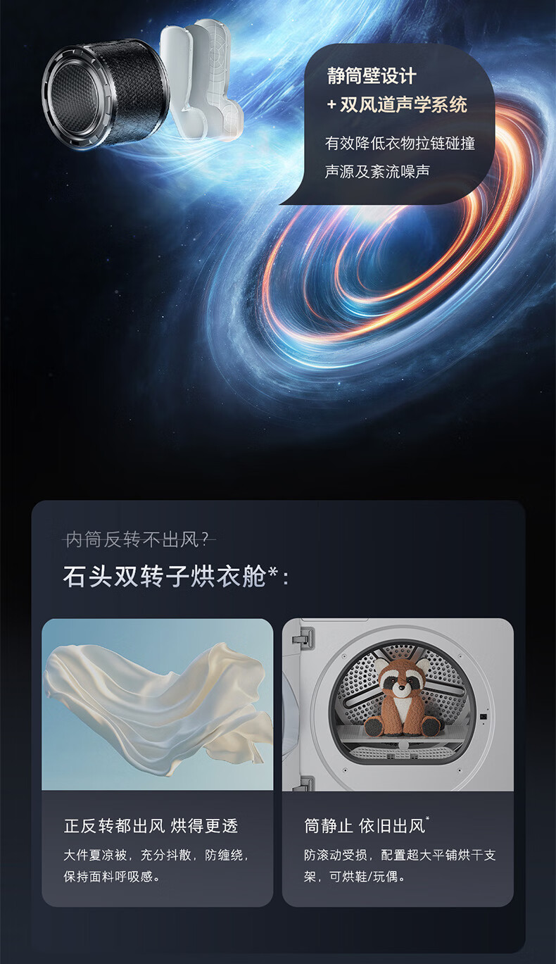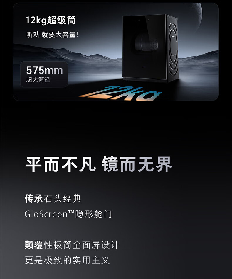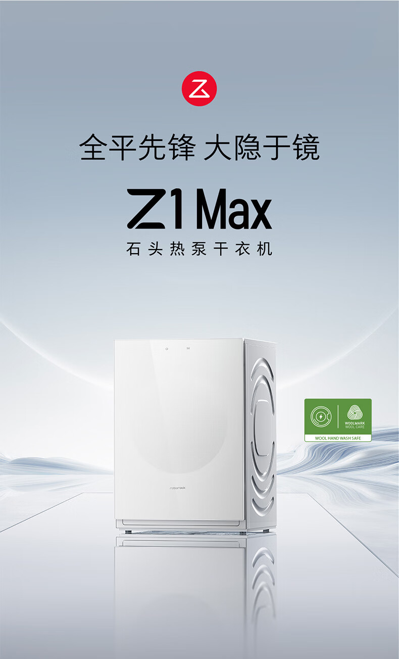 石头热泵干衣机 Z1 Max 12kg大容量烘干机 超擎三变频 更快更省更轻柔 月镜白 DRC120RRF33