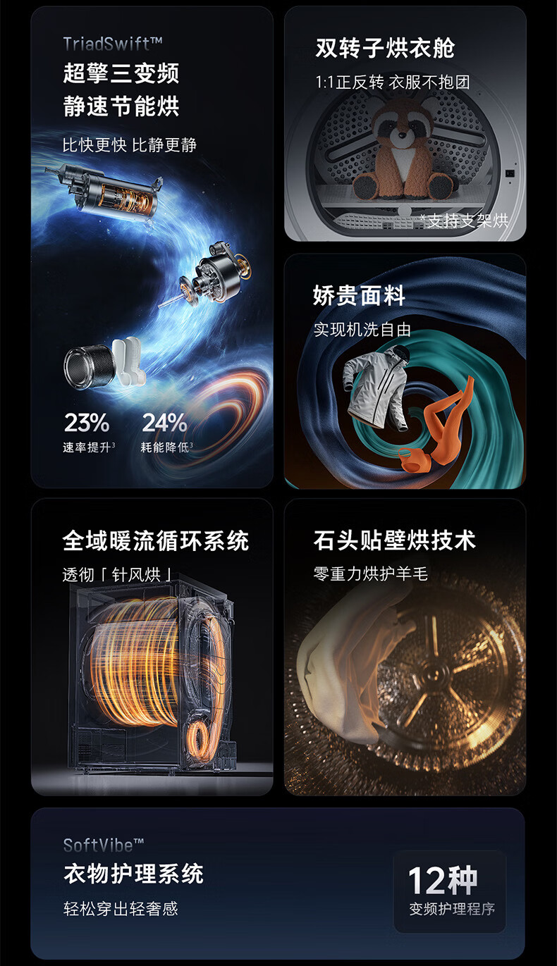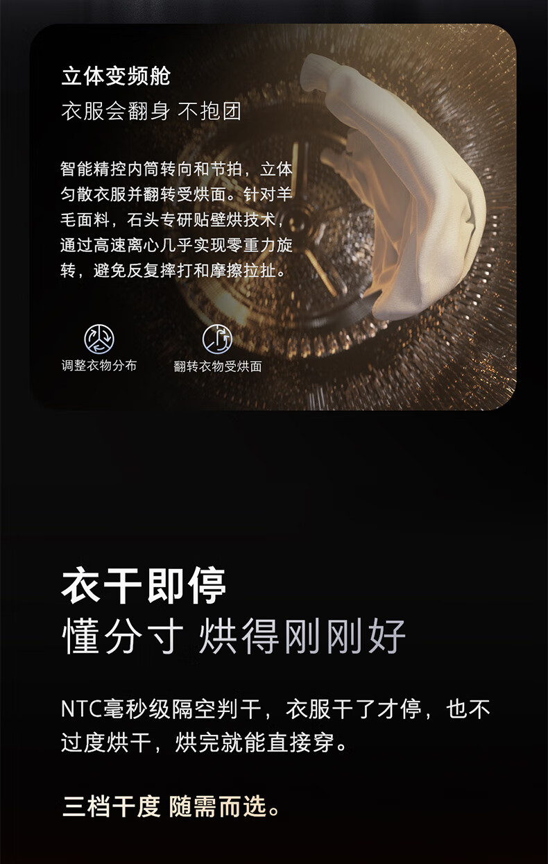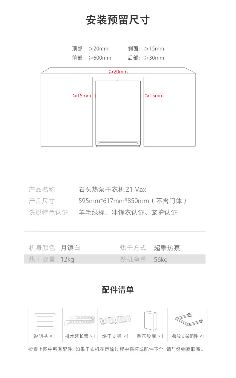 石头热泵干衣机 Z1 Max 12kg大容量烘干机 超擎三变频 更快更省更轻柔 月镜白 DRC120RRF33