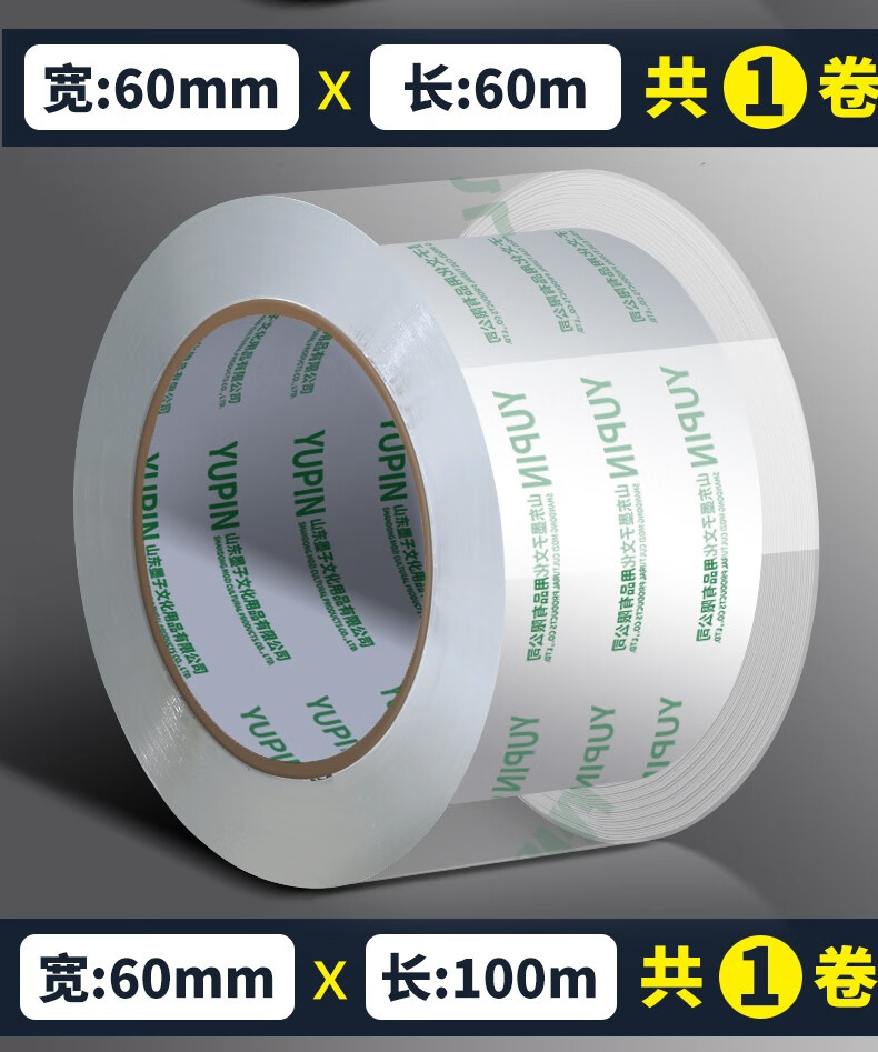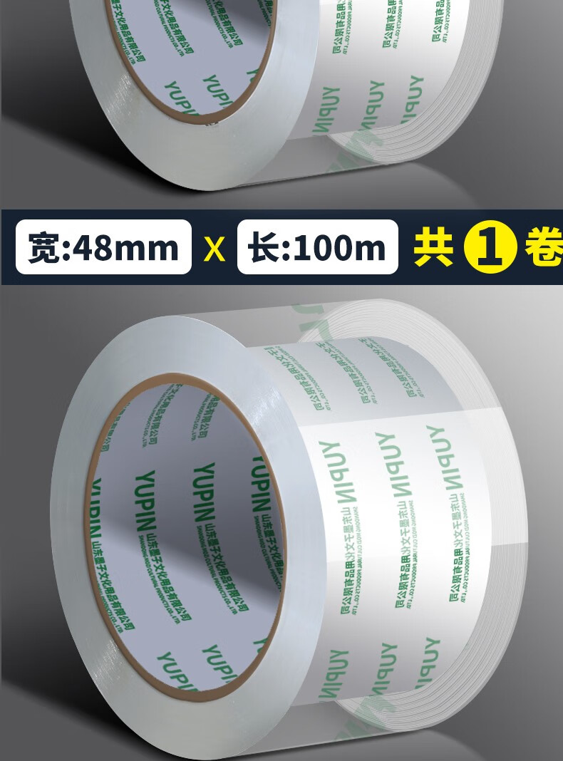 誉品高品质透明胶带大号宽胶布打包胶带强力高粘度快递工厂仓库用透明封箱胶带封口胶纸办公用品 【超透款】宽48mm*长100米-单卷