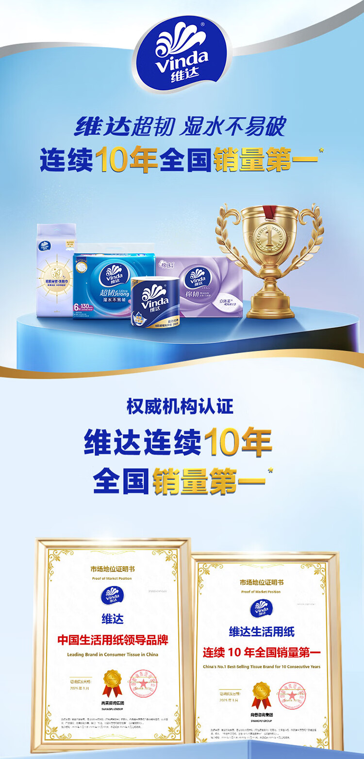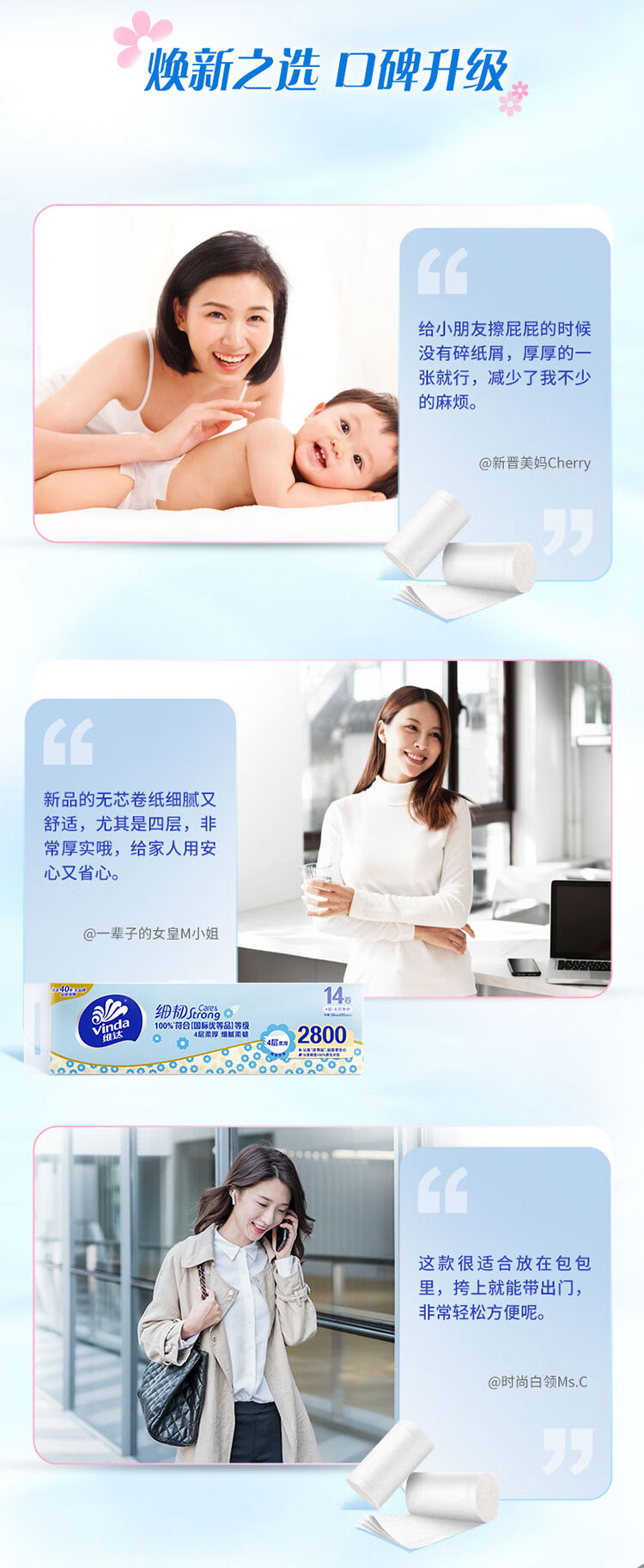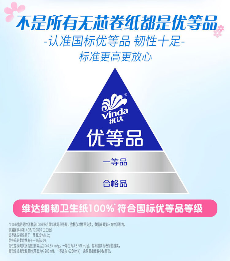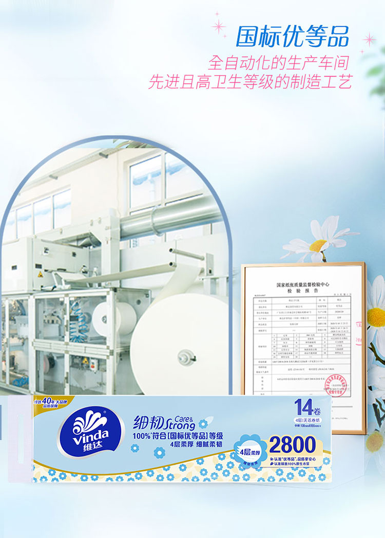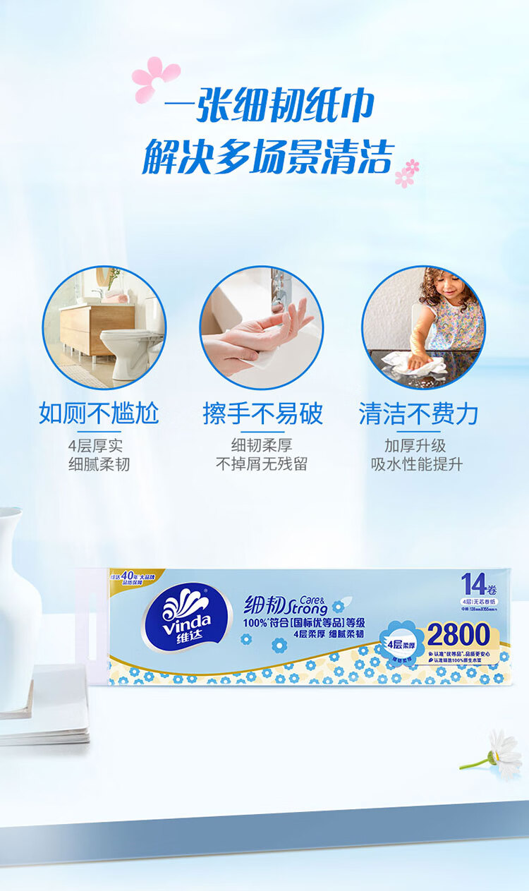 维达(Vinda)无芯卷纸 细韧4层200克*14卷 高克重加厚 大分量纸巾卫生纸卷筒纸