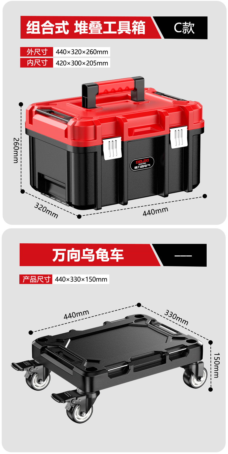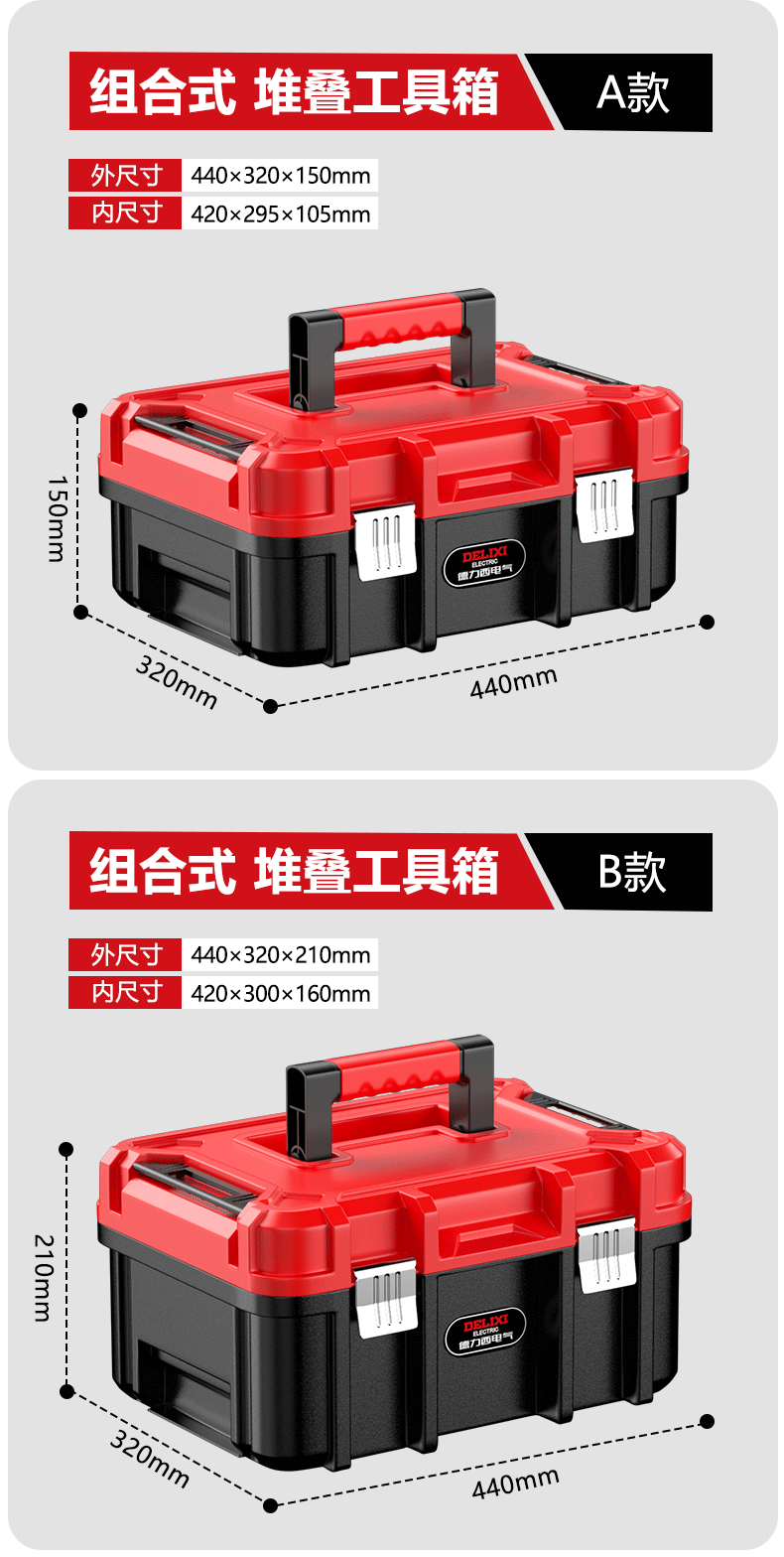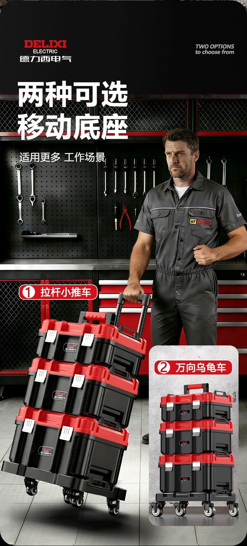 德力西电气(DELIXI ELECTRIC)家用五金多功能收纳箱 工业级手提式可堆叠车载多功能维修收纳箱 组合工具箱【A+B】+拉杆车