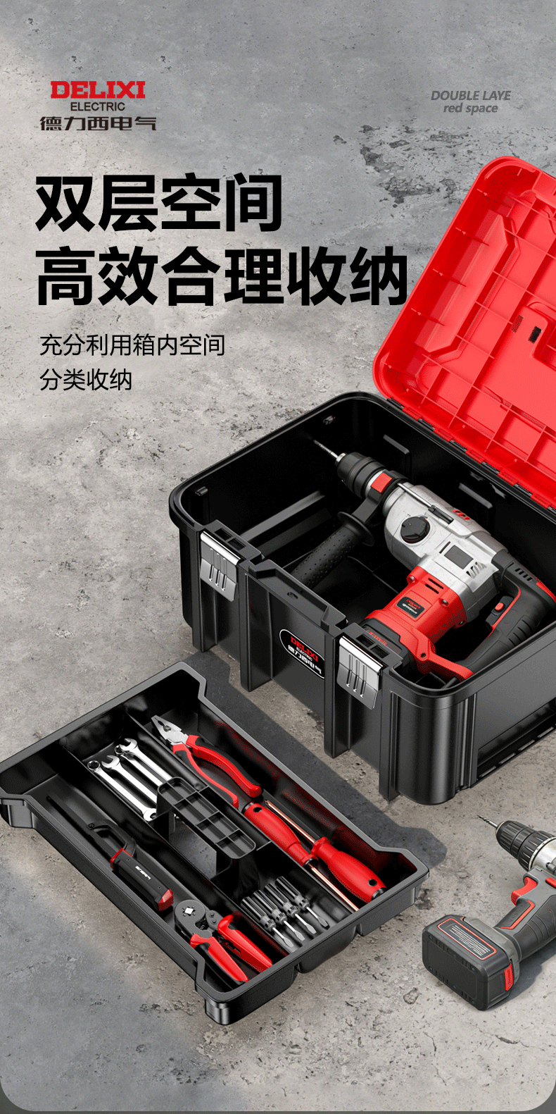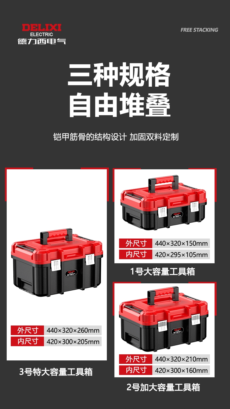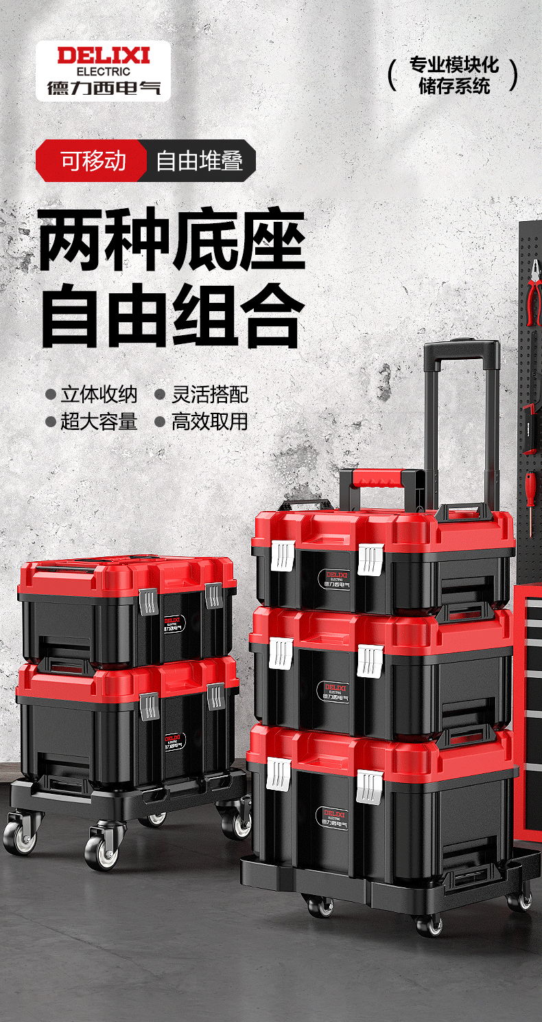 德力西电气(DELIXI ELECTRIC)家用五金多功能收纳箱 工业级手提式可堆叠车载多功能维修收纳箱 组合工具箱【A+B】+拉杆车