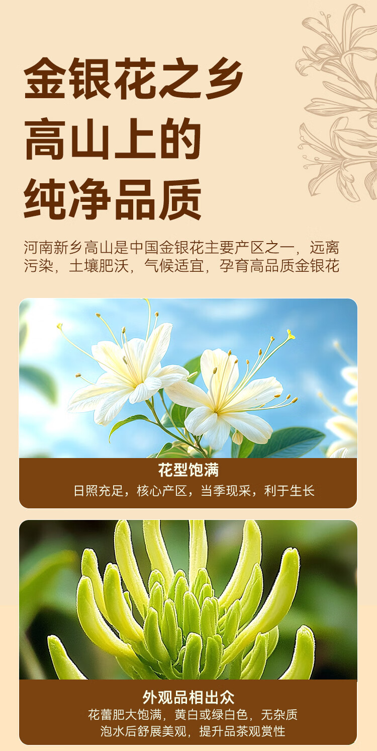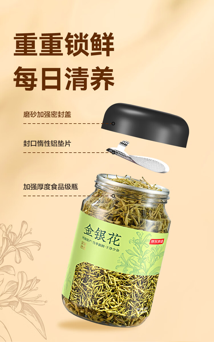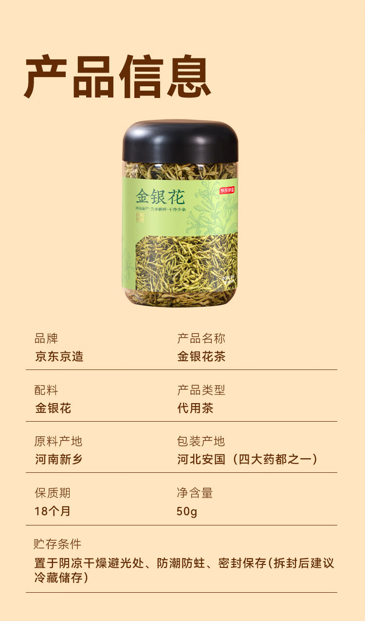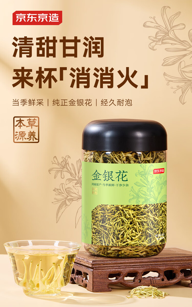 京东京造鲜来多 河南封丘金银花50克自营养生新鲜金银花茶干花草茶泡水喝