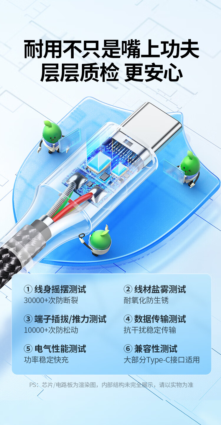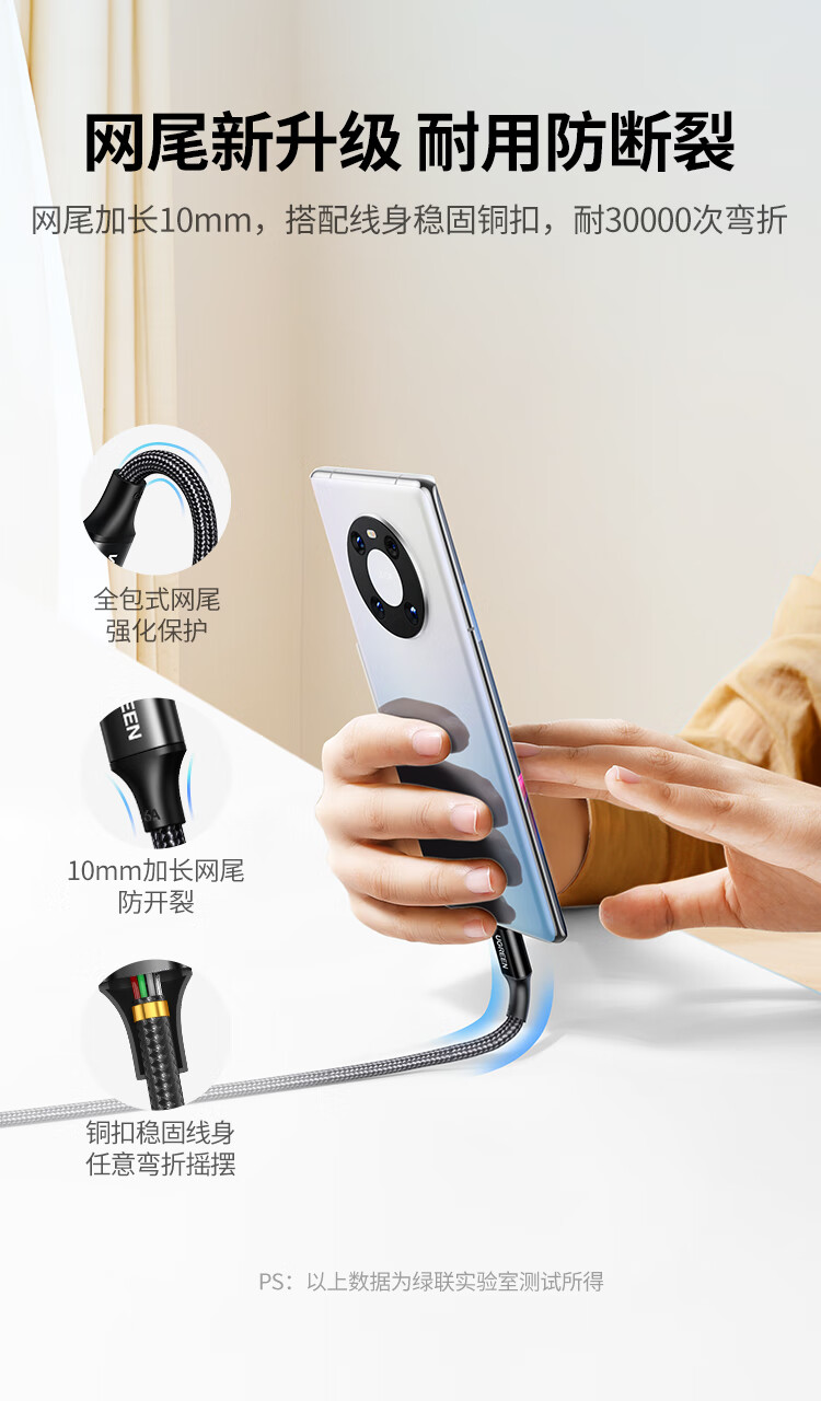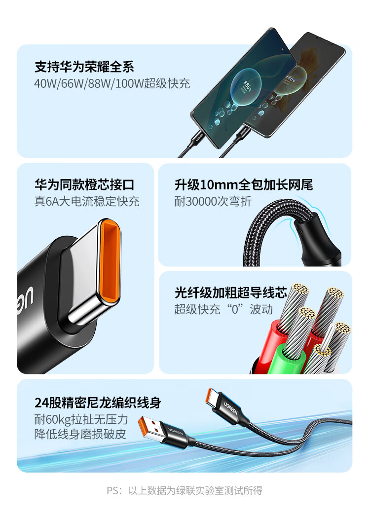 绿联Type-C数据线6A适用华为荣耀超级快充100W/66W充电线Pura80/70/Mate70/60Pro+小米安卓手机车载2米
