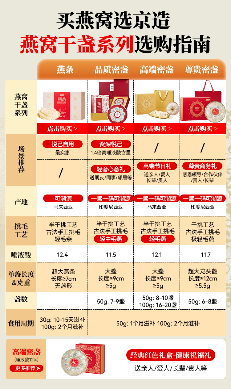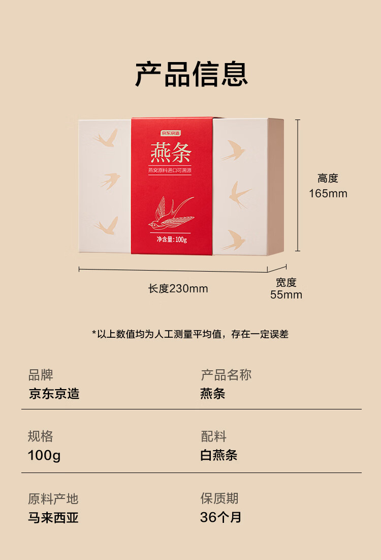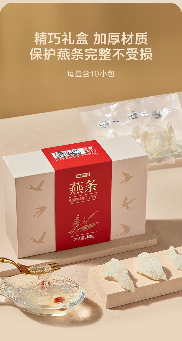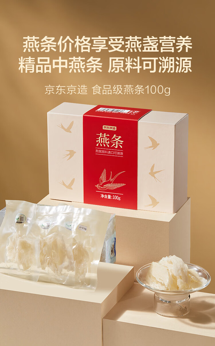 京东京造大燕条100g 送长辈孕妇礼品燕窝干盏礼盒进口溯源补品礼盒