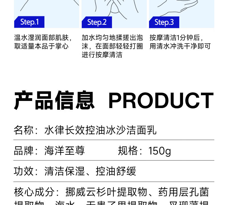 海洋至尊三棱镜氨基酸洗面奶150g+冰沙洁面150g祛痘去黑头 男士护肤品礼物