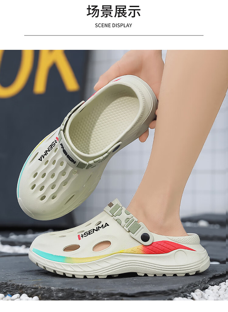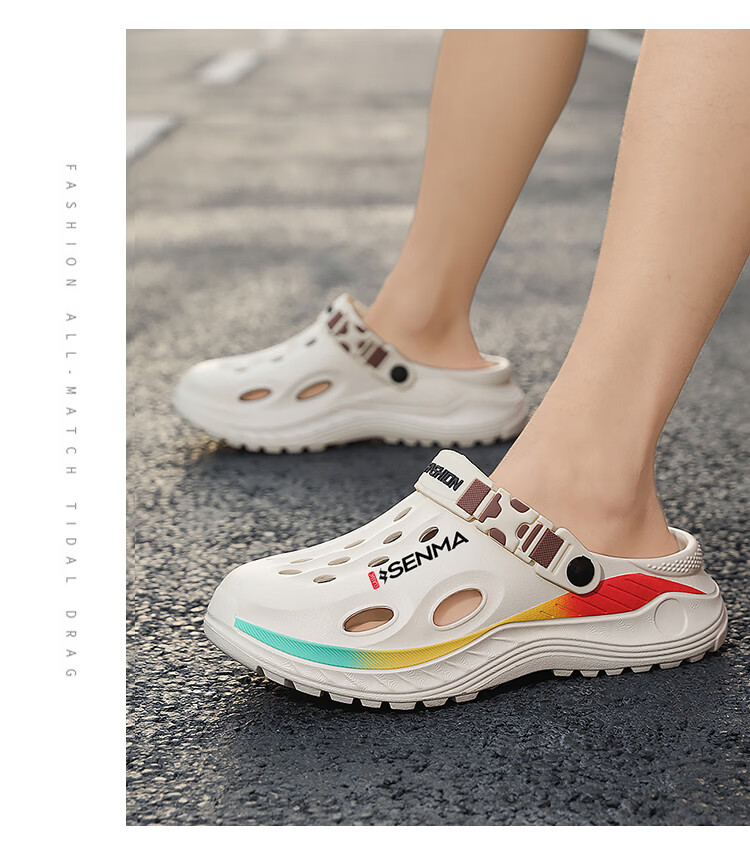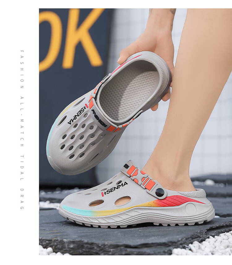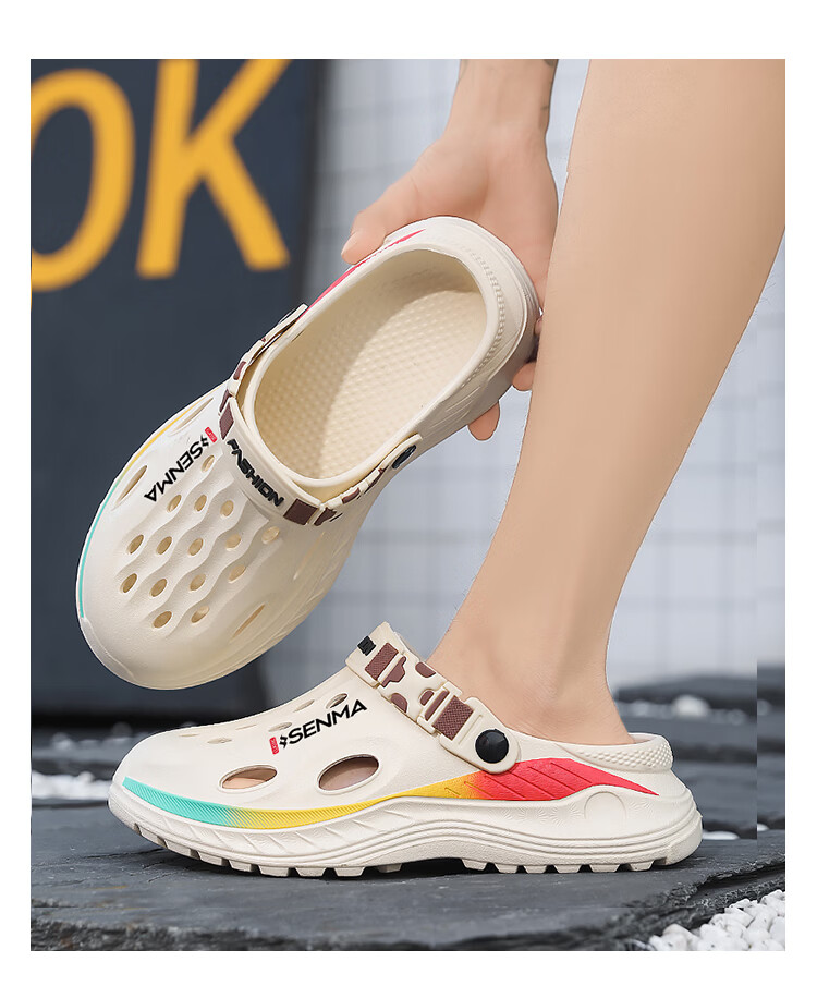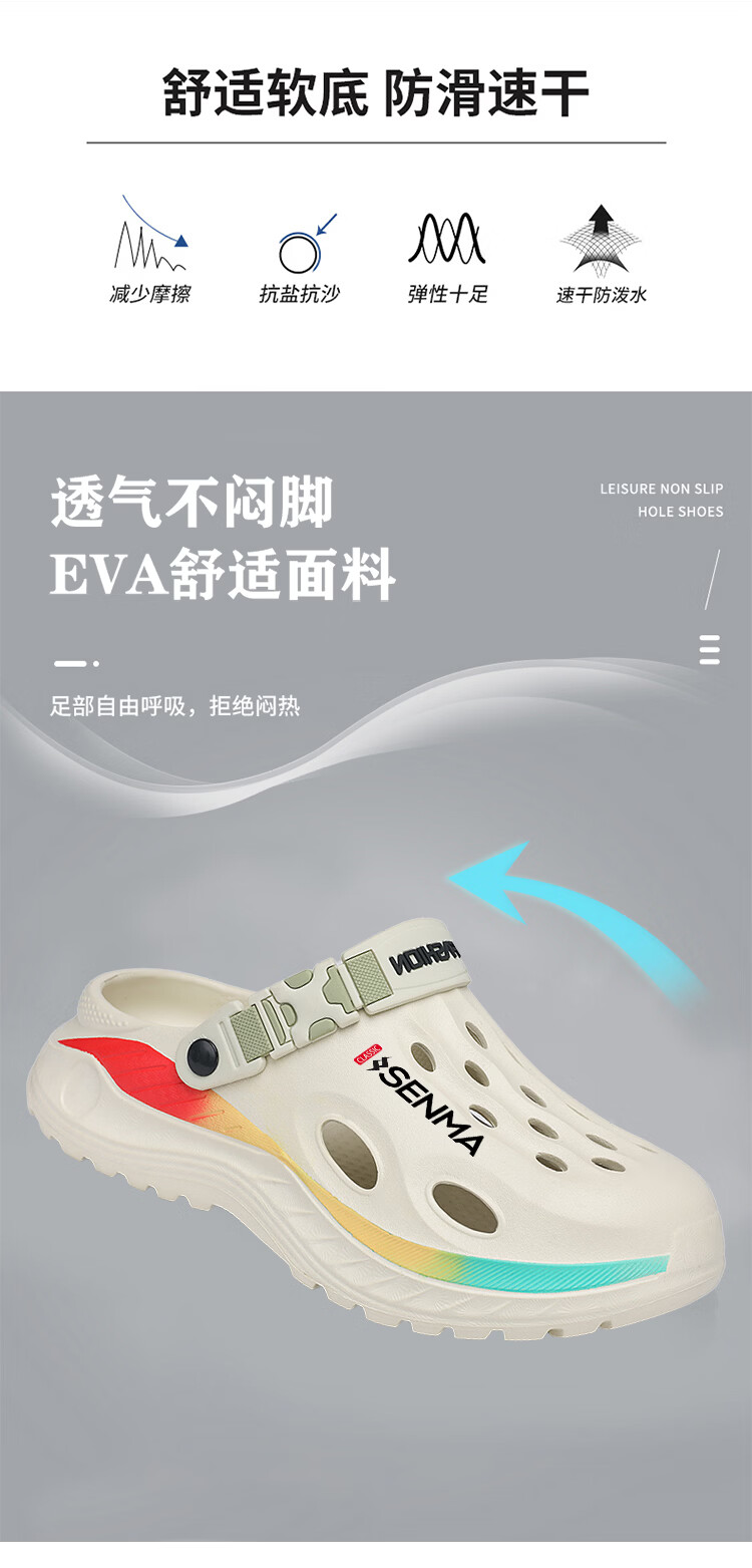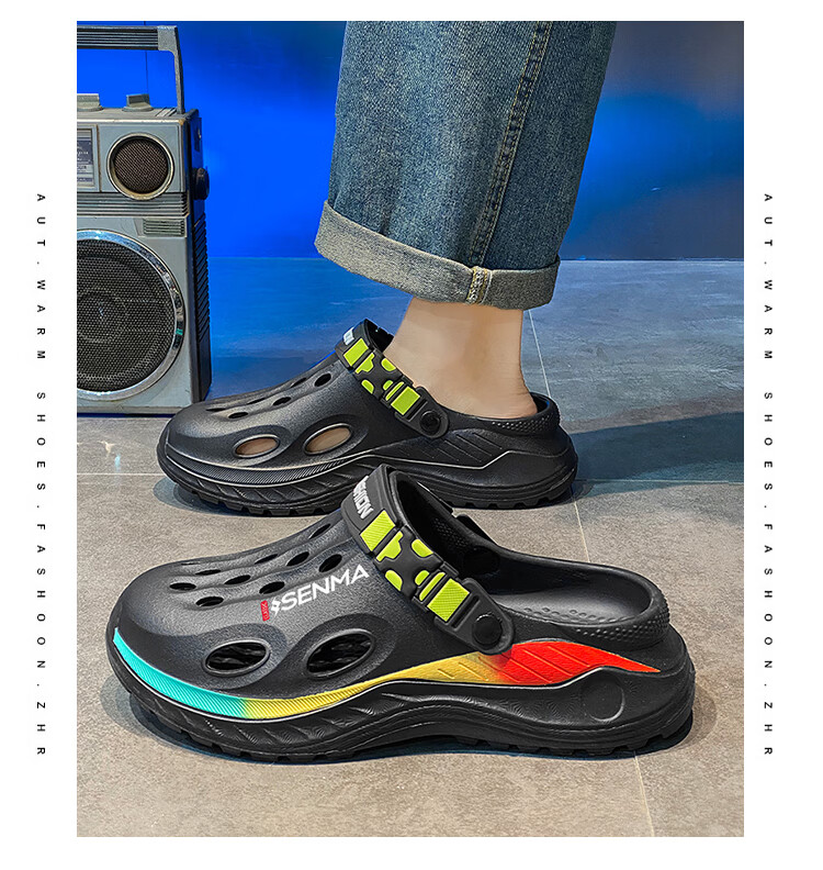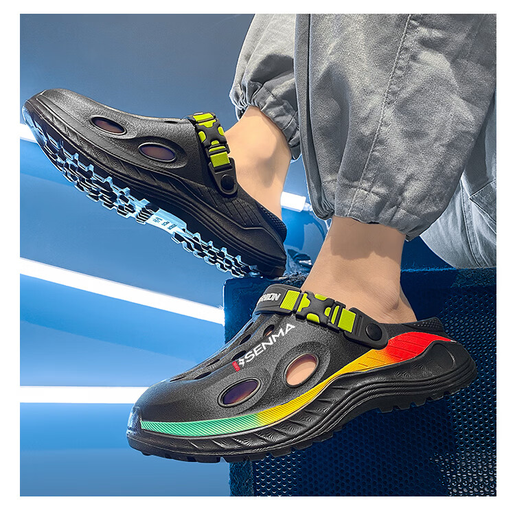 森馬洞洞鞋男款2026夏季外穿旅游涉水包头凉拖鞋居家室内防滑沙滩凉鞋 黑色【基础款】 38-39 现货秒发