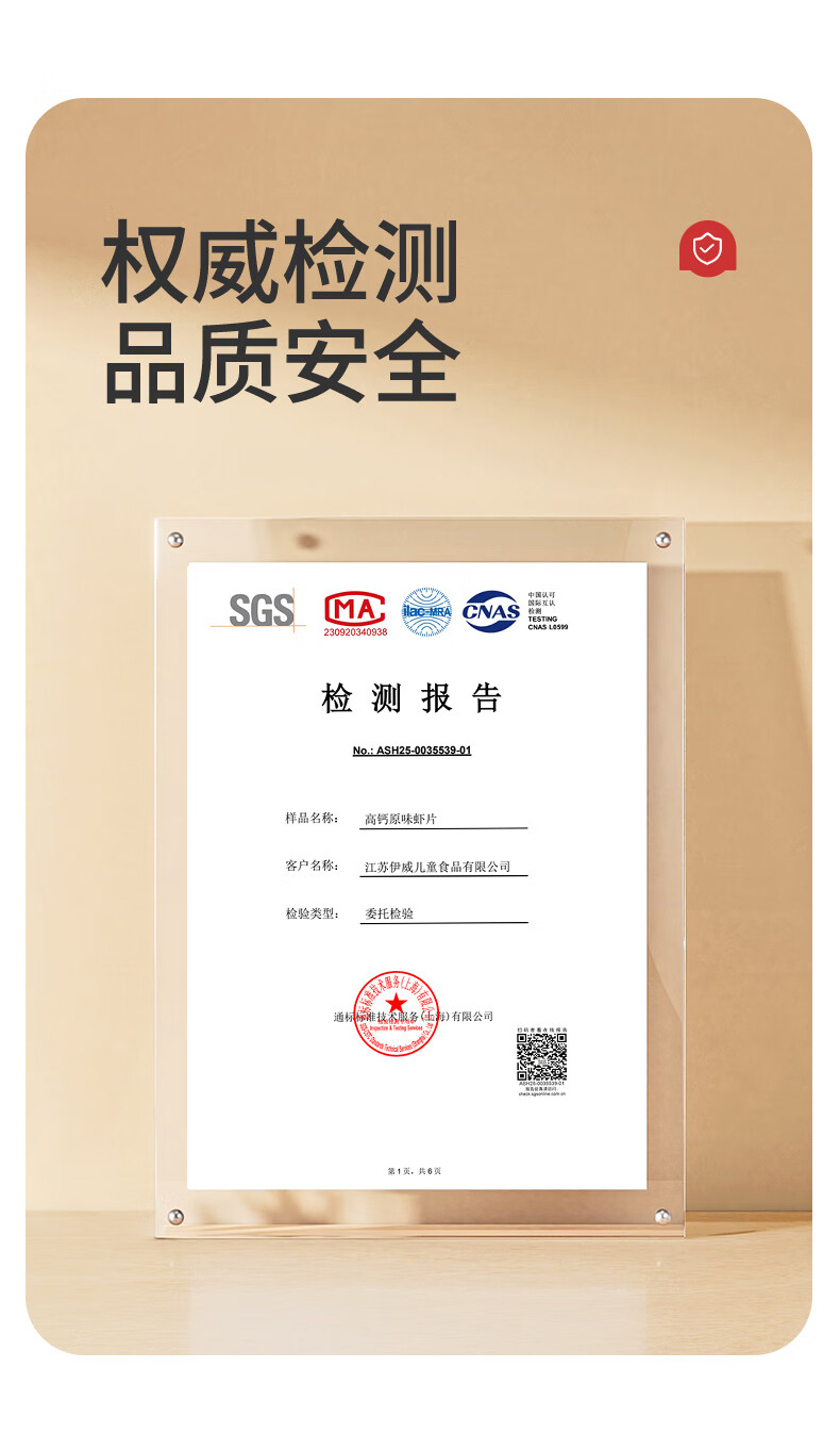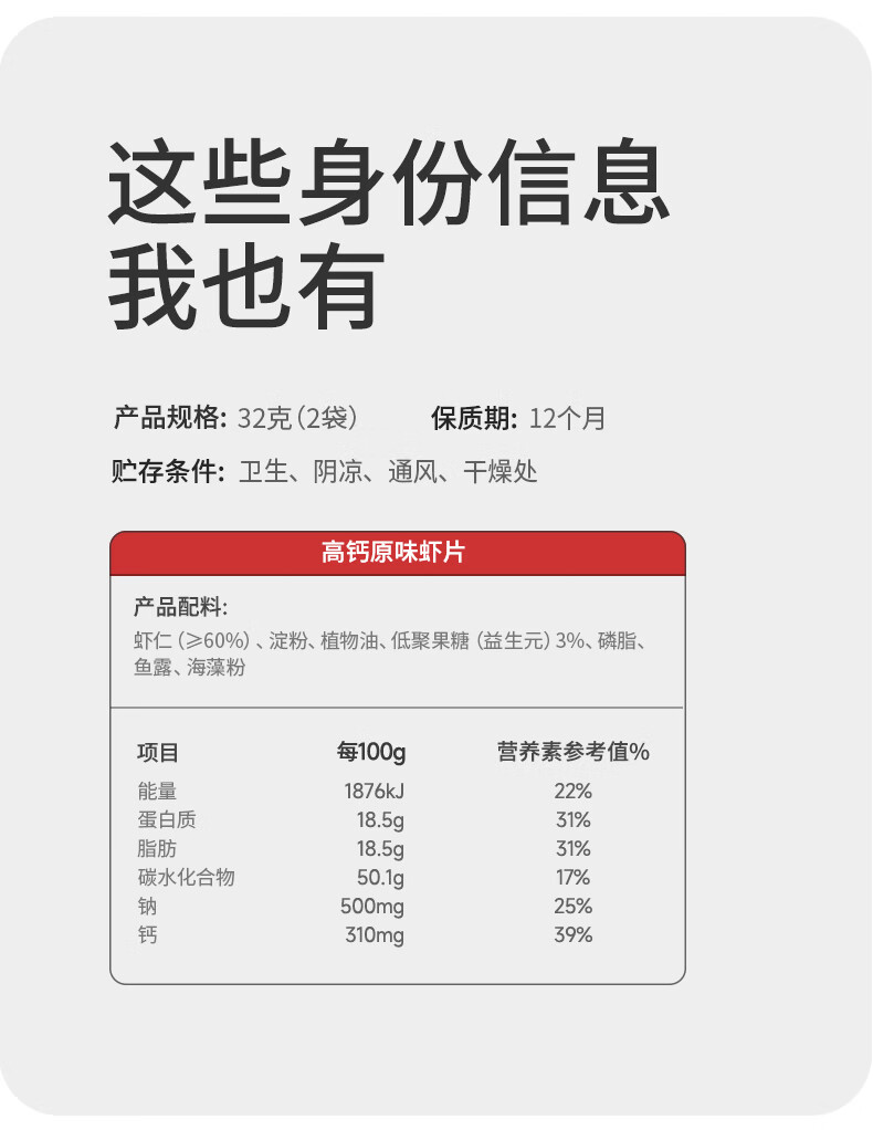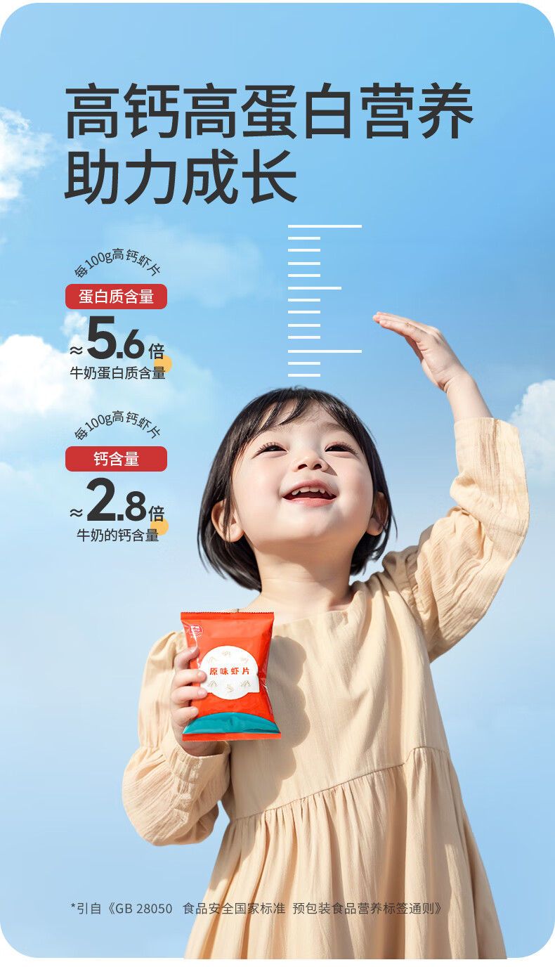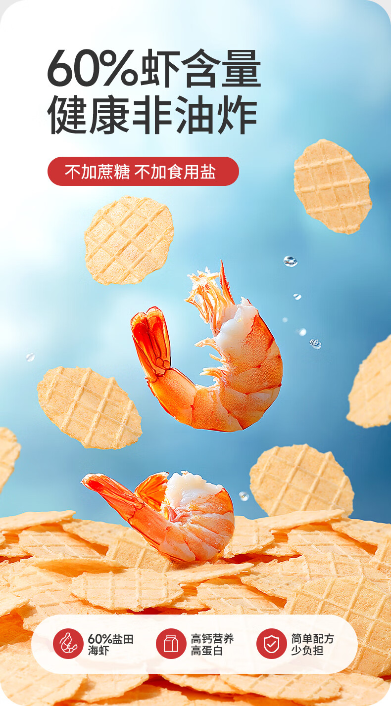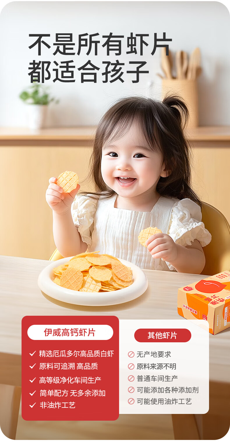 伊威(Eastwes)高钙鲜虾片 儿童零食虾片60%虾含量磨牙饼干不添加食盐白砂糖32g